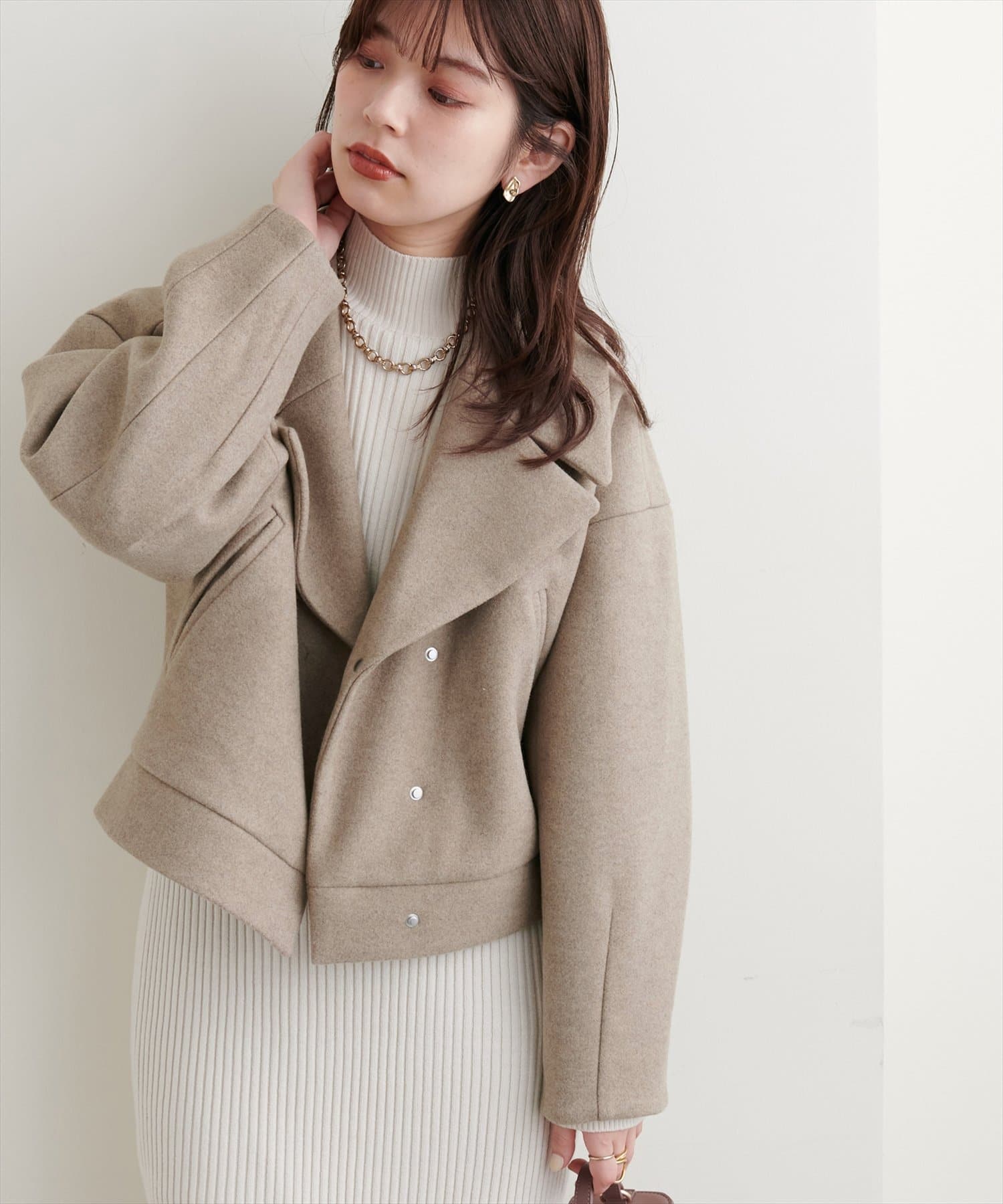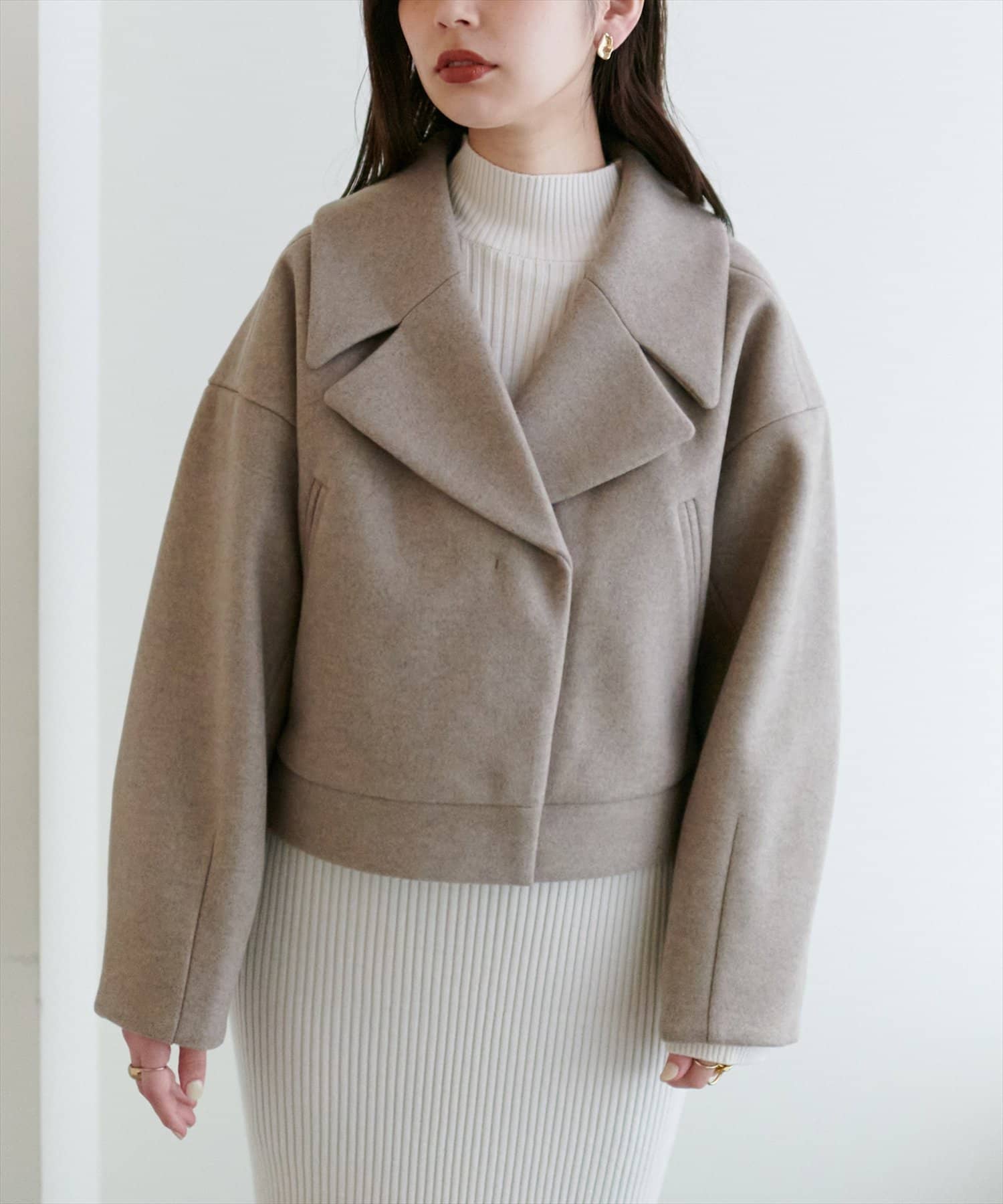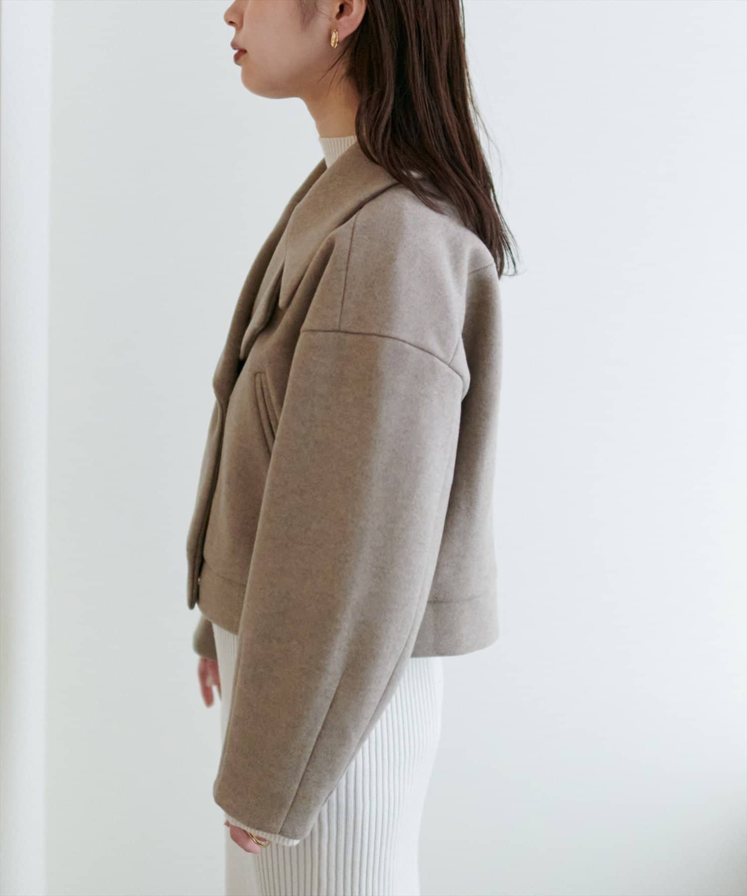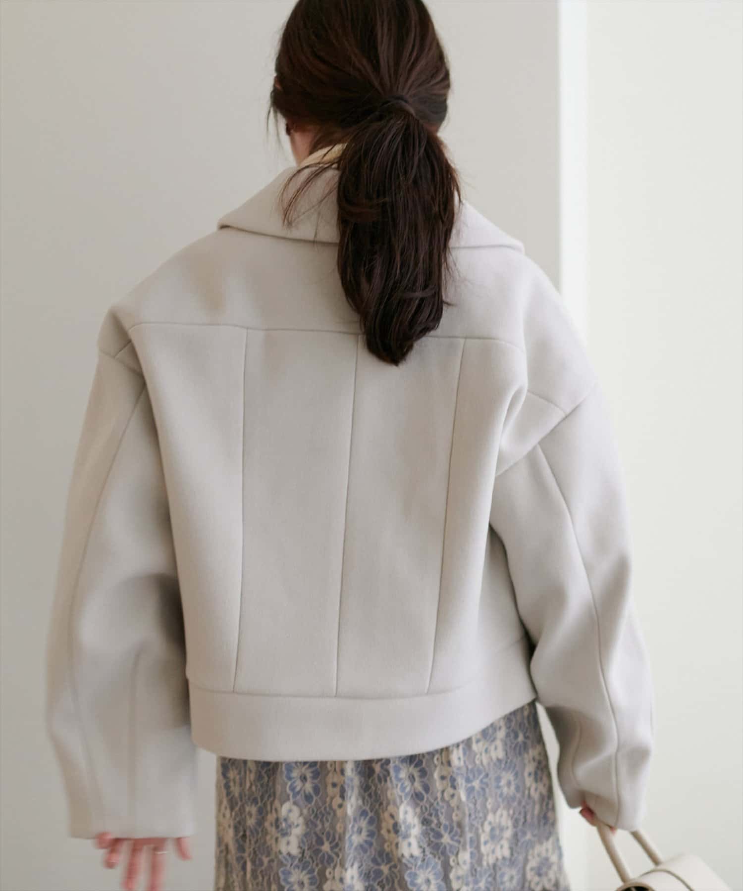 なめらかで高級感のあるニットメルトンを使用したショートコート。