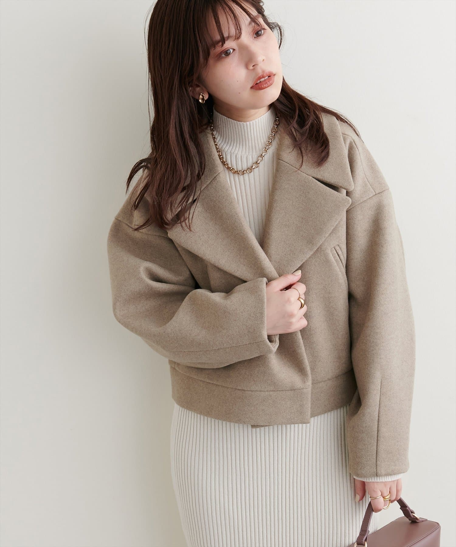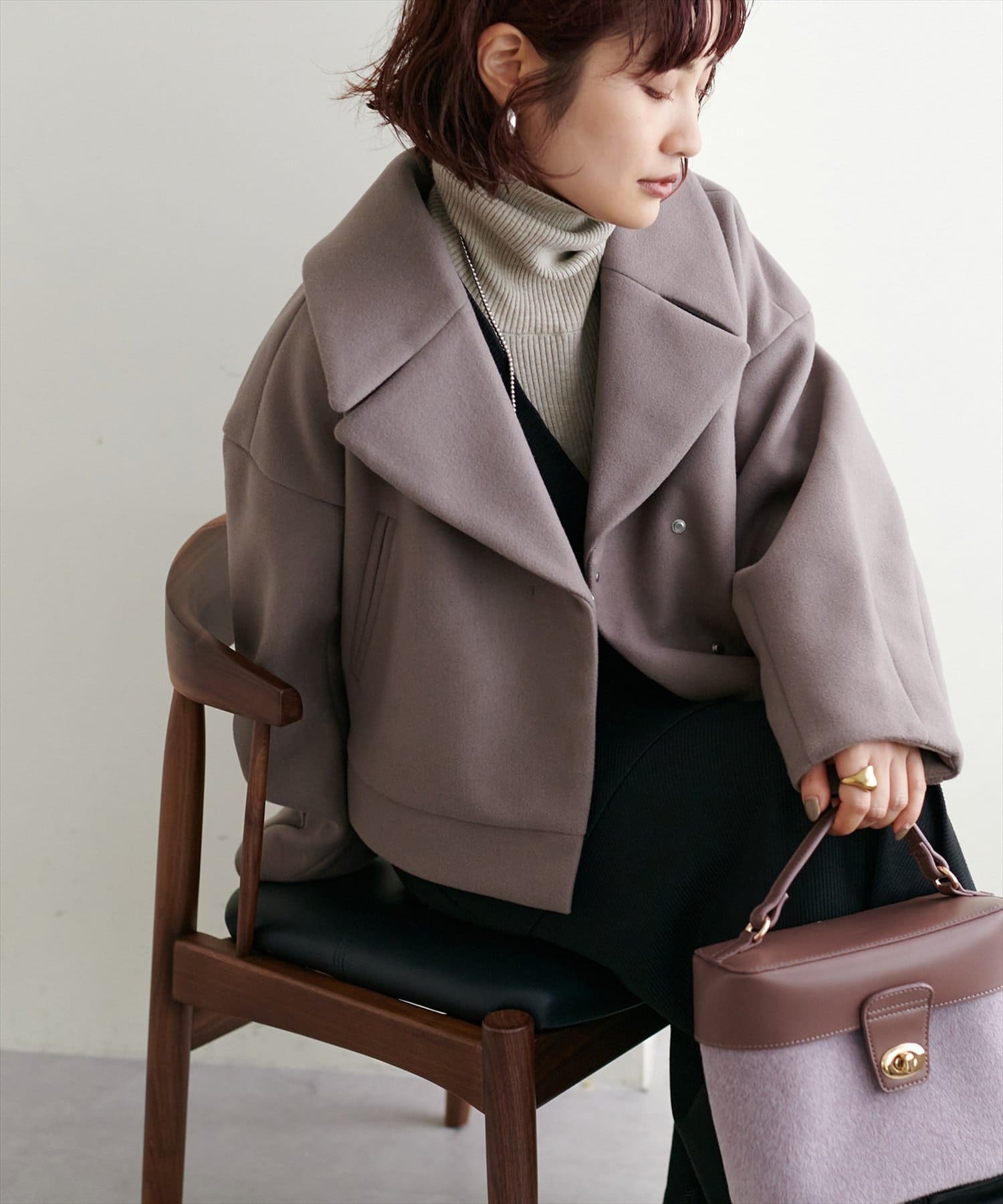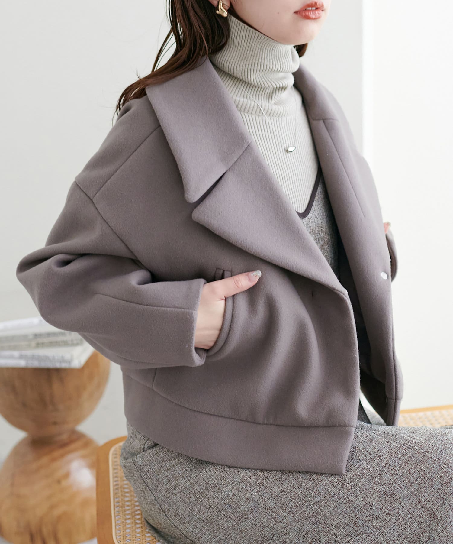 なめらかで高級感のあるニットメルトンを使用したショートコート。