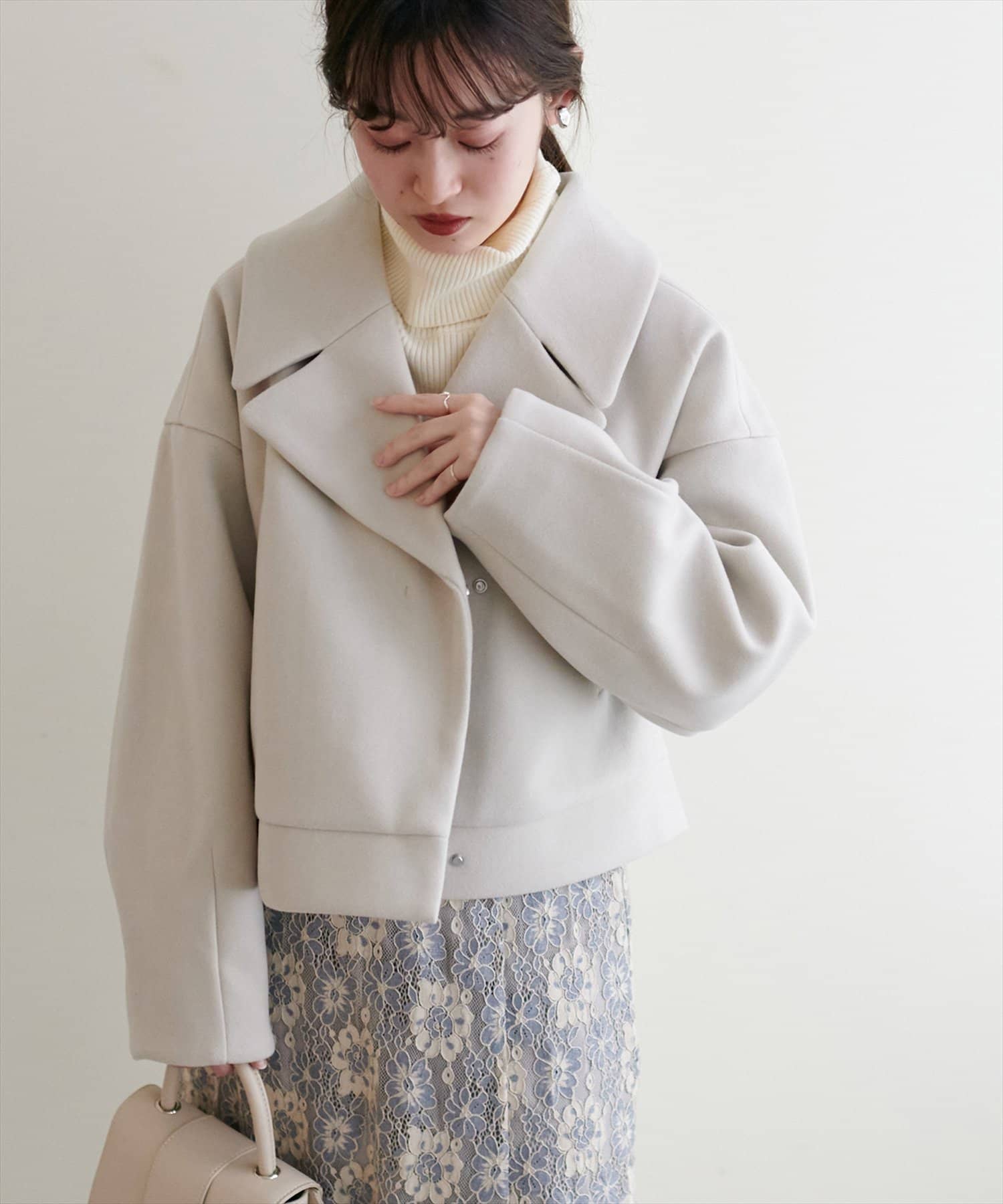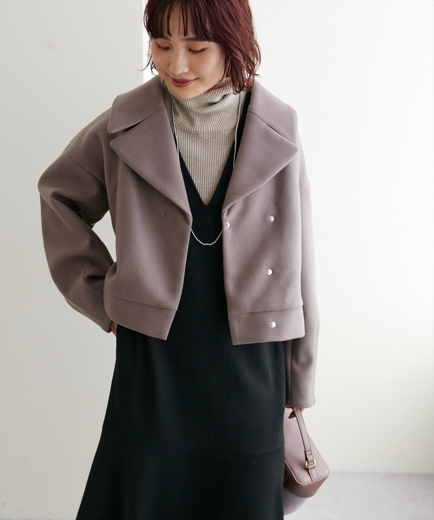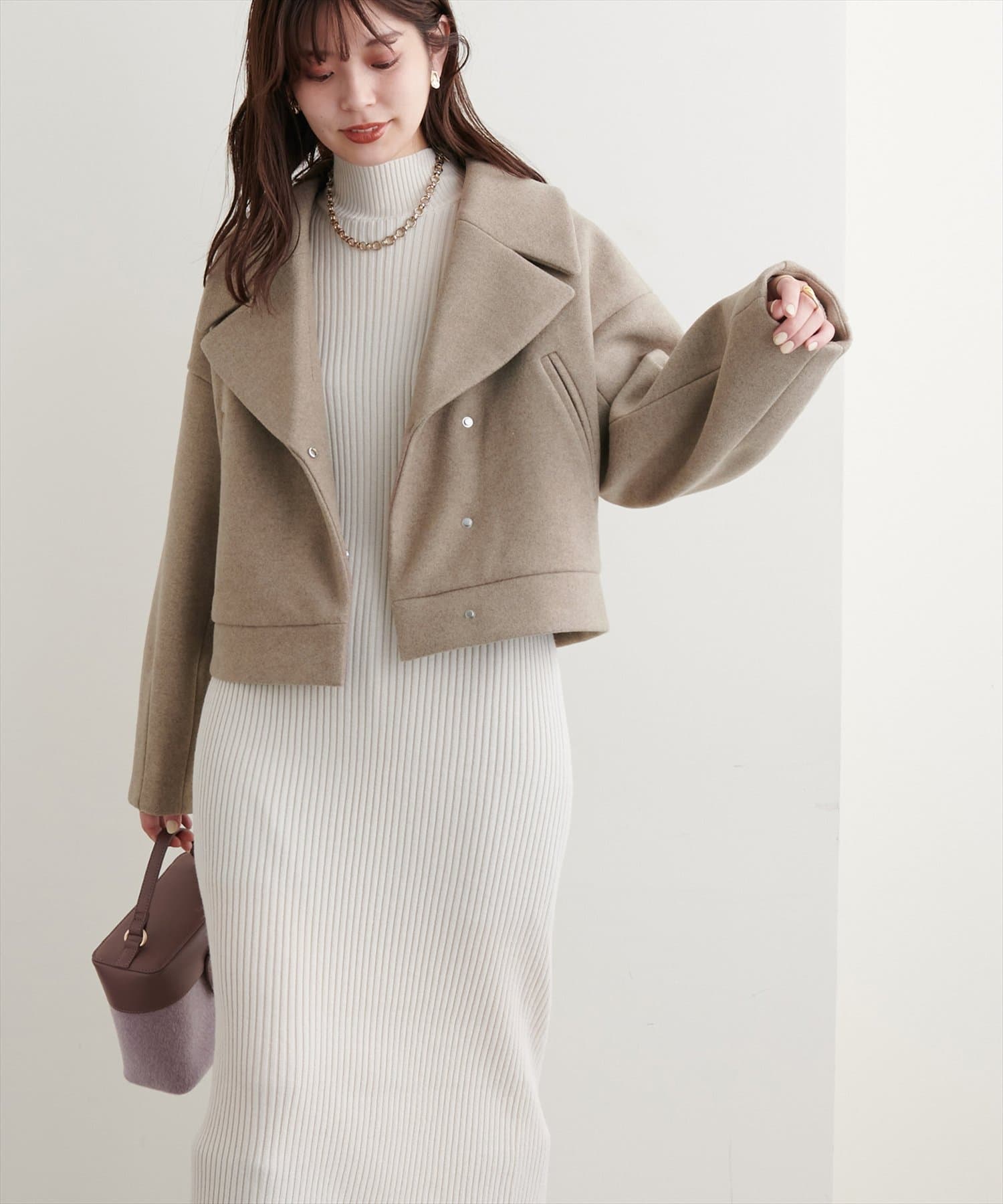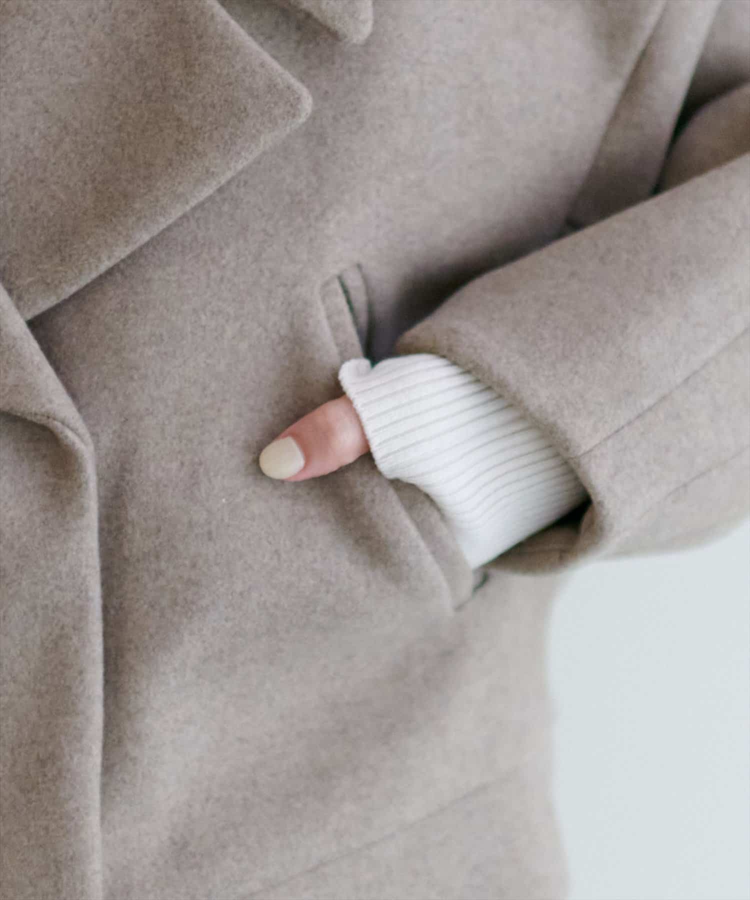 なめらかで高級感のあるニットメルトンを使用したショートコート。