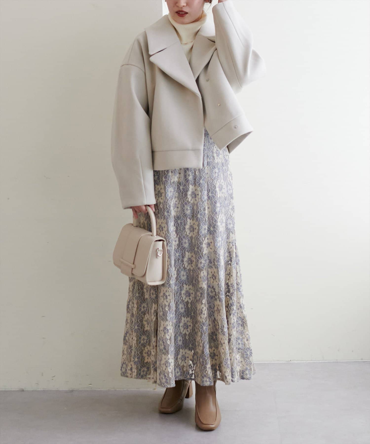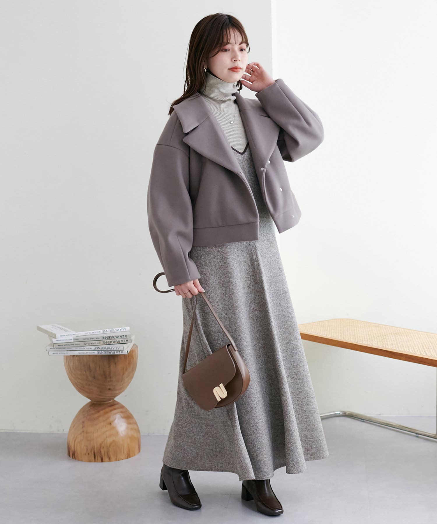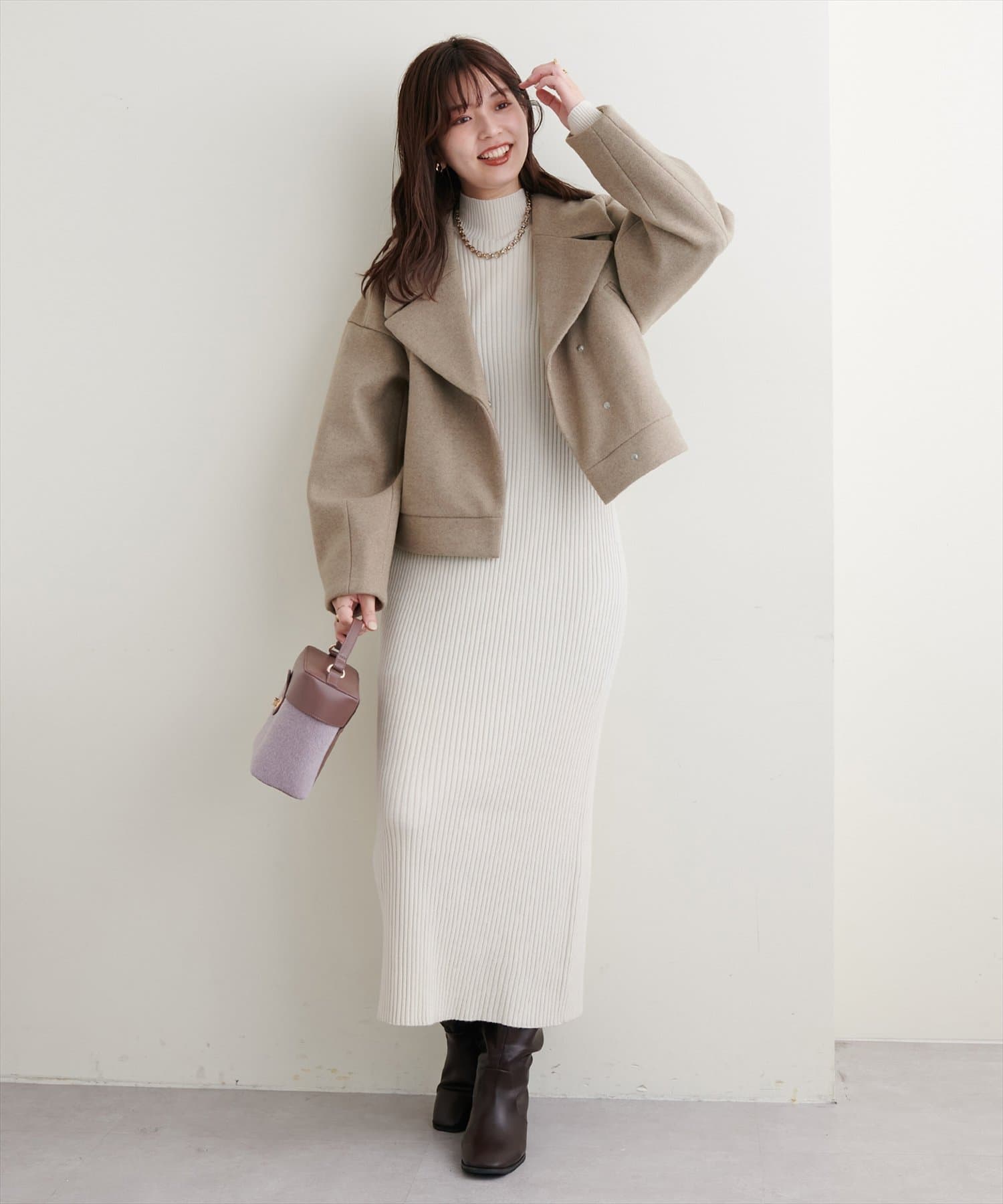 ショート丈~ミドル丈の中間くらいの丈感もコーディネートのバランスが取りやすく、すっきりとした印象で着て頂けます。