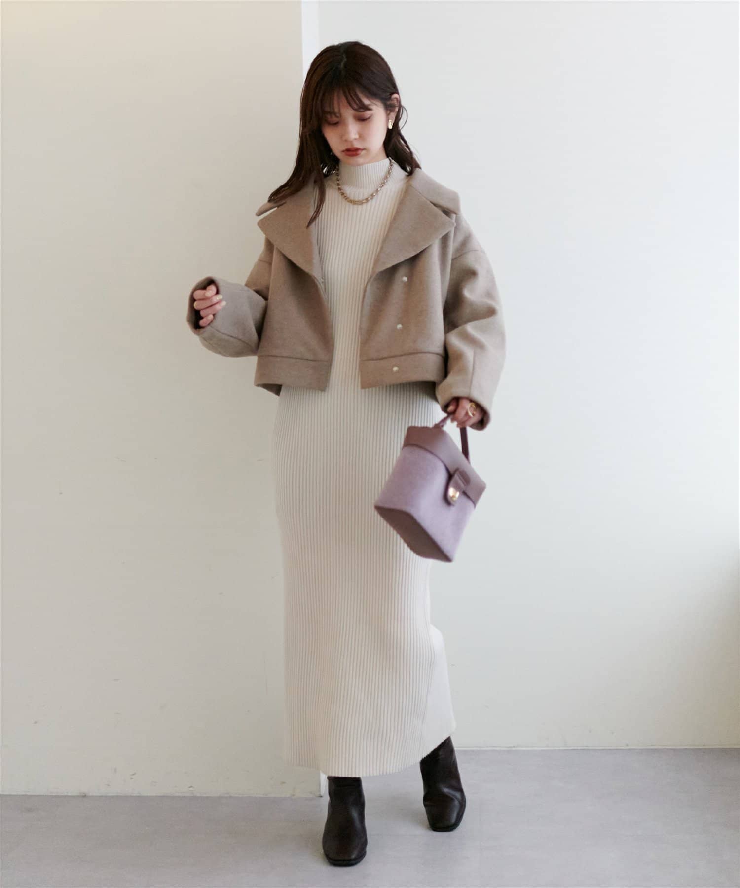 タートルネックやマフラーなどの巻物との合わせもきれいに決まります。
