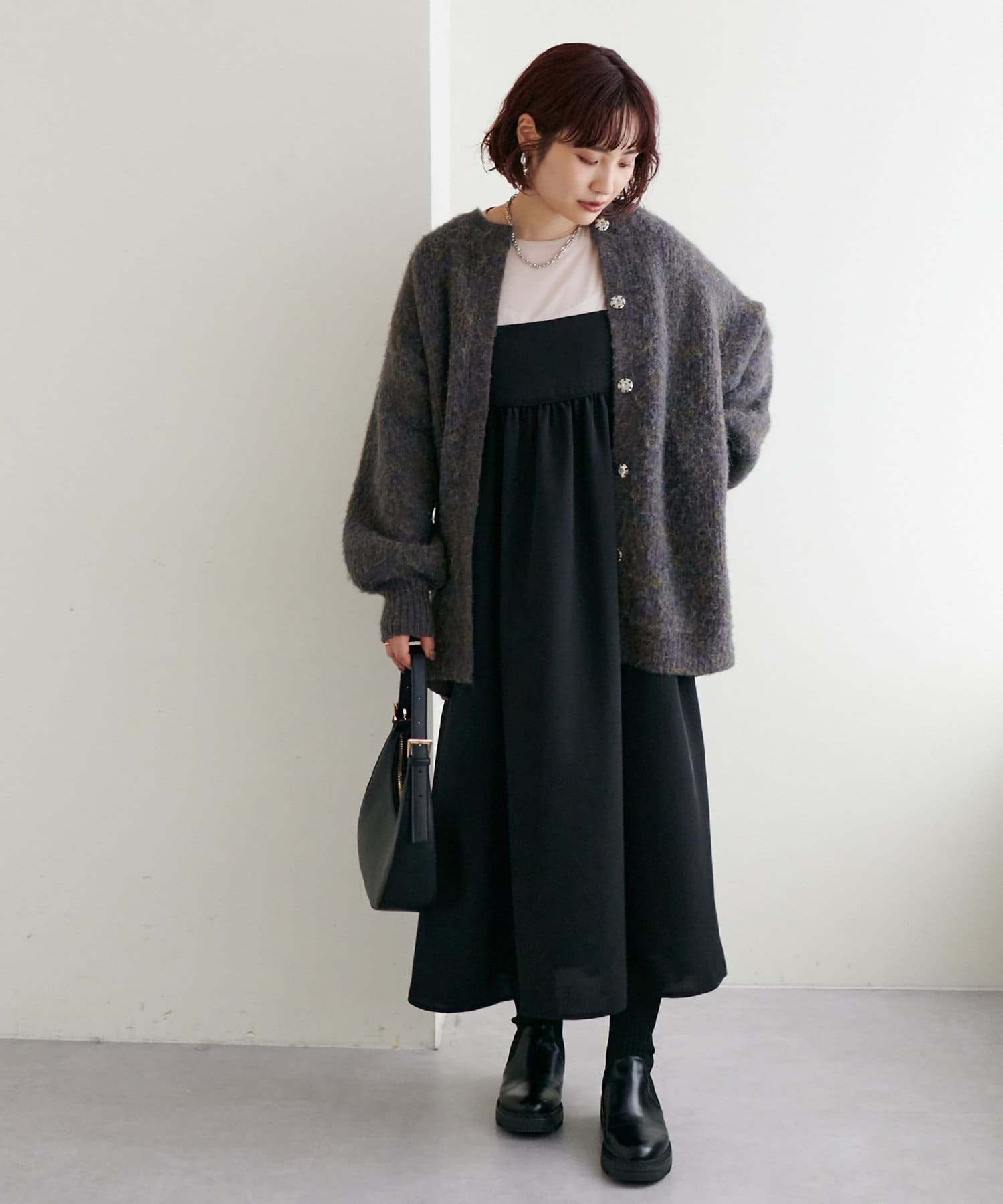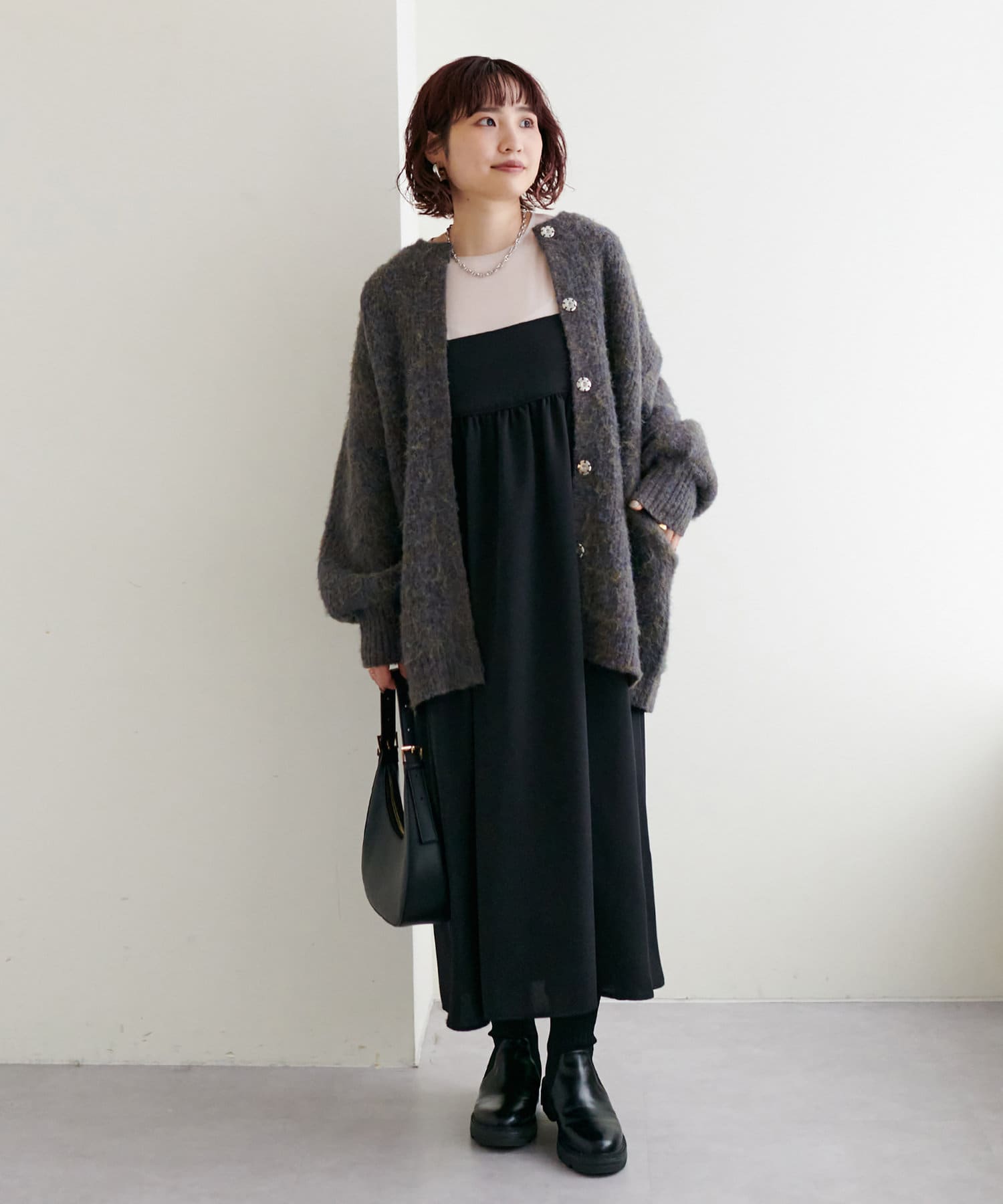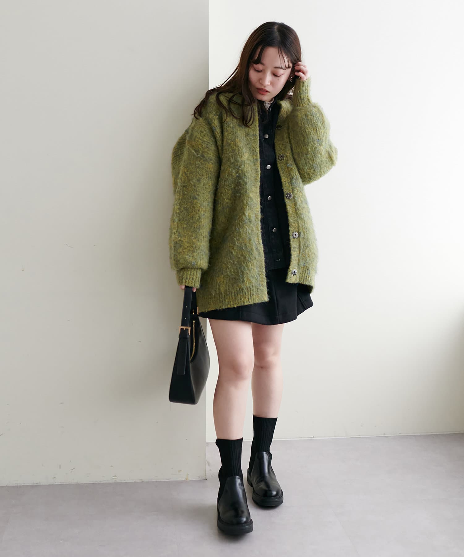 ミディアム丈なので、今季トレンドのミニボトムとも相性抜群です。