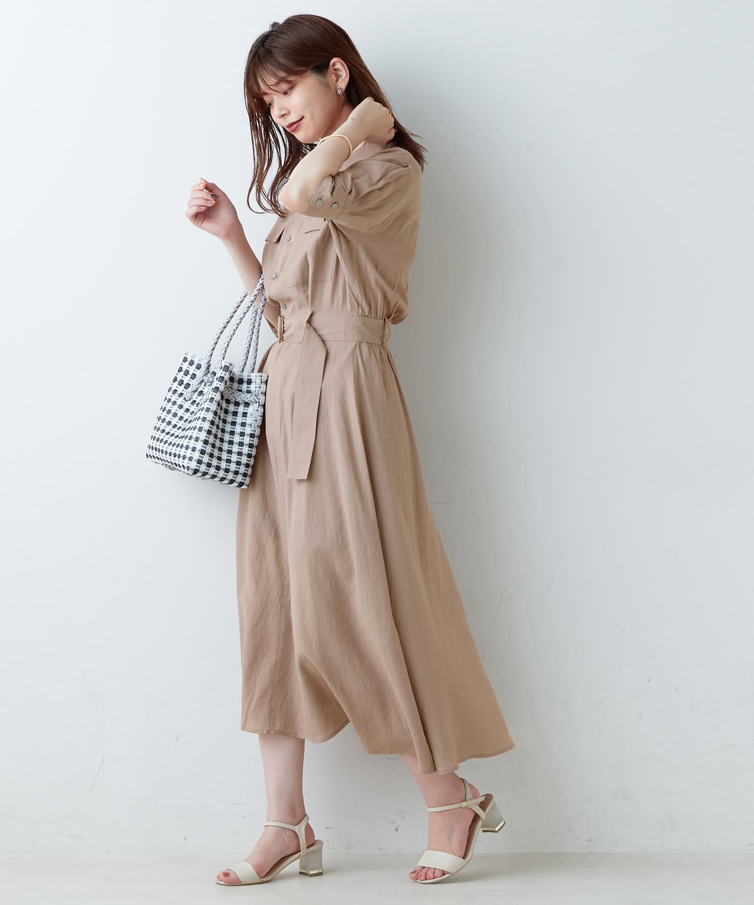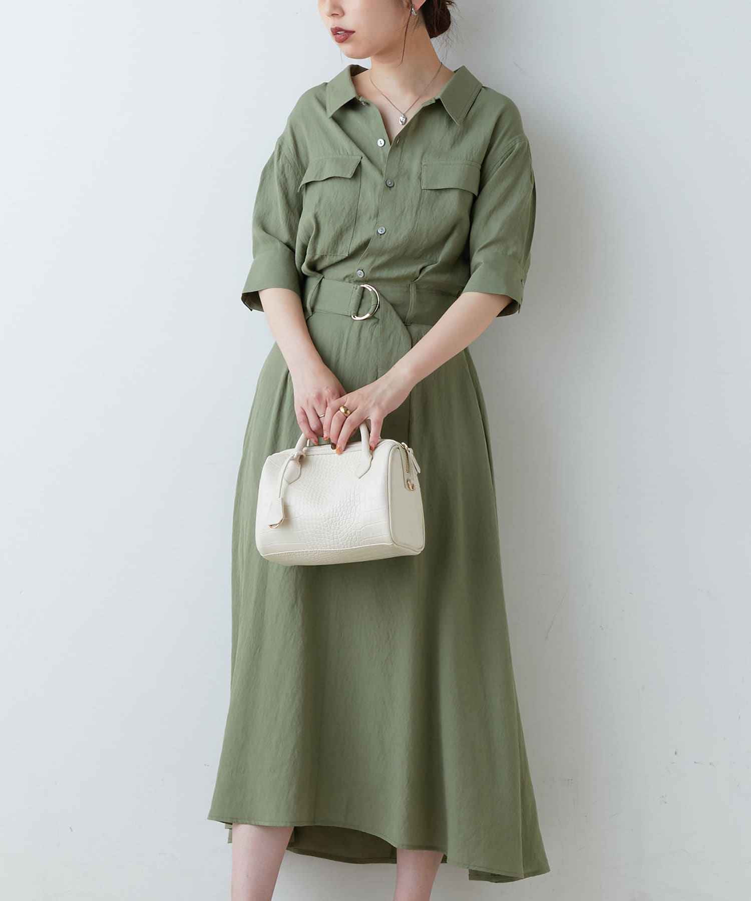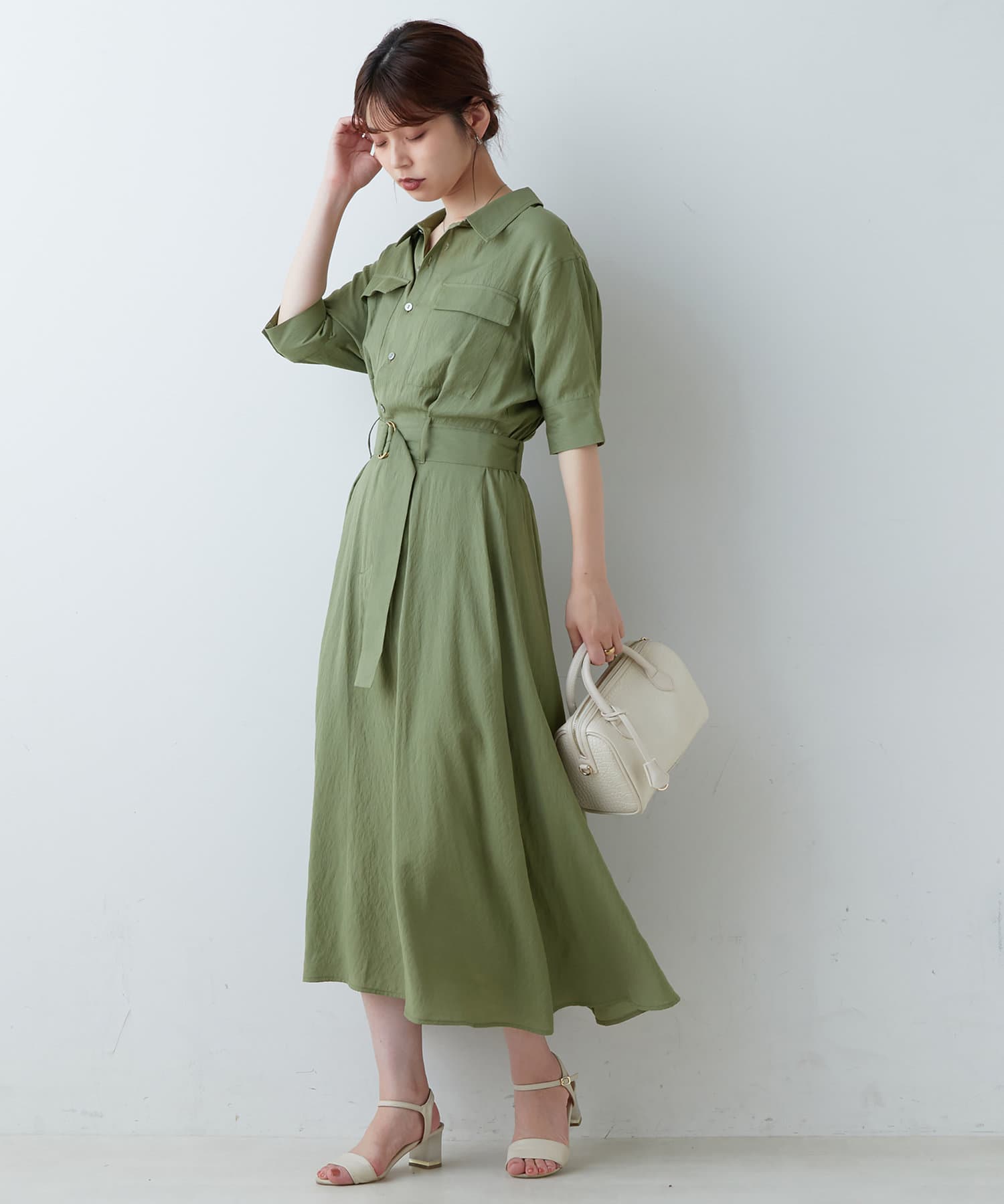 TOP > natural couture > レディース > ワンピース > ワンピース > WEB限定カラー有り/ミリタリーライトシャツワンピース