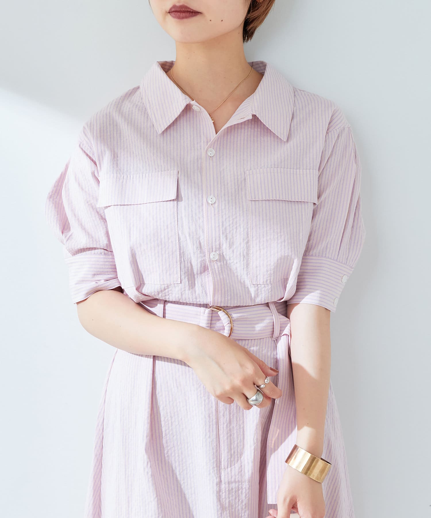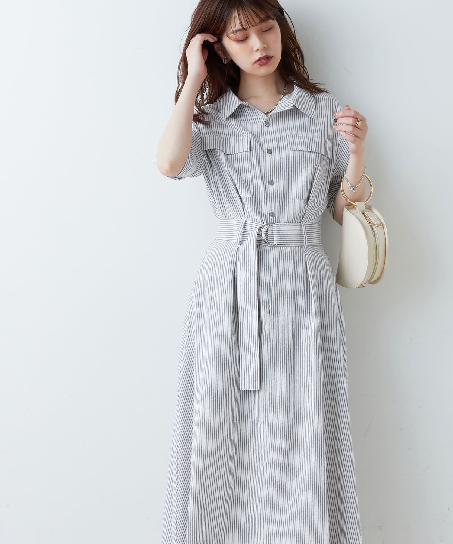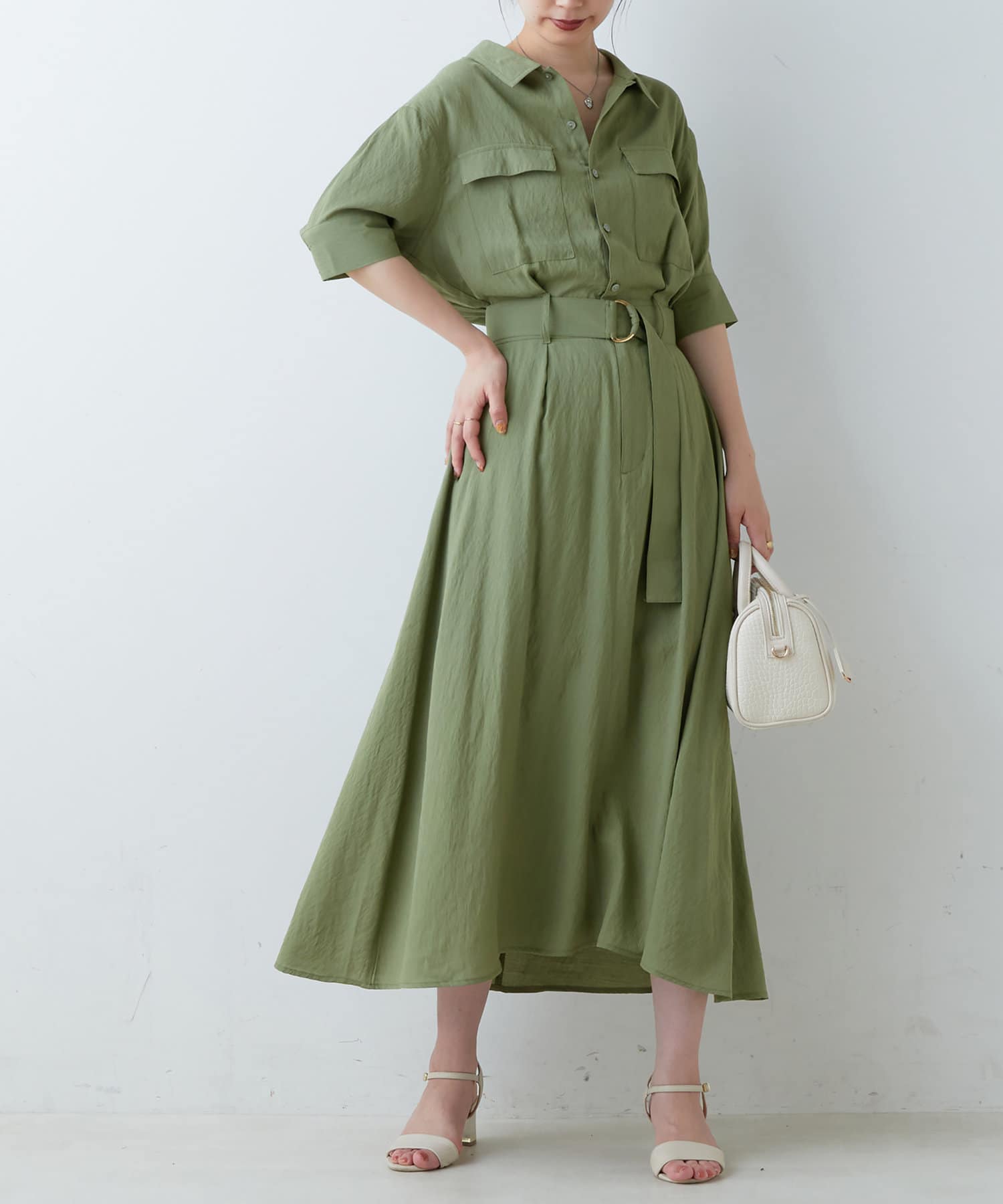 • natural couture(ナチュラルクチュール) WEB限定カラー有り/ミリタリーライトシャツワンピース