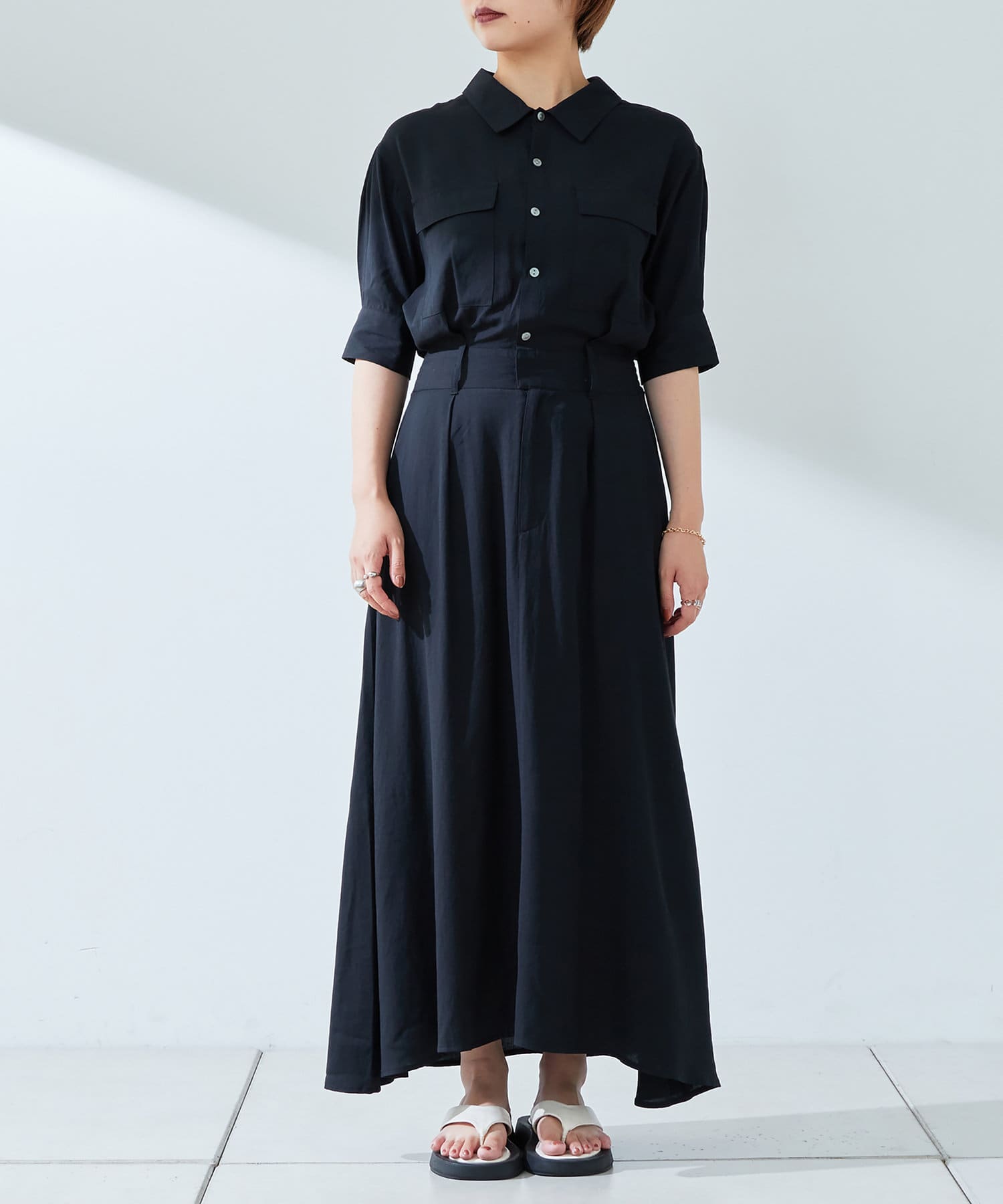 裾に掛けて柔らかなフレアラインが美しいシルエットを作り出してくれます。