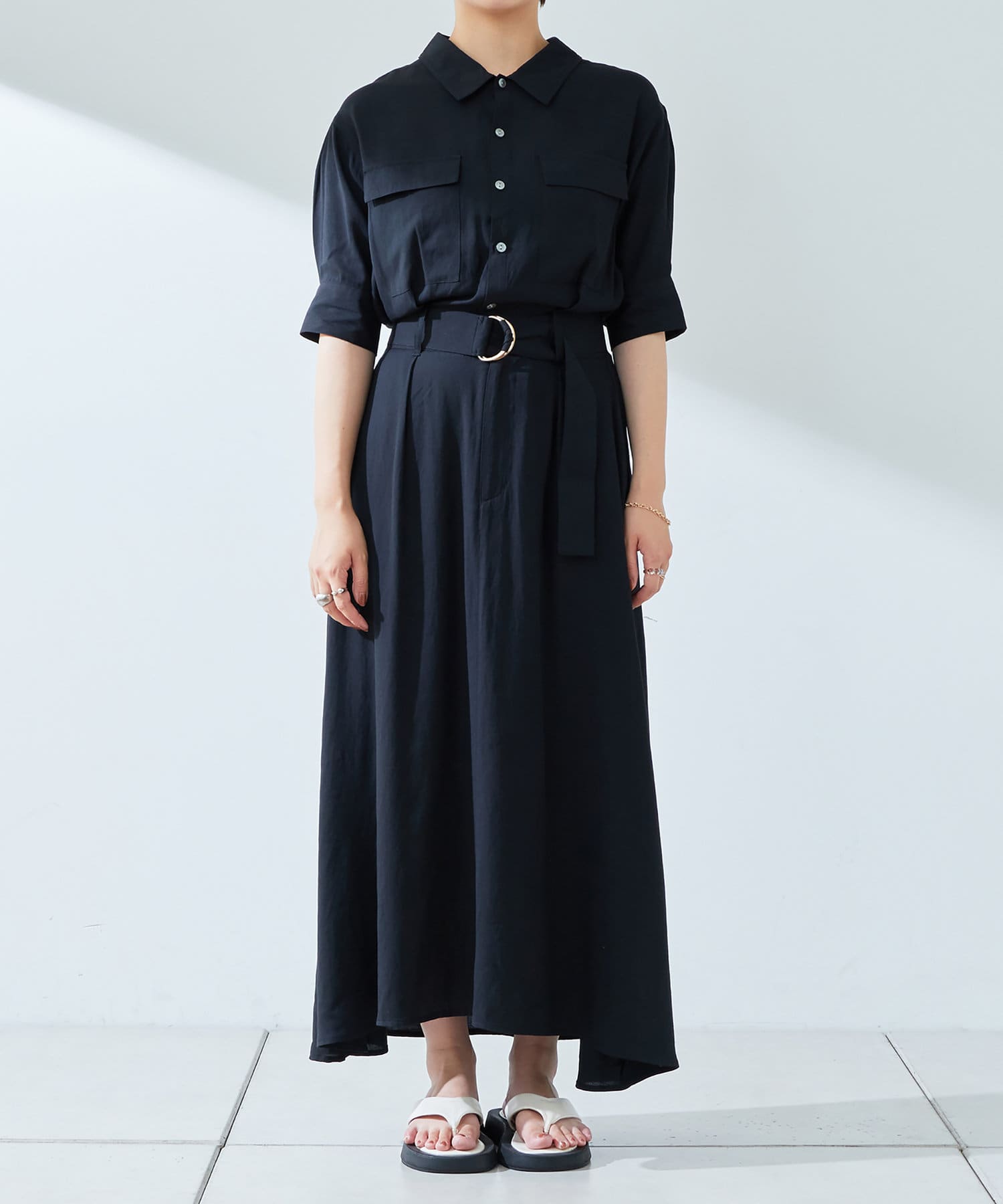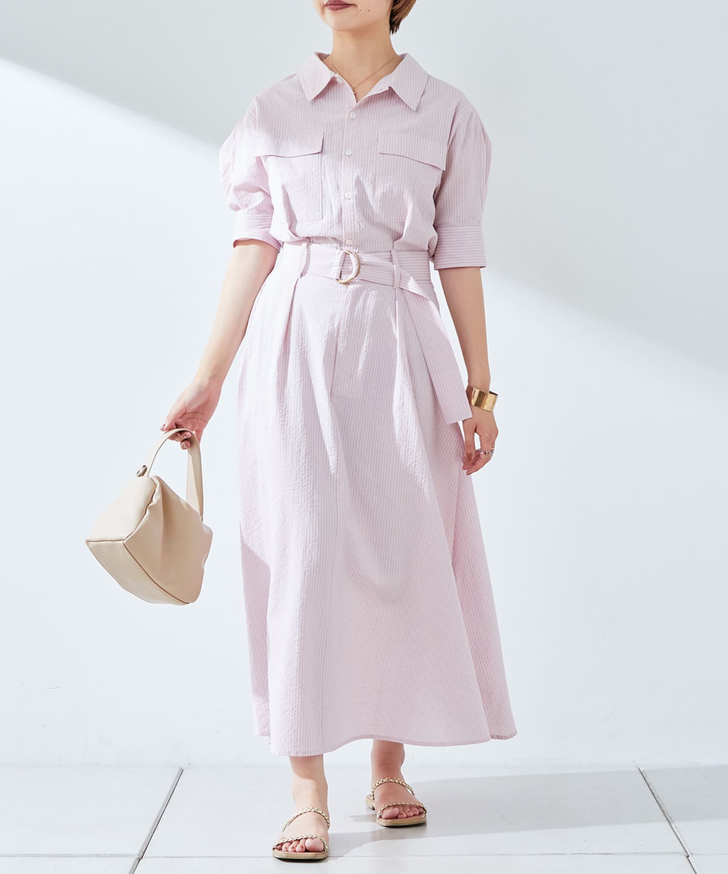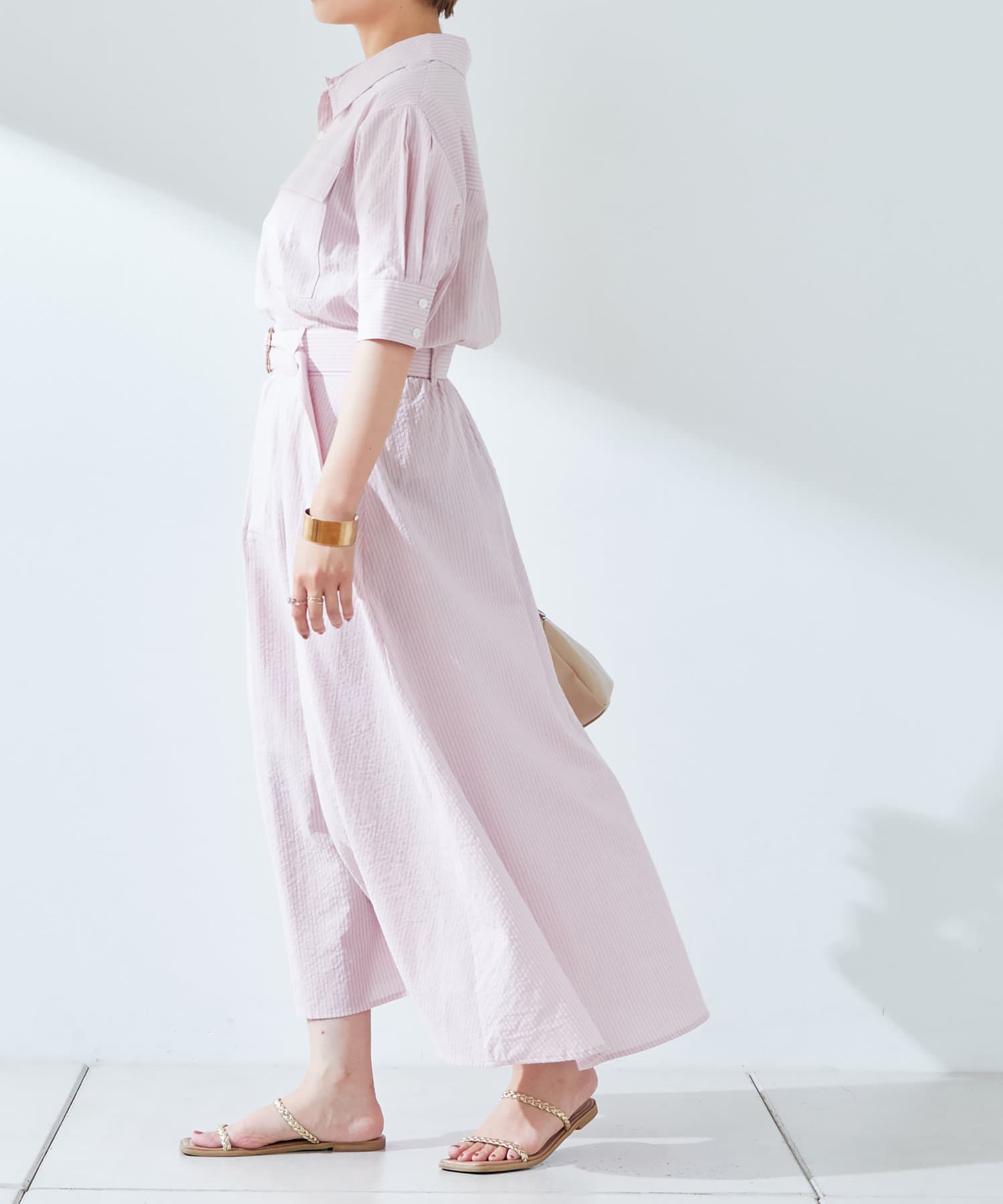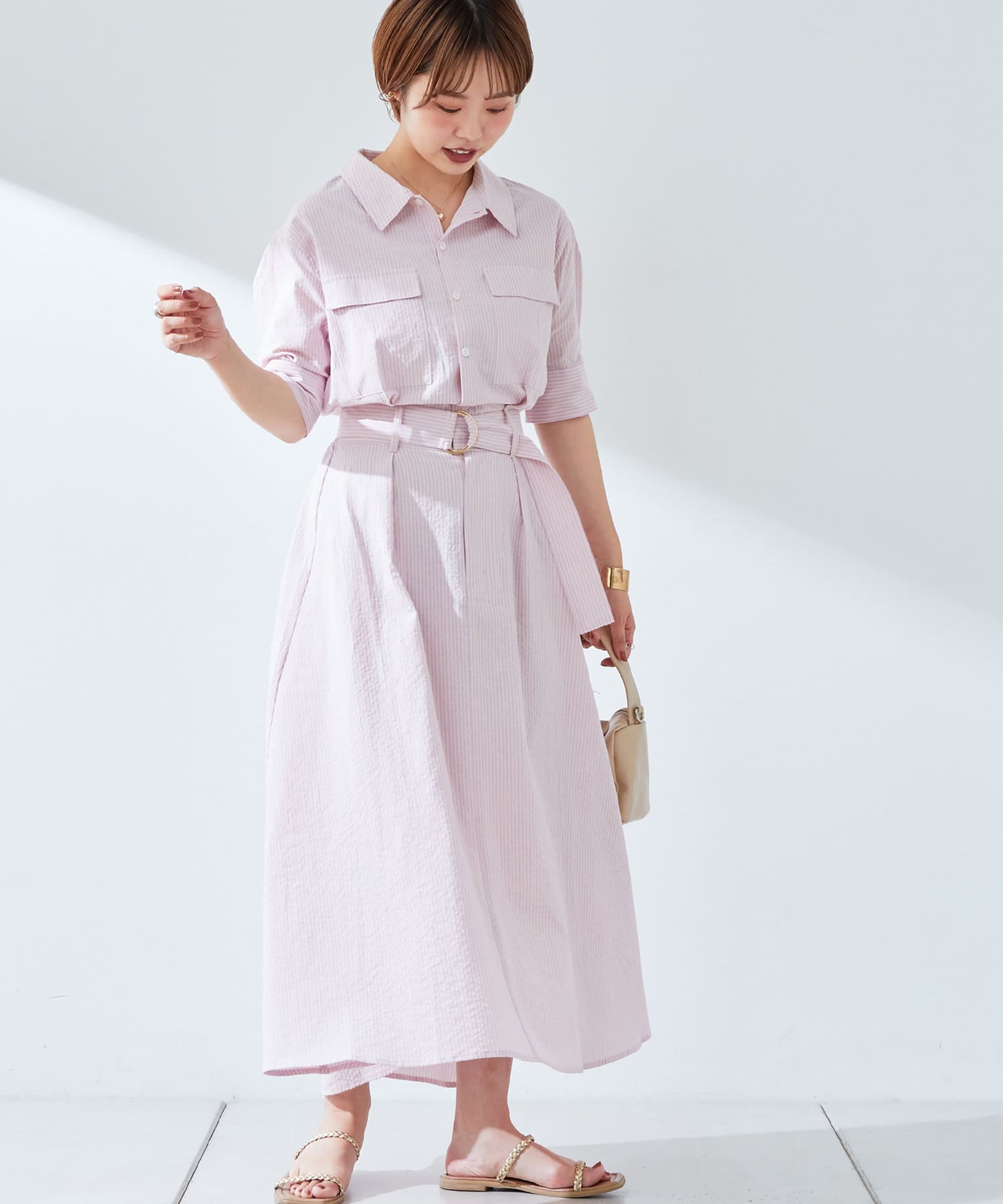 お好みで付属のベルトでウエストマークして頂くと、メリハリが生まれスタイルアップ効果が期待できます。