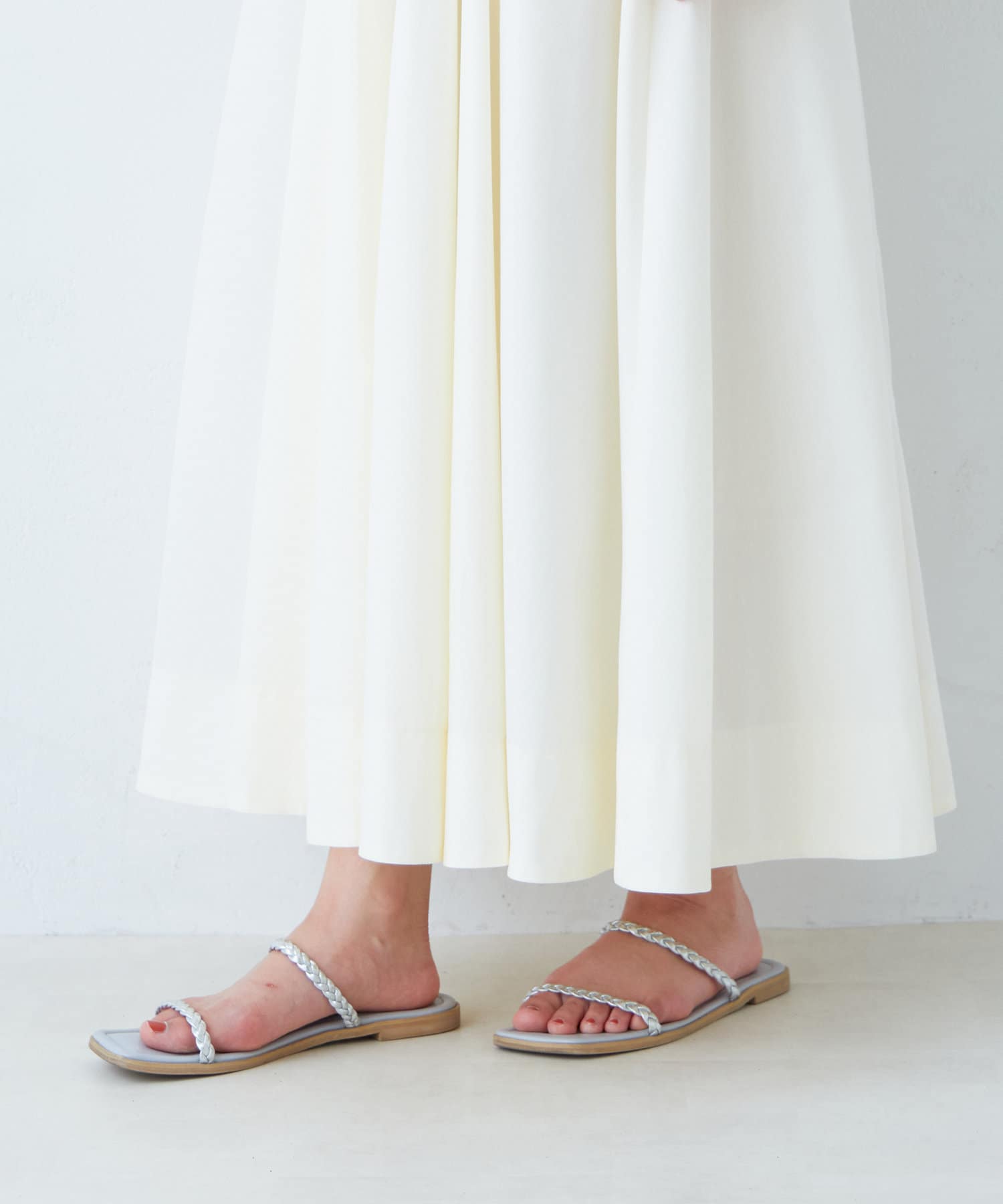 足元はパンプスやサンダル、またスニーカーなどのカジュアルアイテムとも相性◎