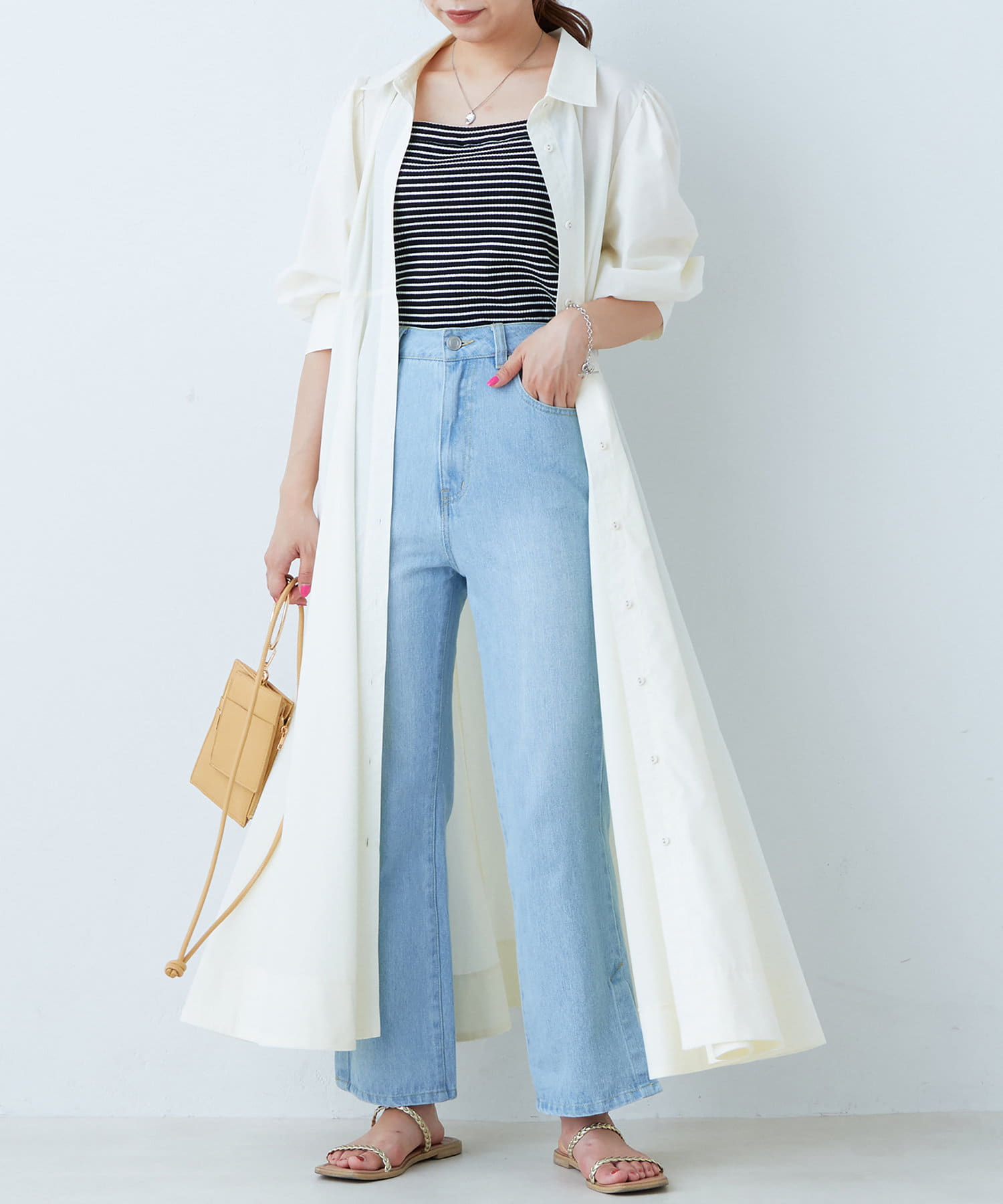 前ボタンを全て開けてデニムやハイウエストスカートと合わせて羽織りとしても着用頂けます。
