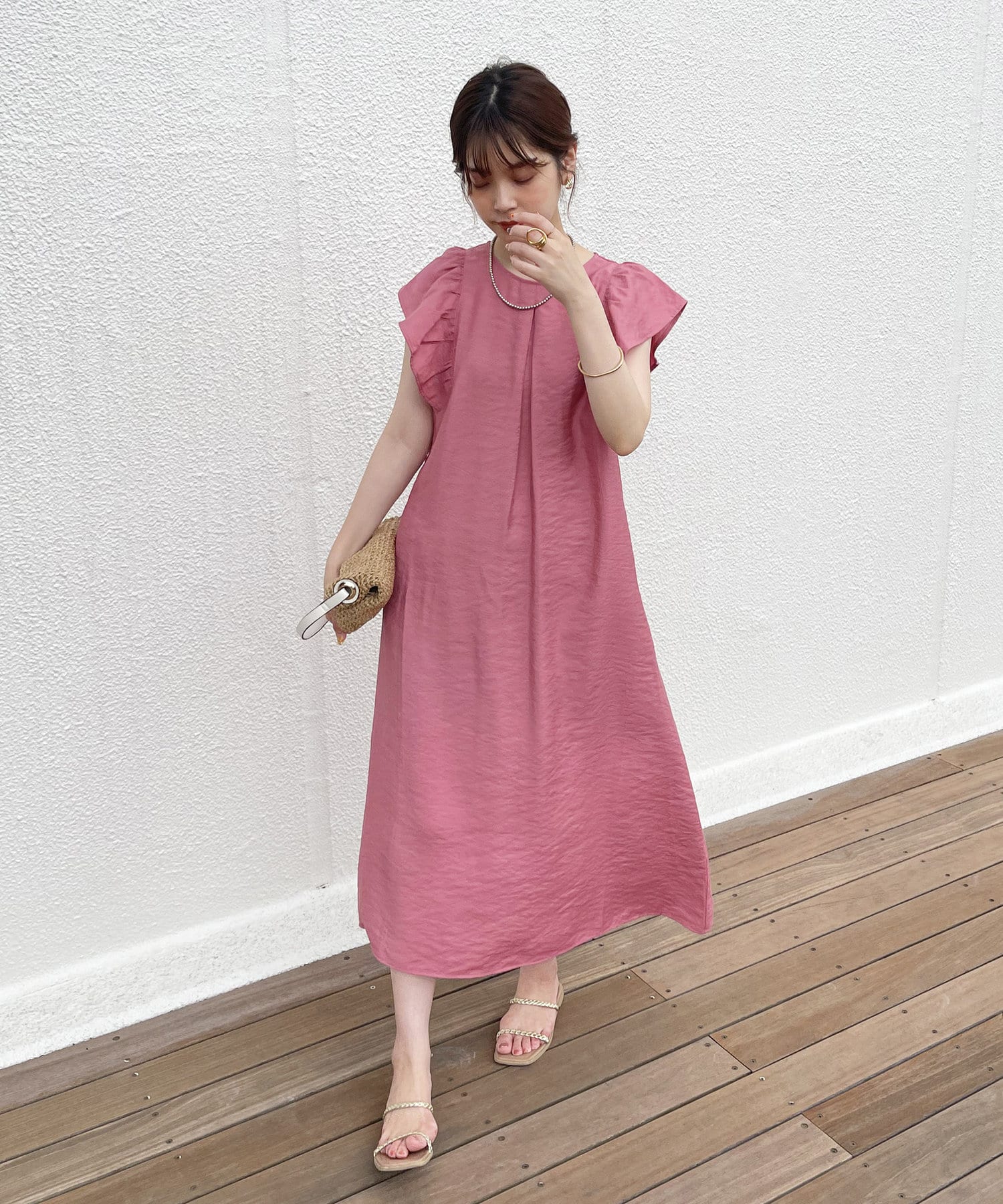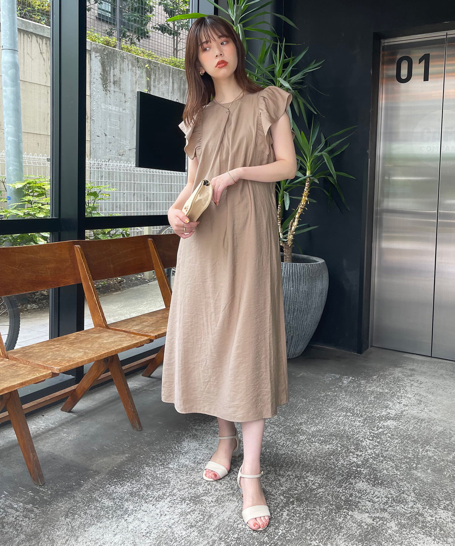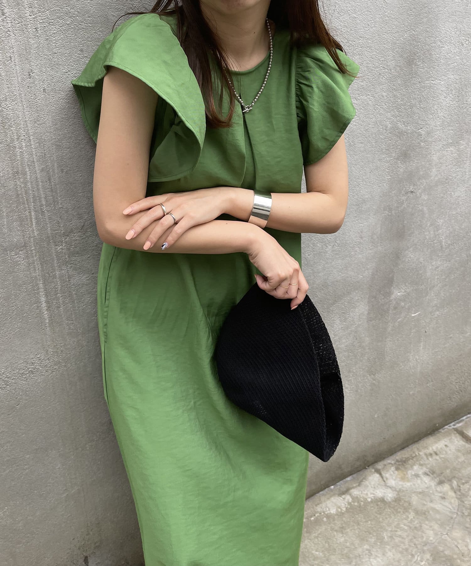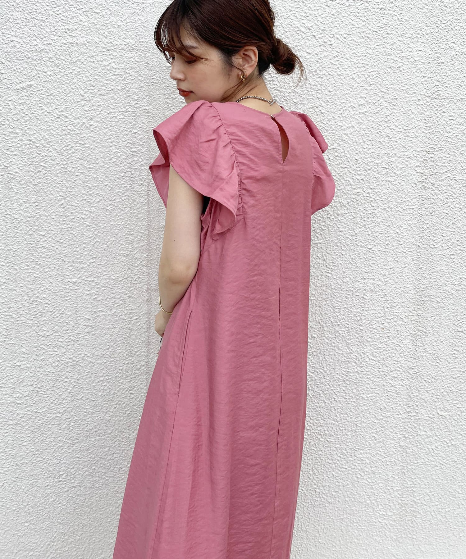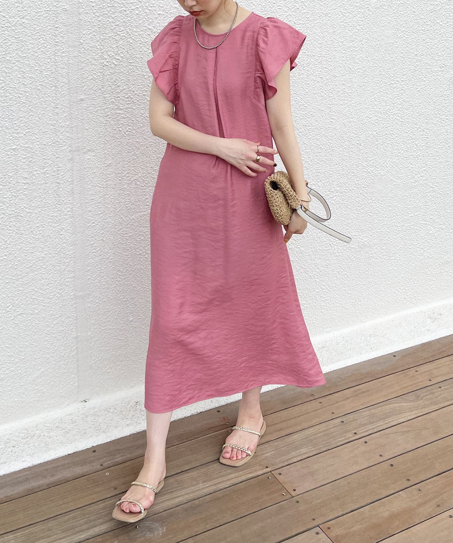 袖フリルにで華やかに大人ムードを漂わせ、レディーらしさ溢れるワンピース。