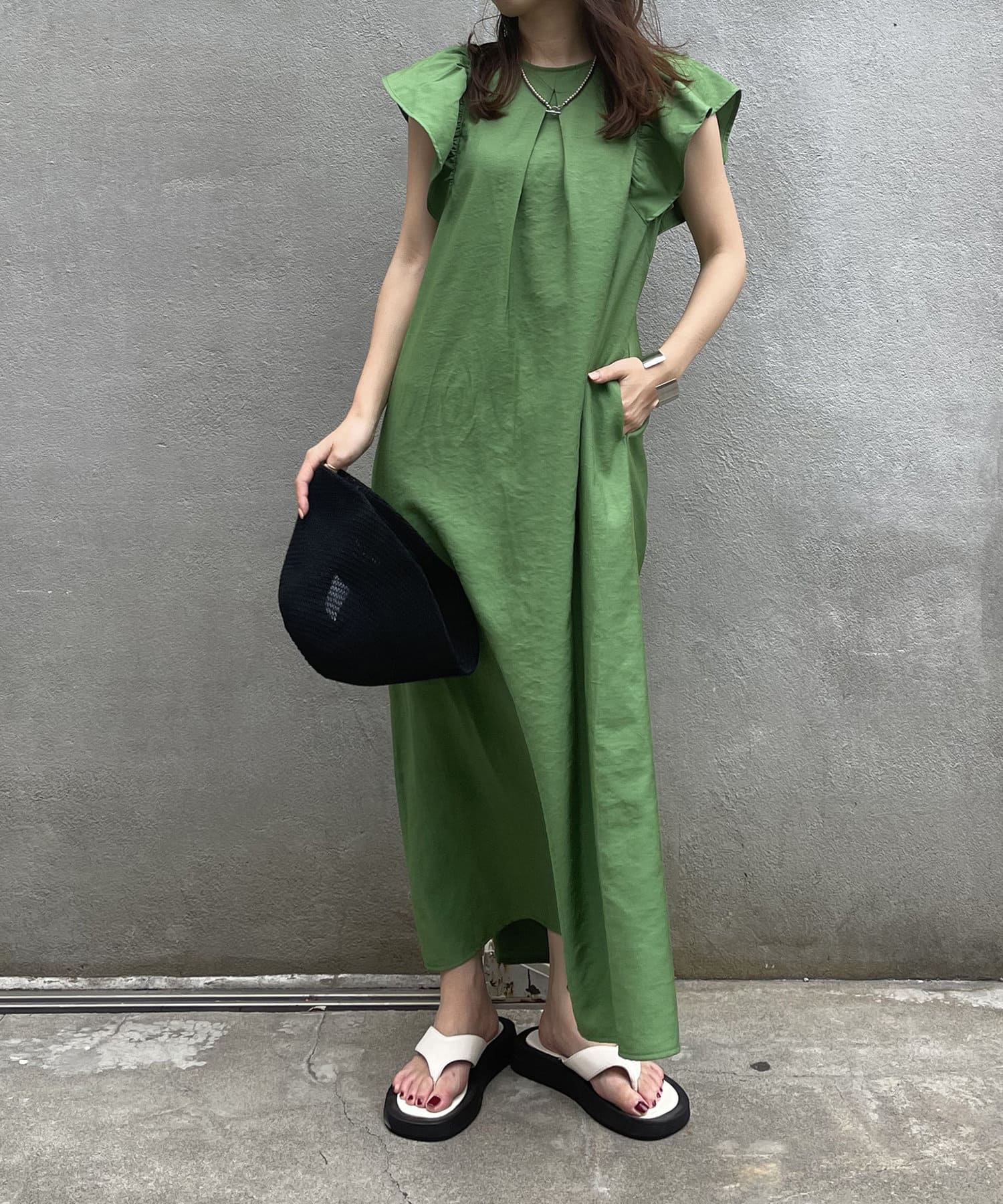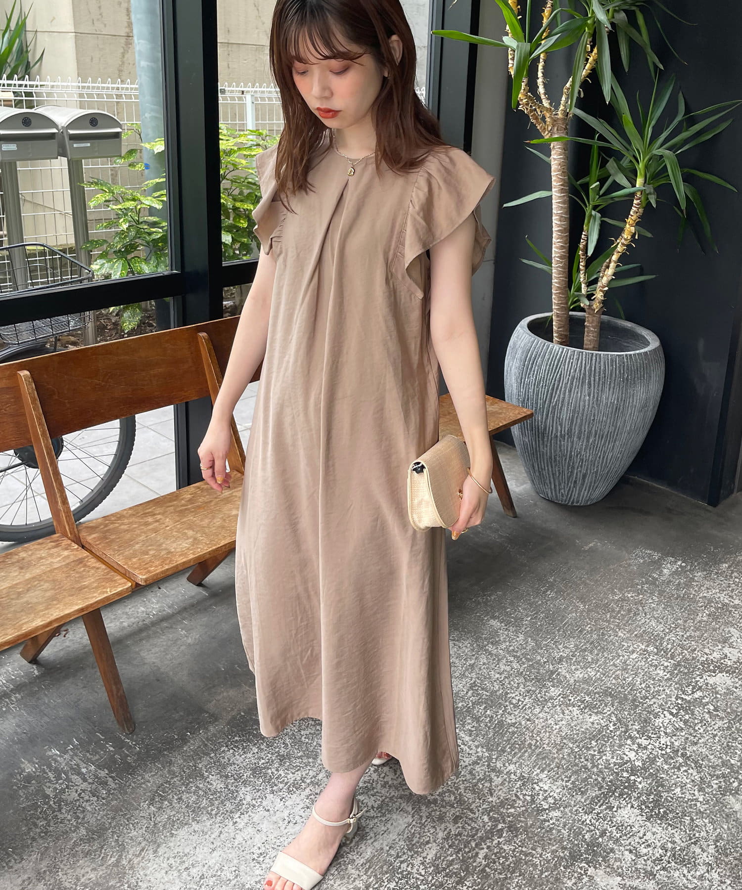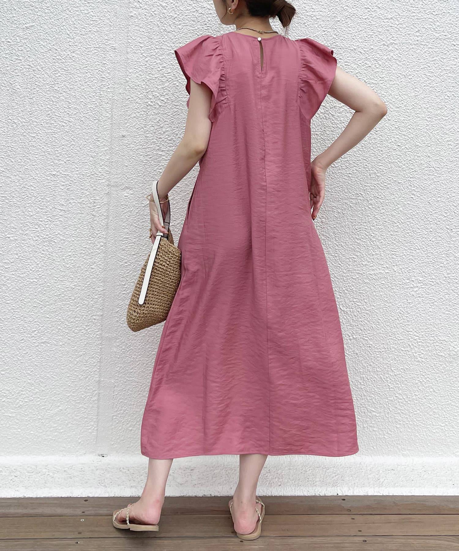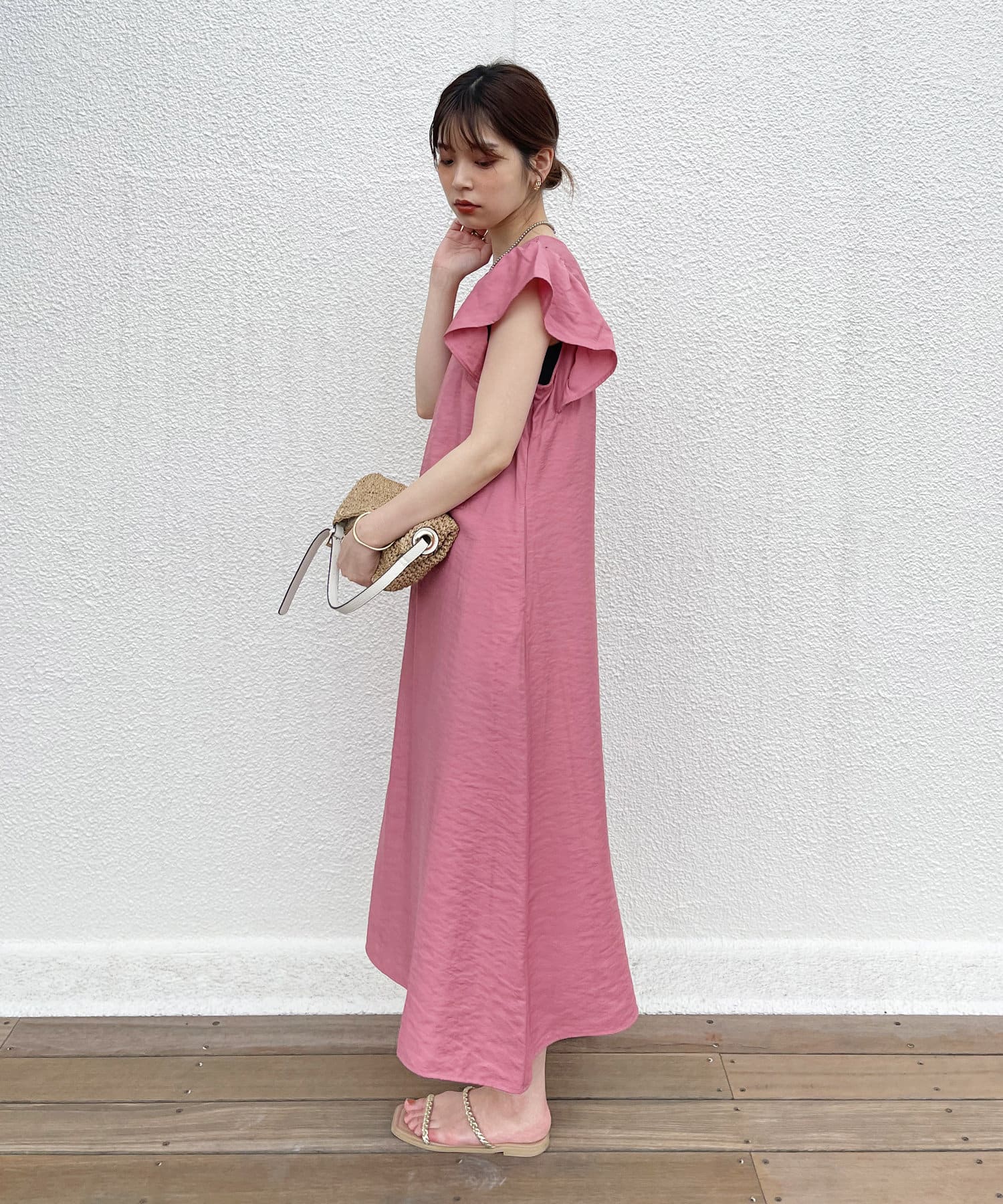 袖フリルにで華やかに大人ムードを漂わせ、レディーらしさ溢れるワンピース。
