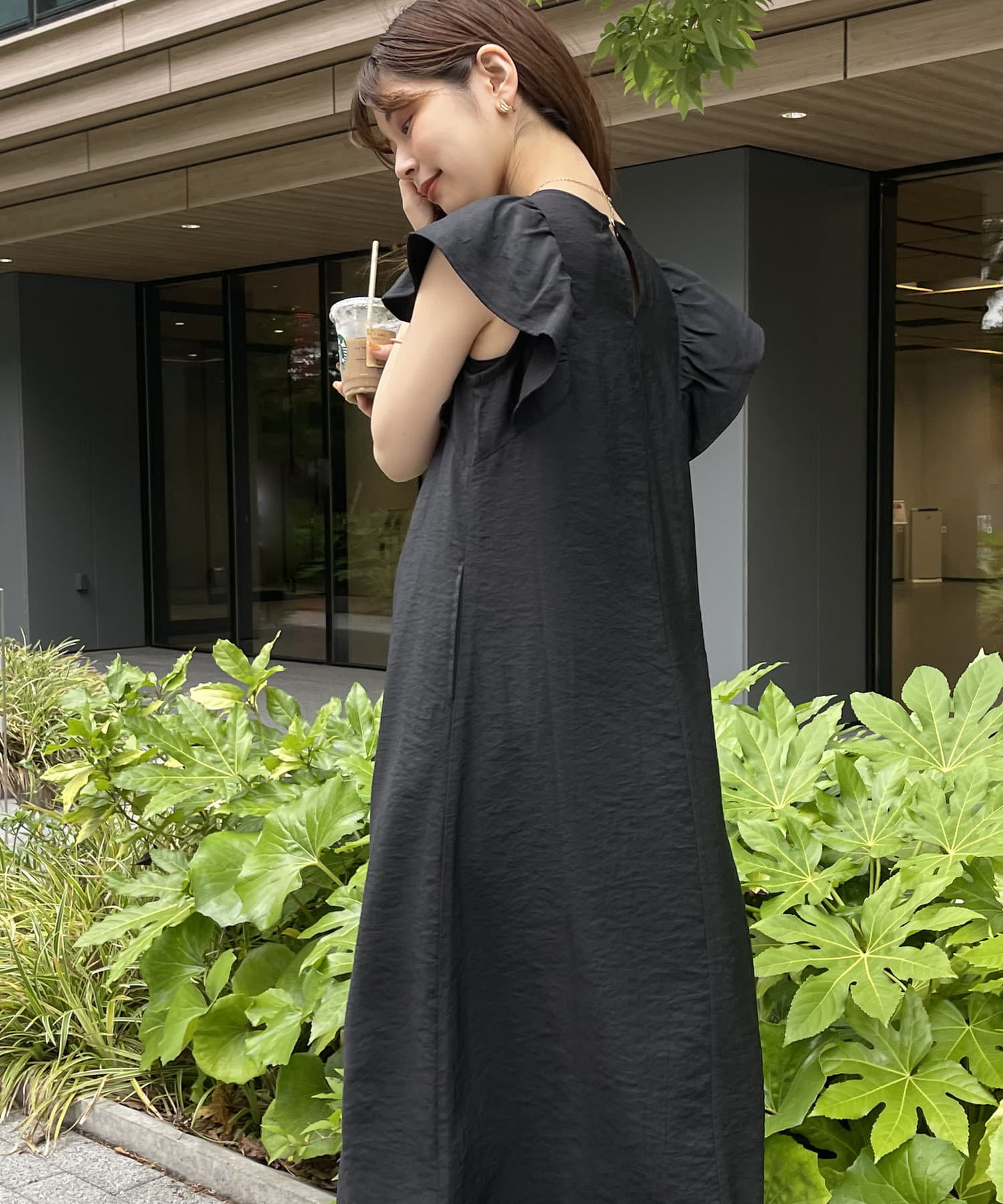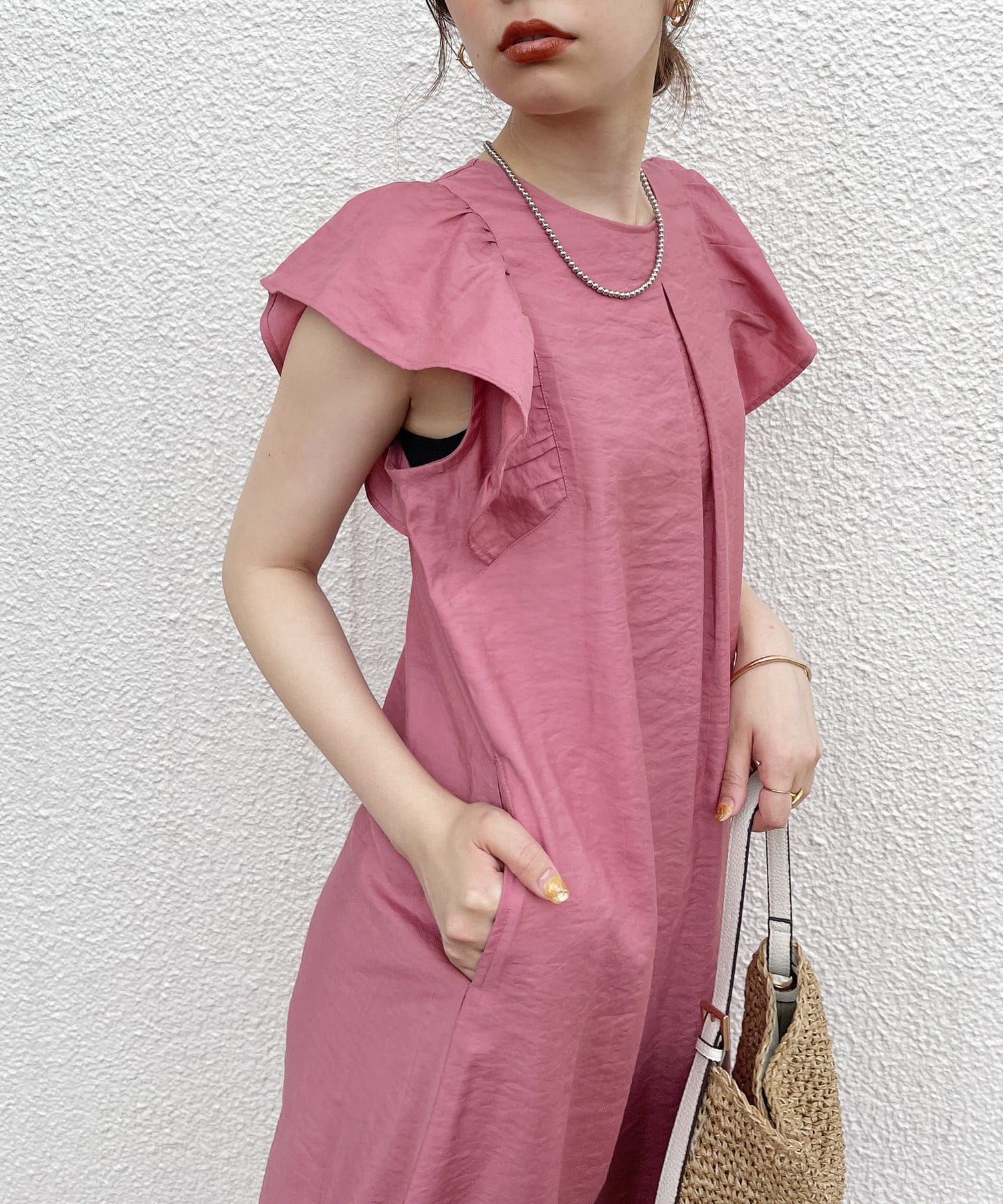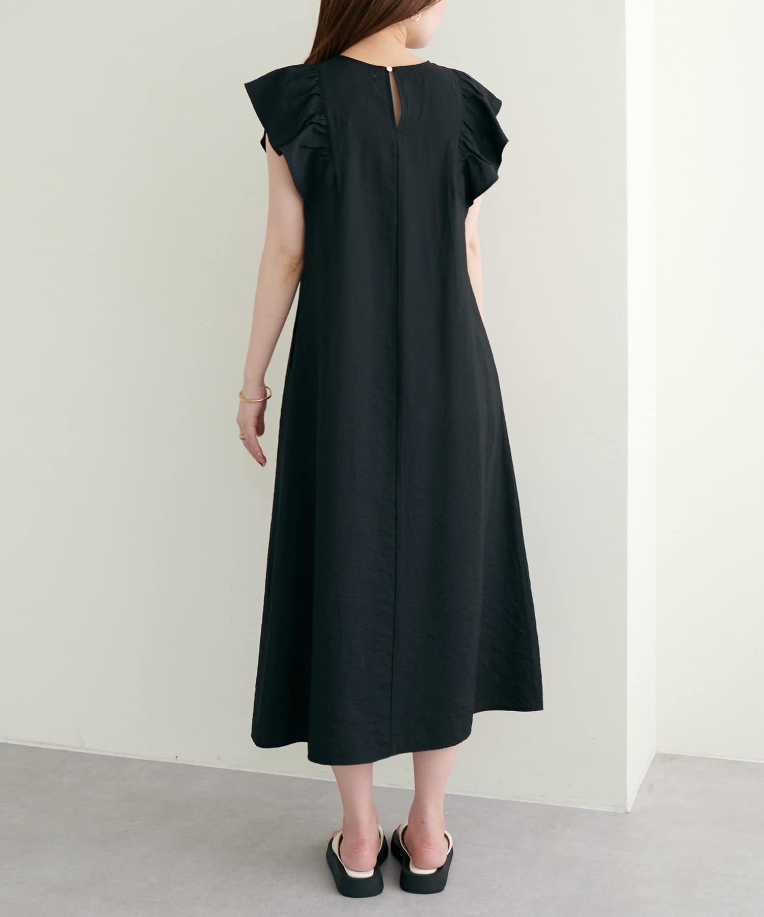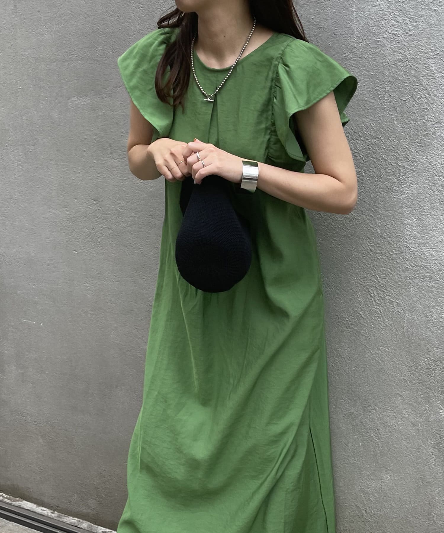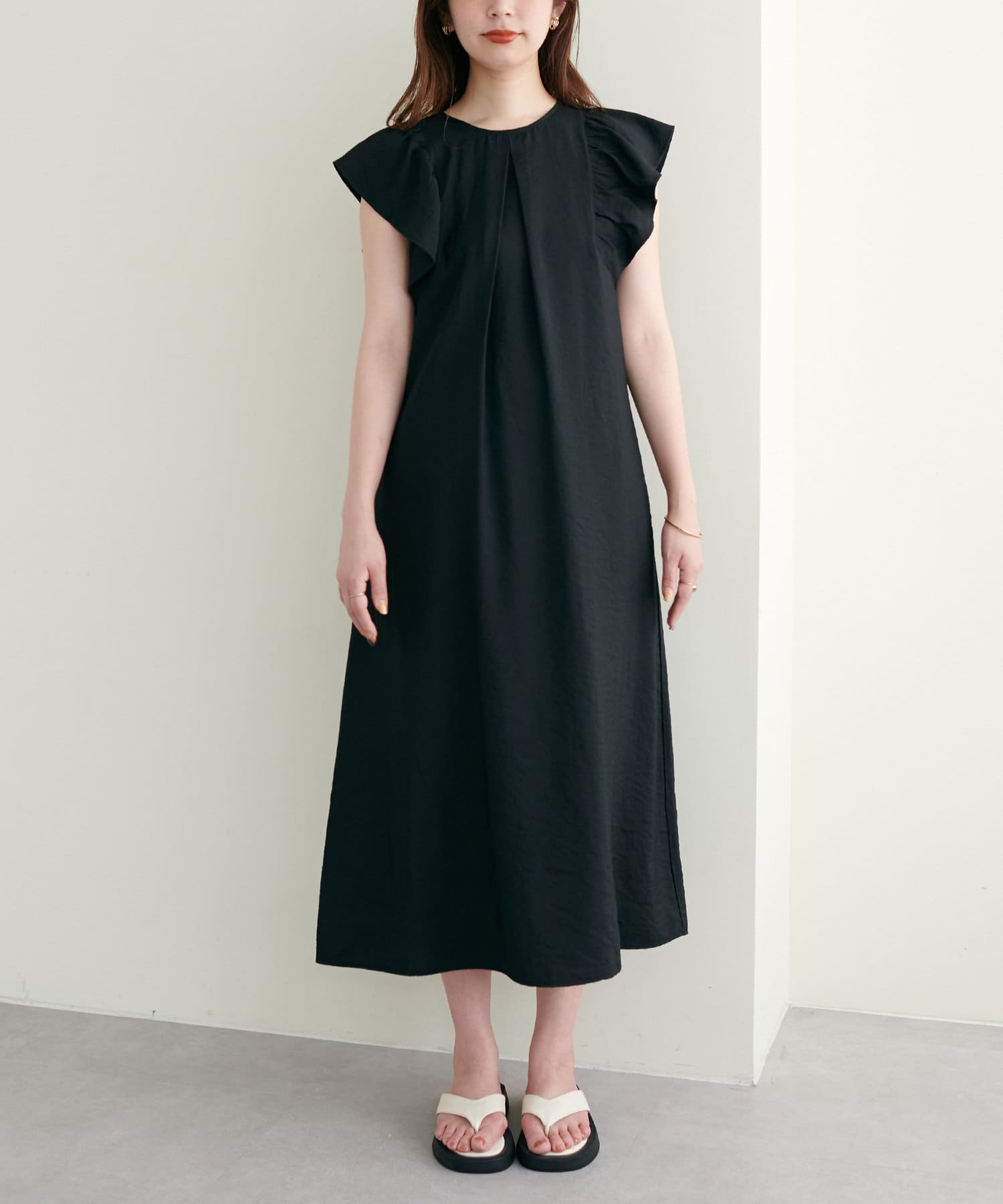 袖フリルにで華やかに大人ムードを漂わせ、レディーらしさ溢れるワンピース。