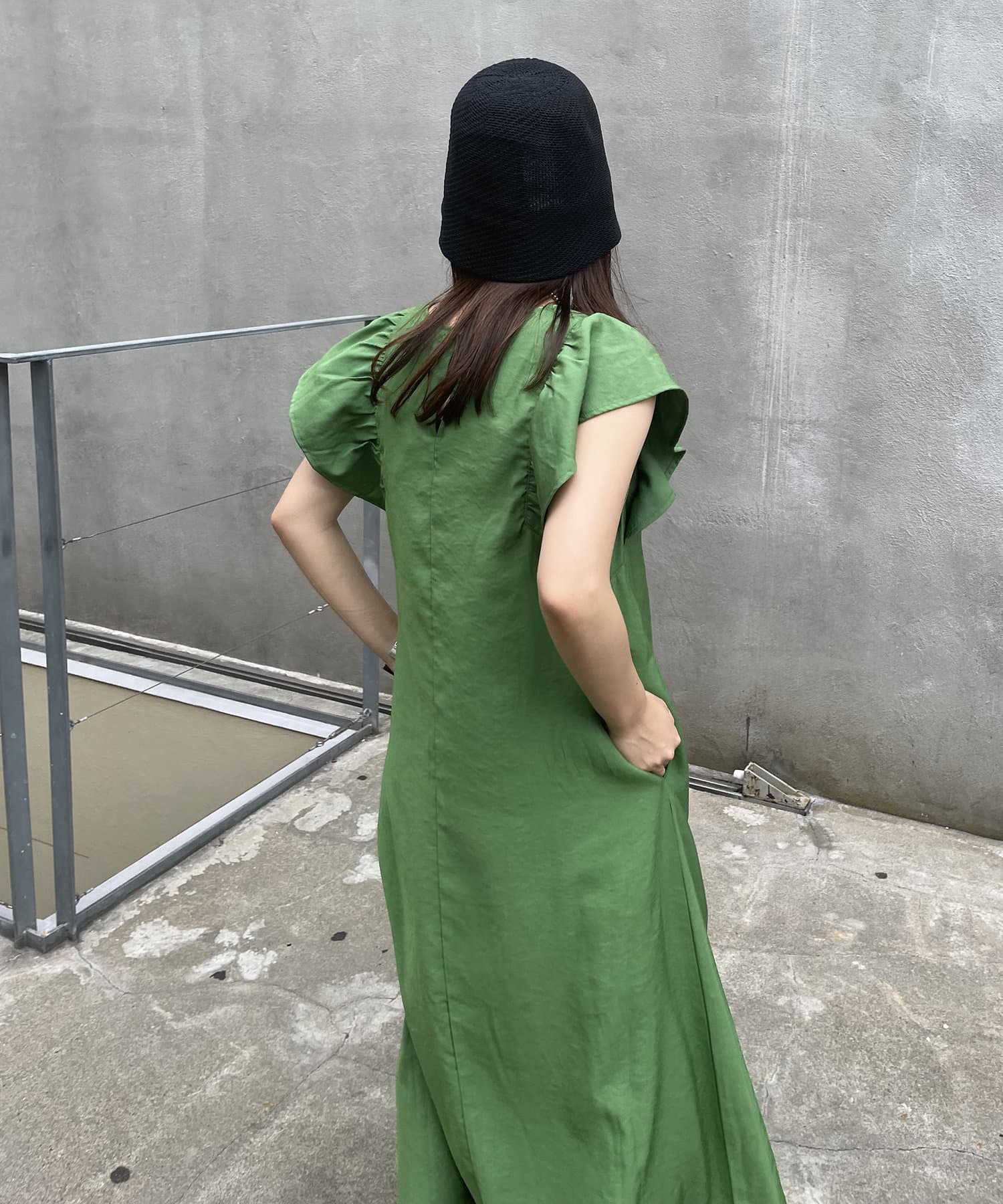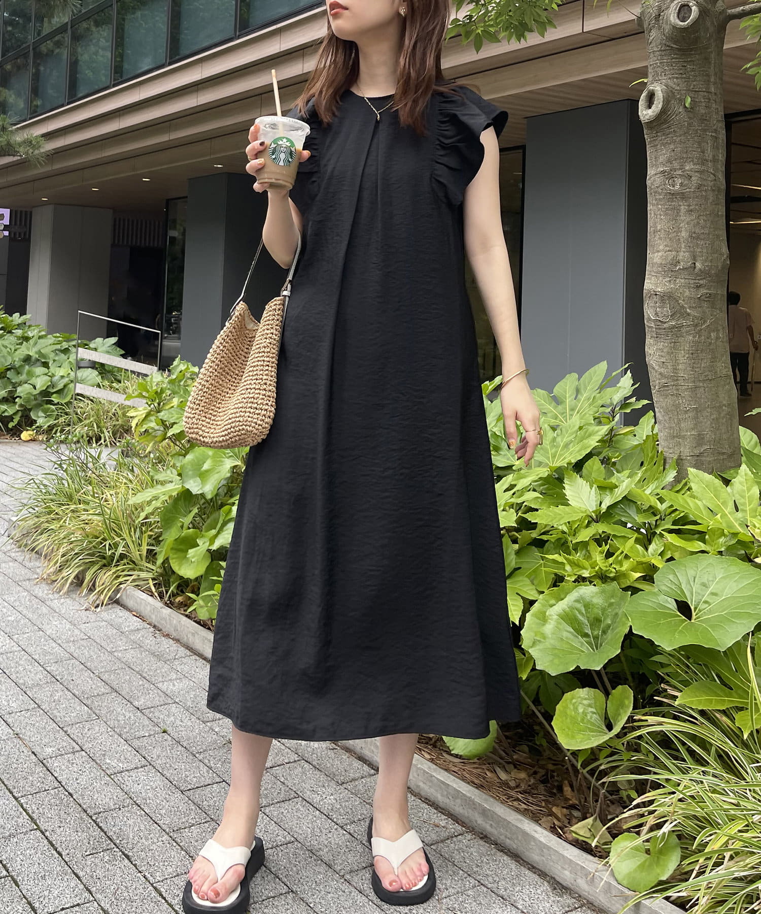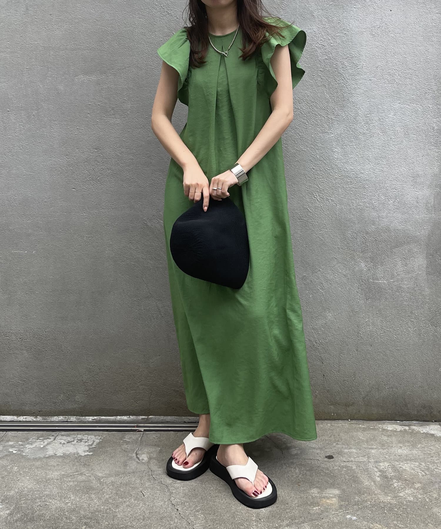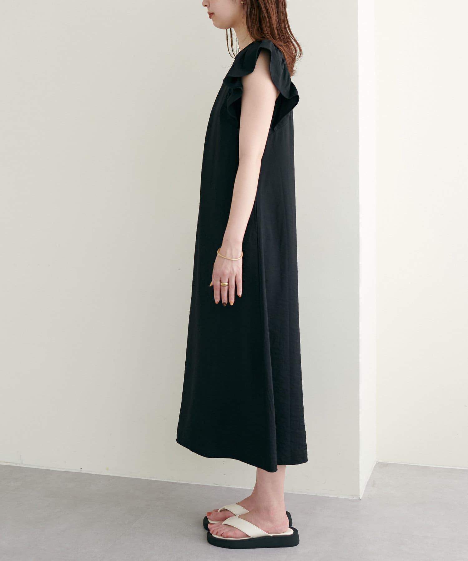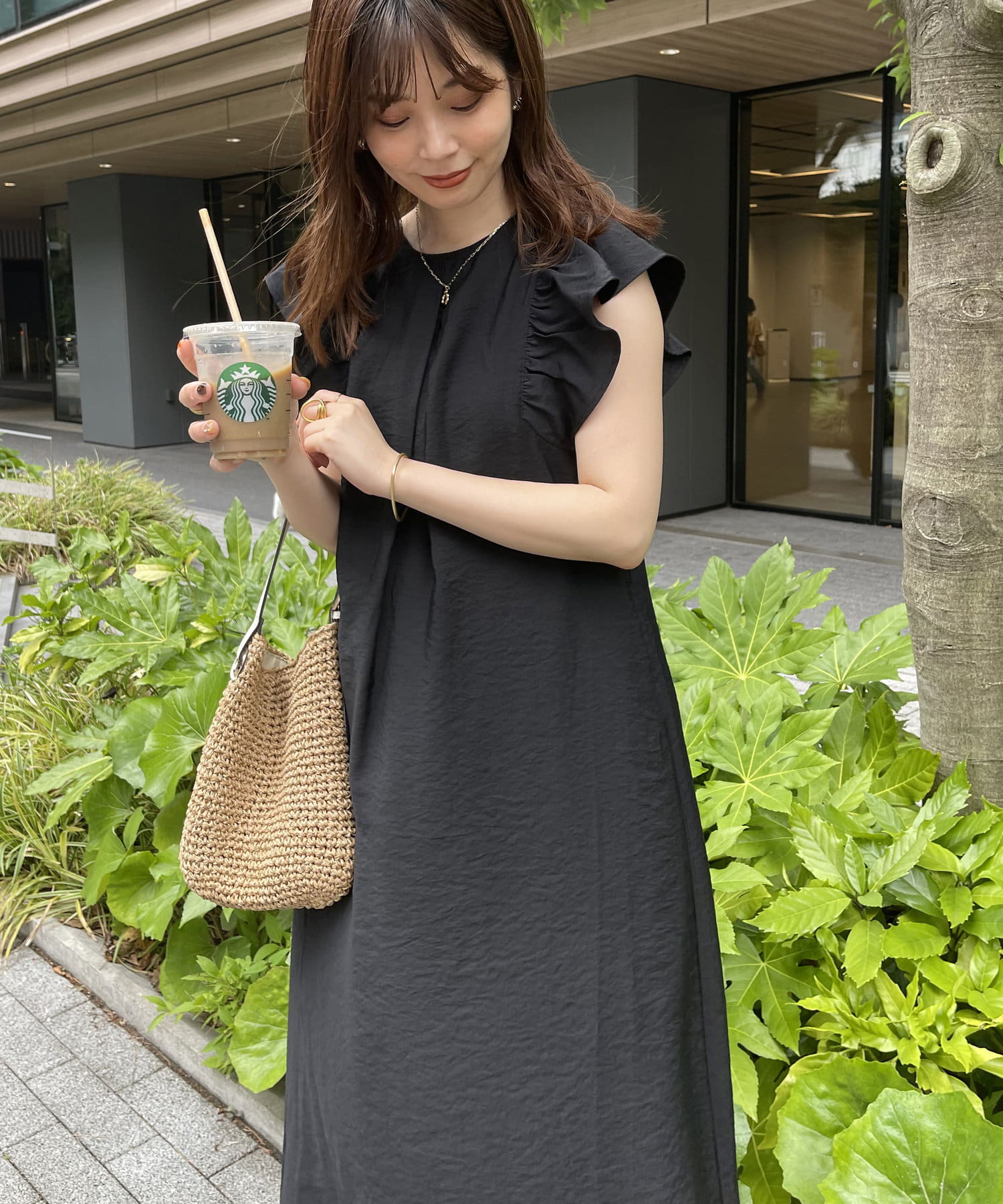 袖フリルにで華やかに大人ムードを漂わせ、レディーらしさ溢れるワンピース。