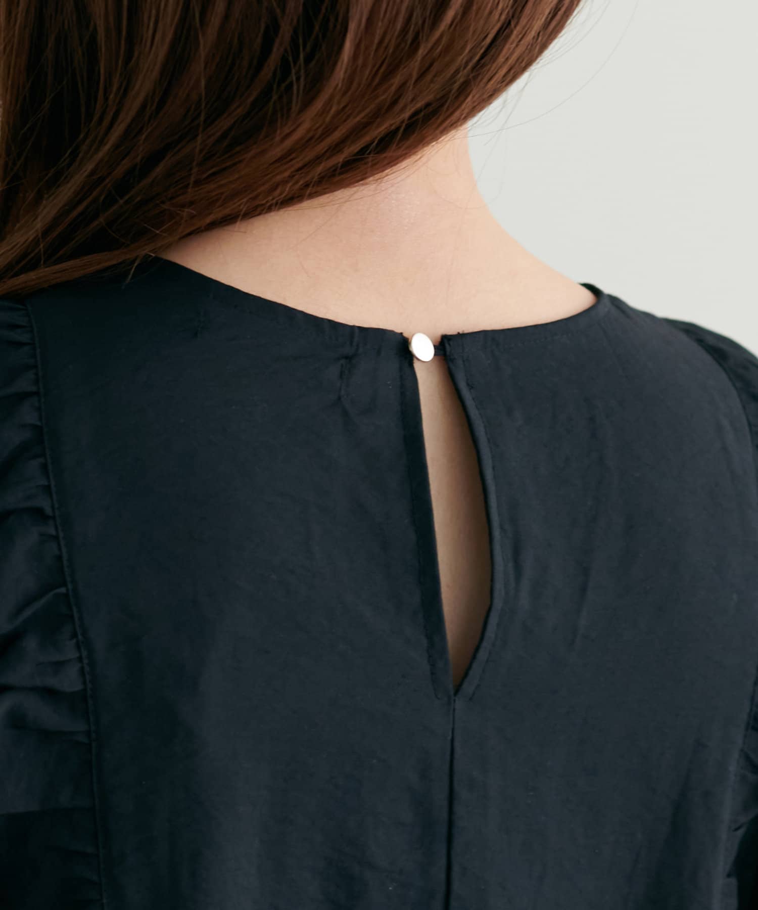 肩周りはフレアでボリュームを持たせ、ノーアクセサリーでも成立する存在感に仕上げると共に、