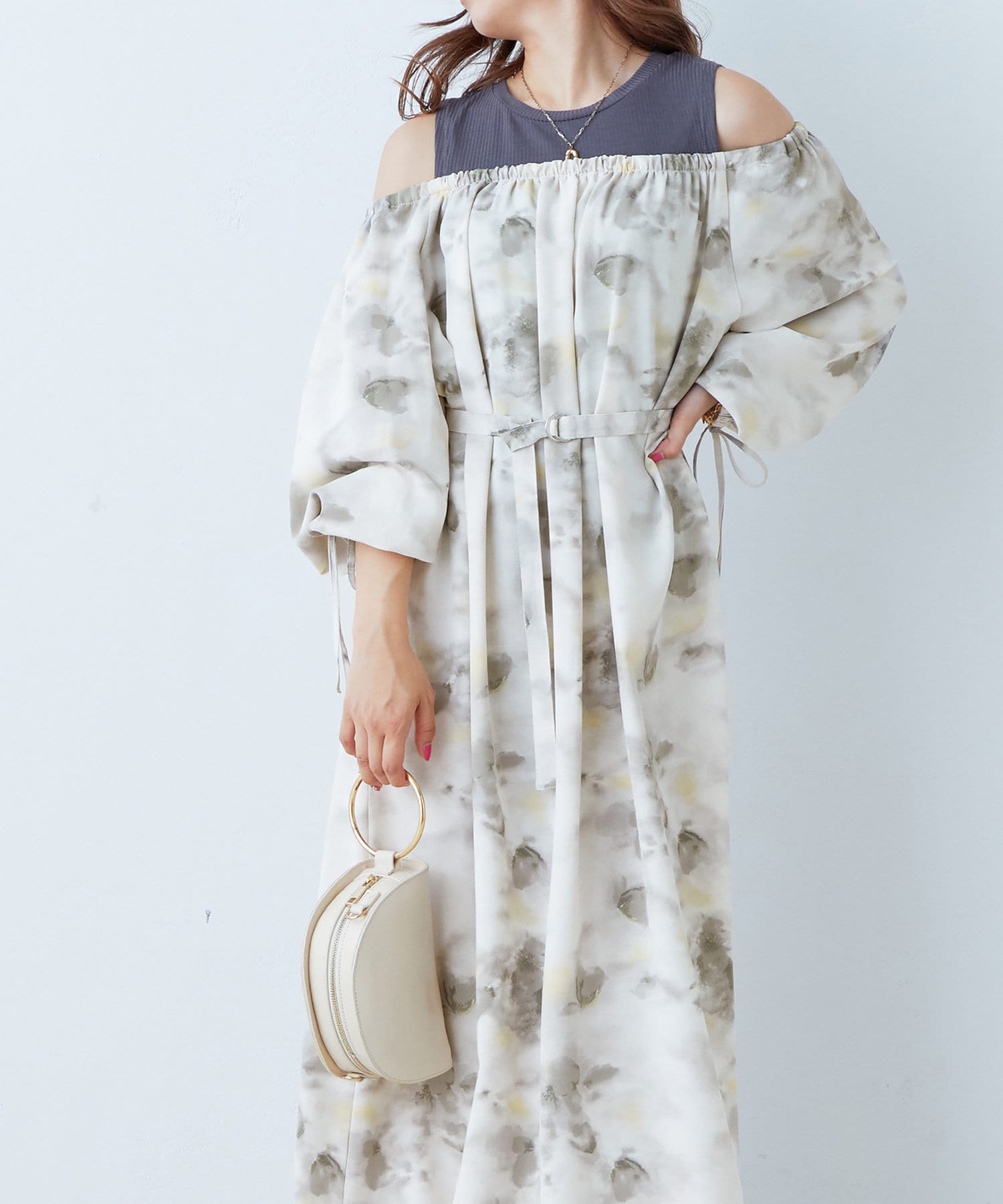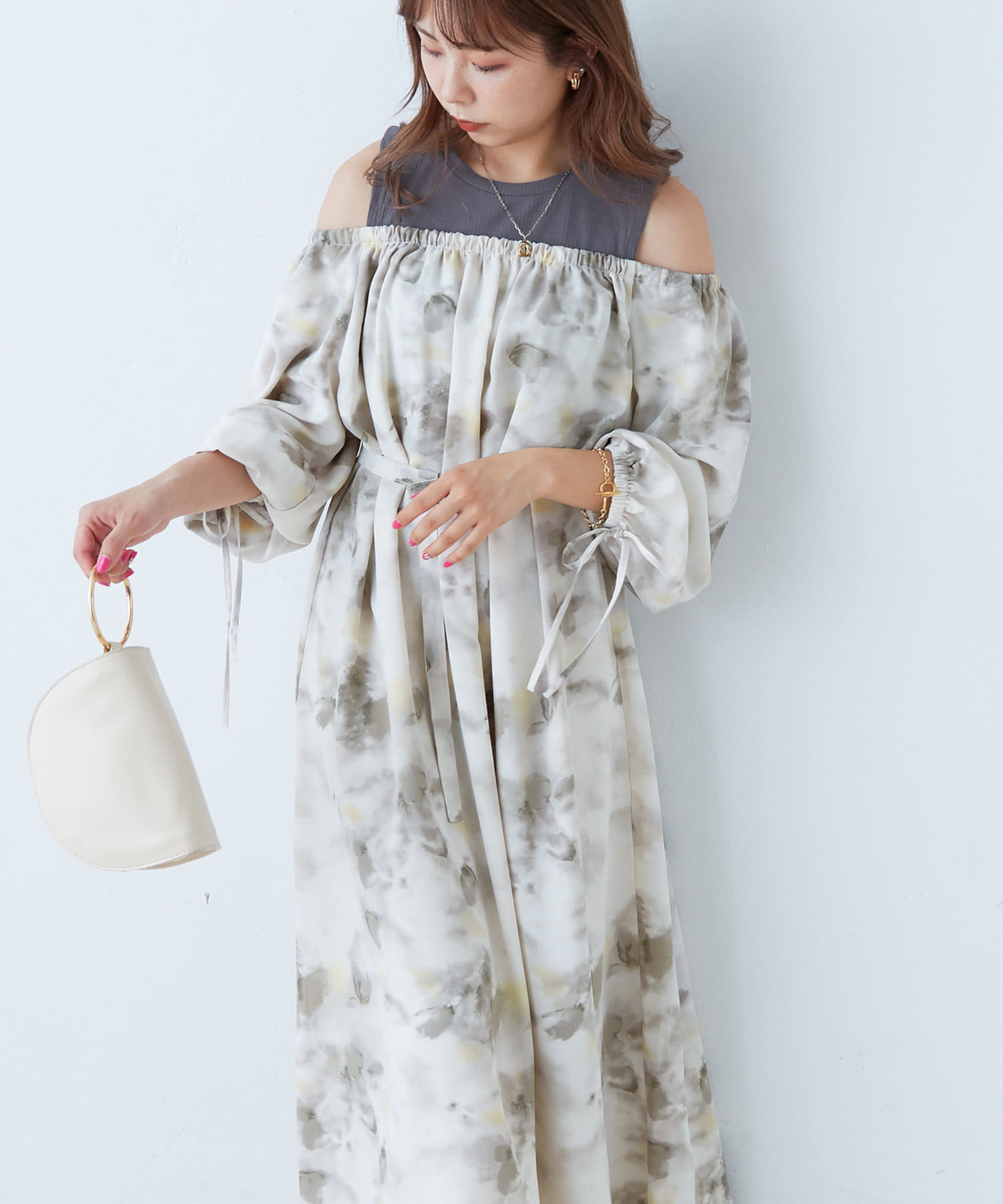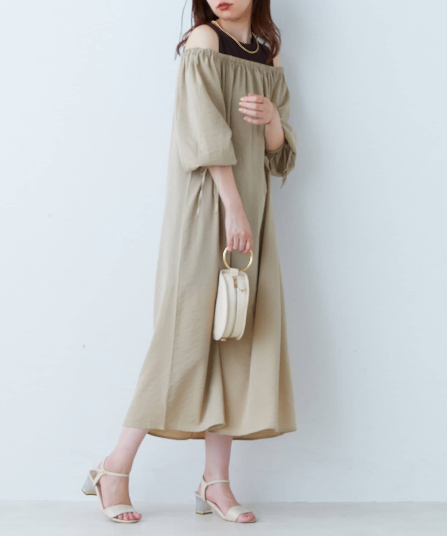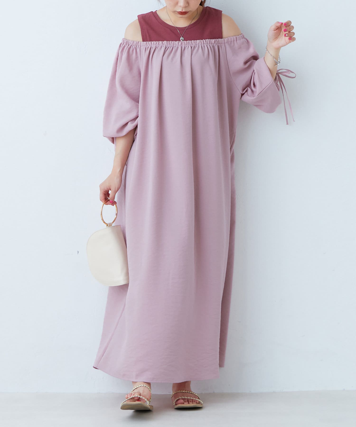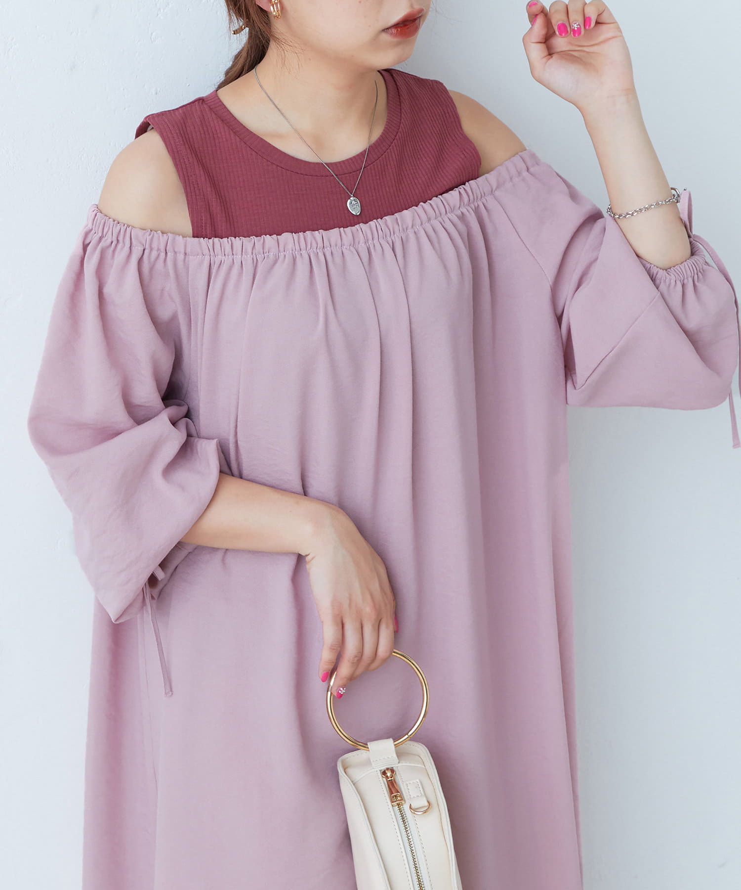 肩出しレイヤードワンピース