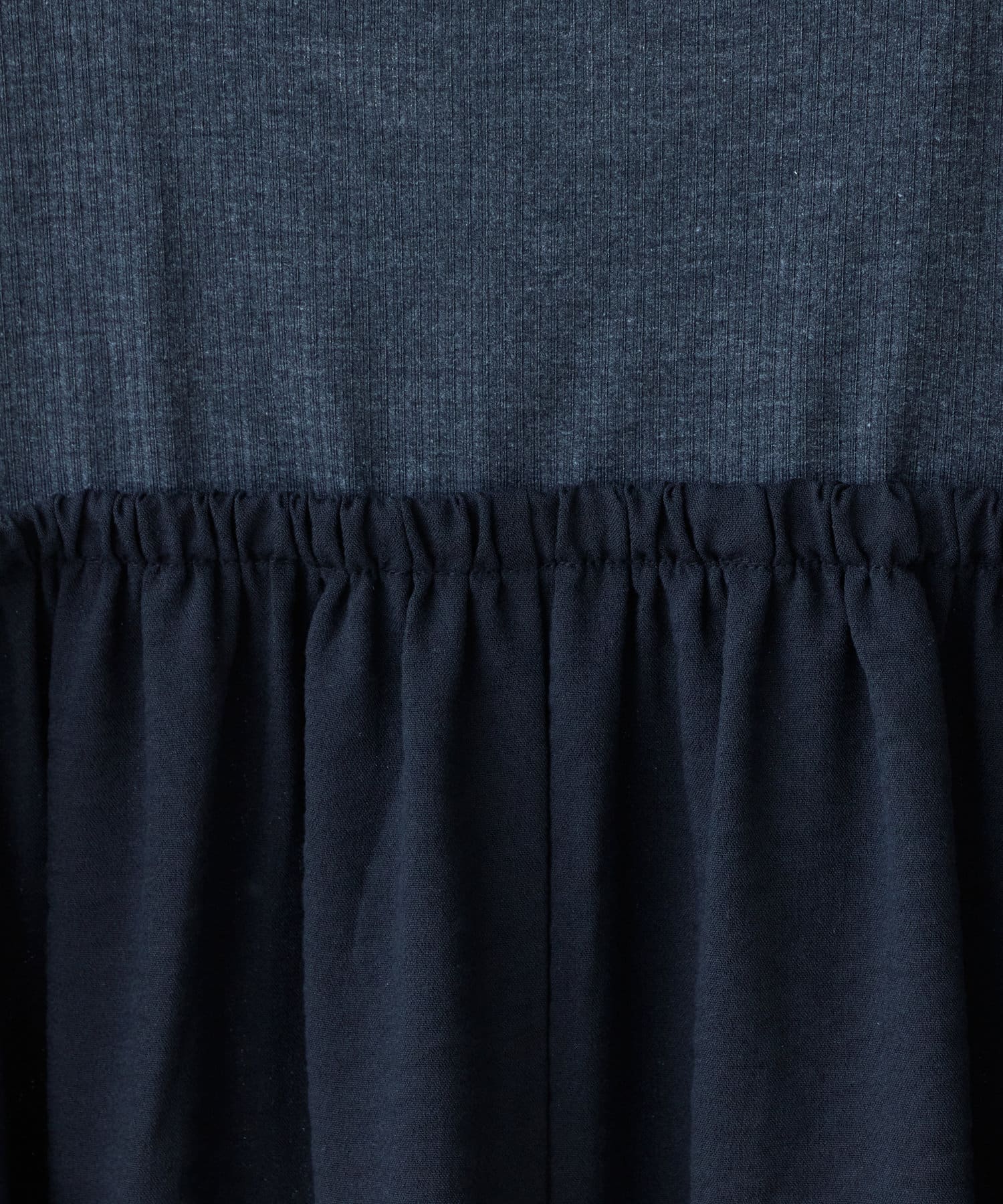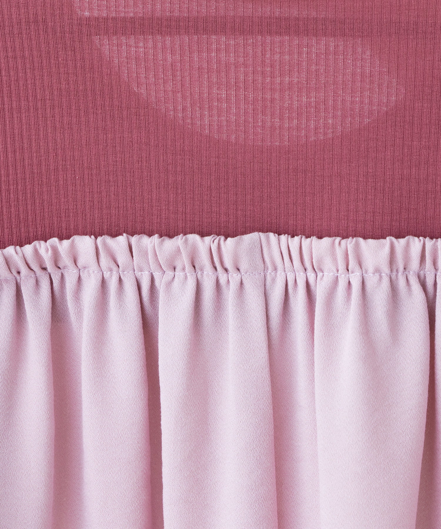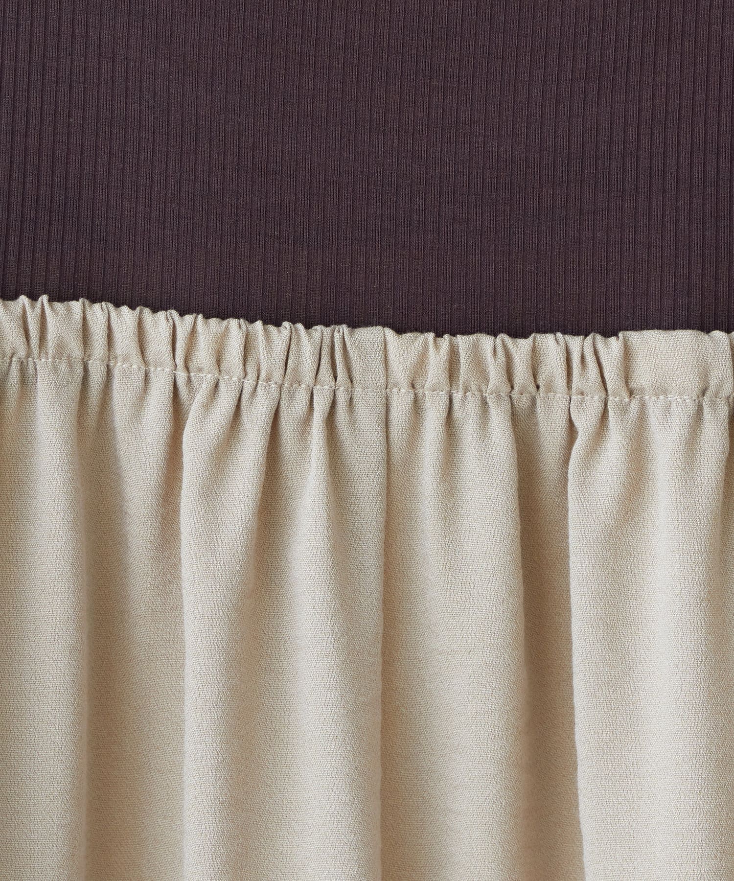 リブ部分は柔らかなカット地を、本体部分はさらっとした布帛地を採用しました。
