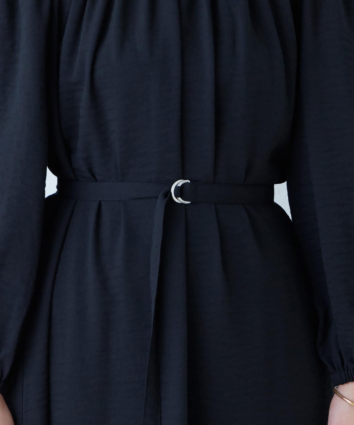 お好みで付属のベルトでウエストマークし、ブラウジングして頂くと、異なるシルエットに変化します。