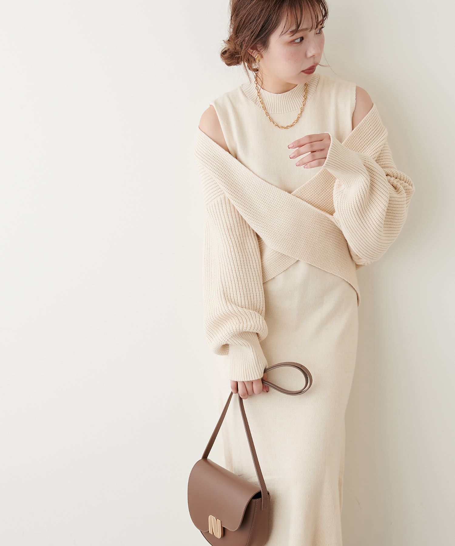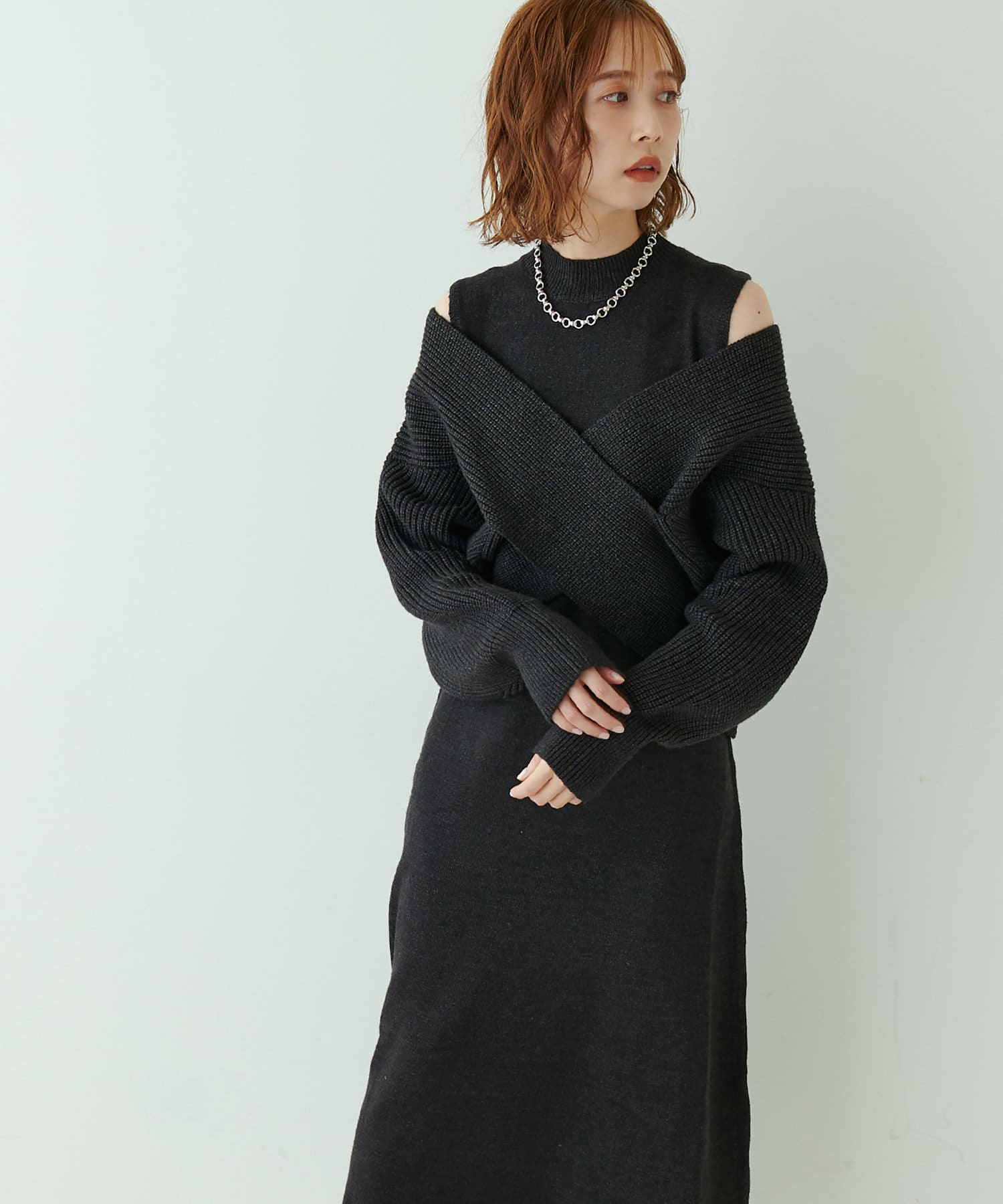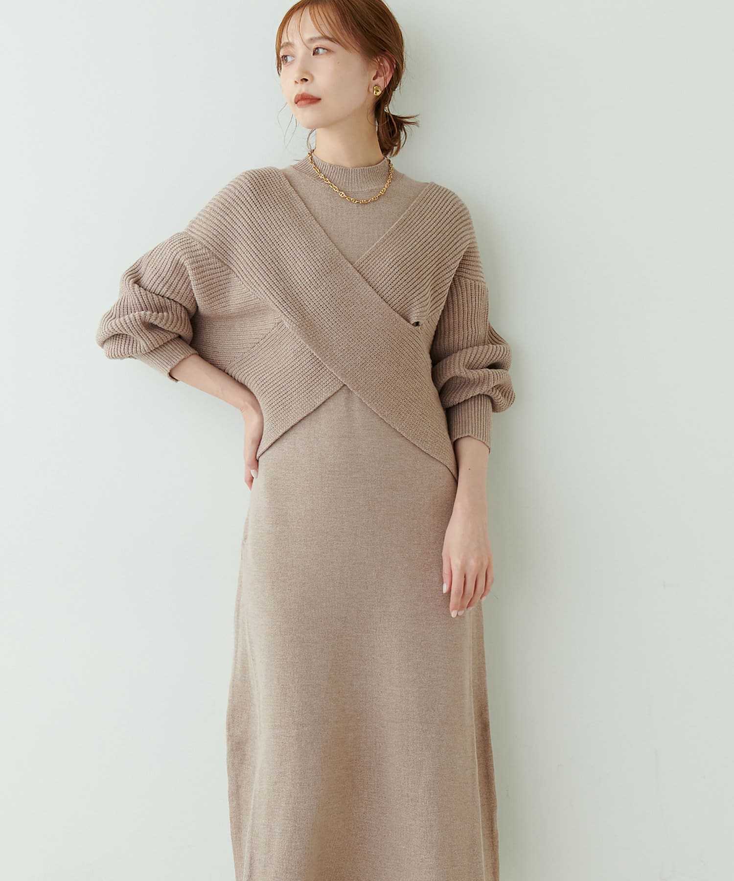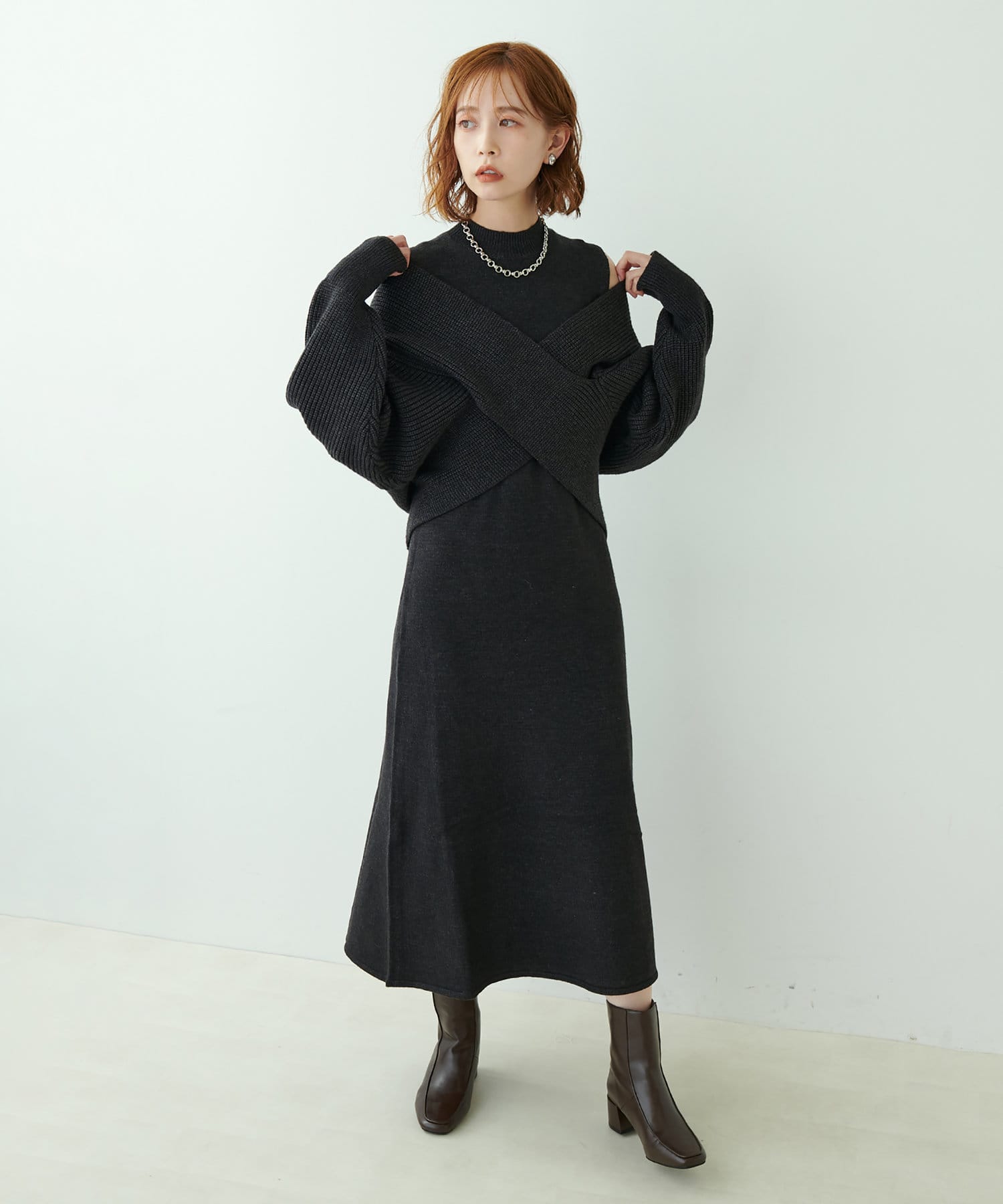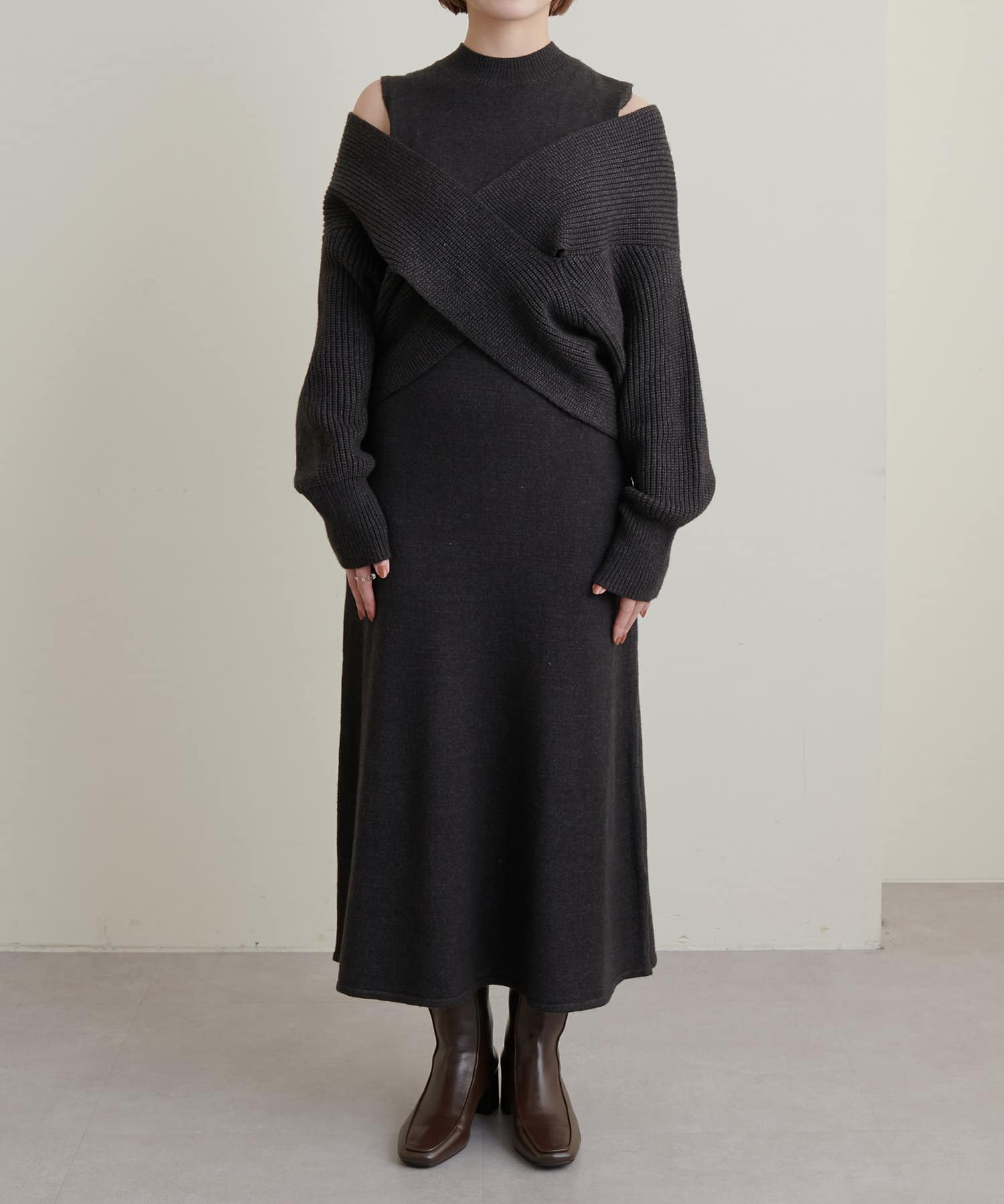 348720320 【WEB限定・大好評リバイバルアイテム】クロスニット+ノースリワンピースセット