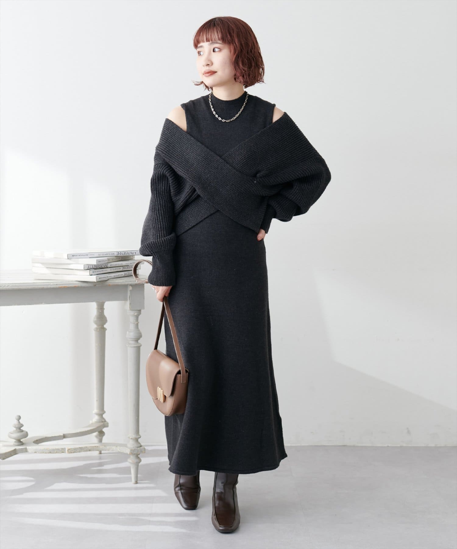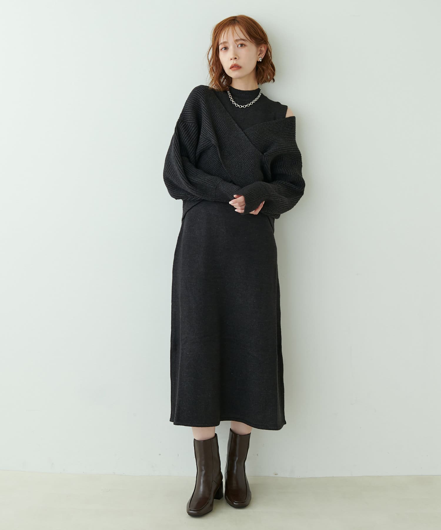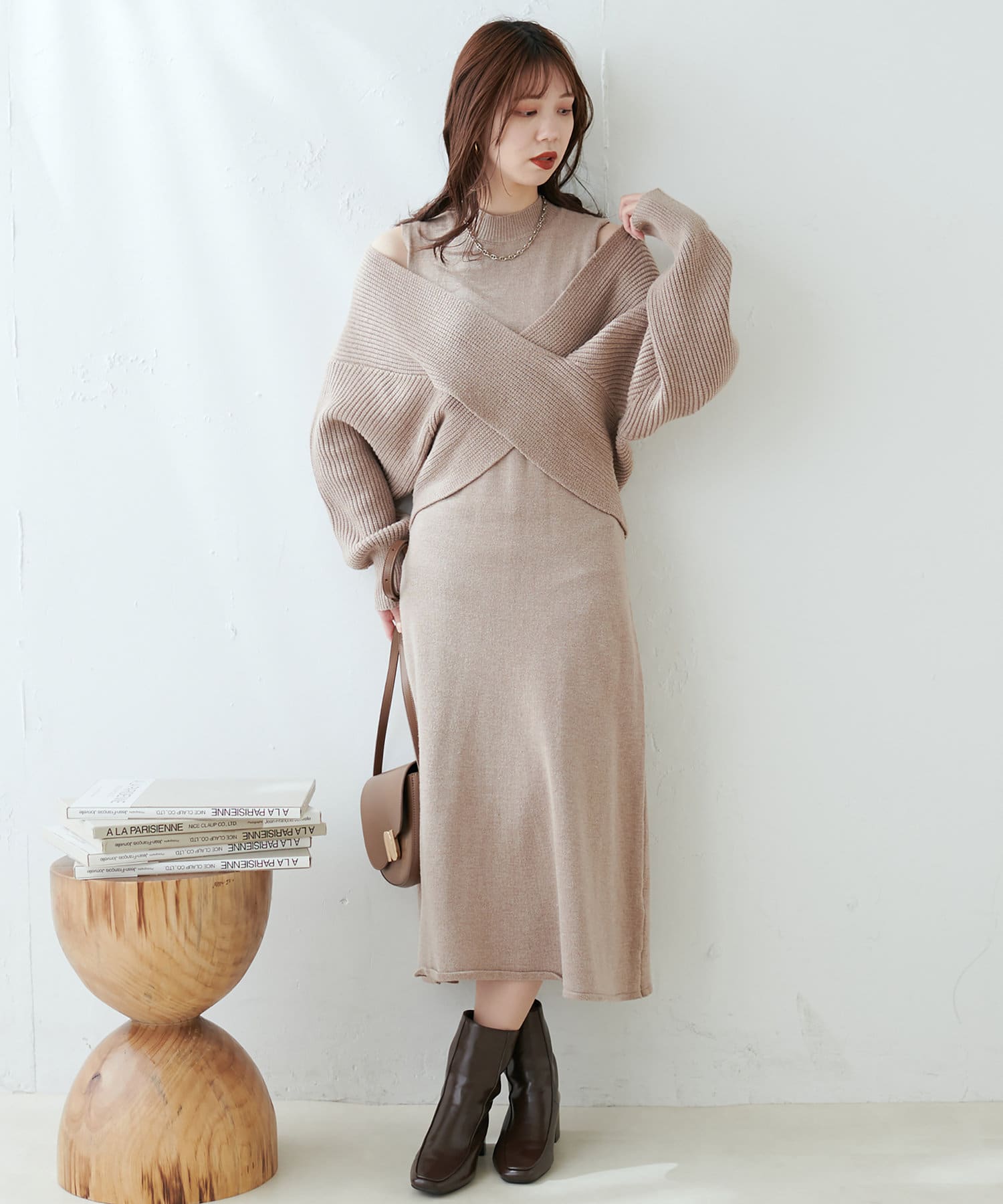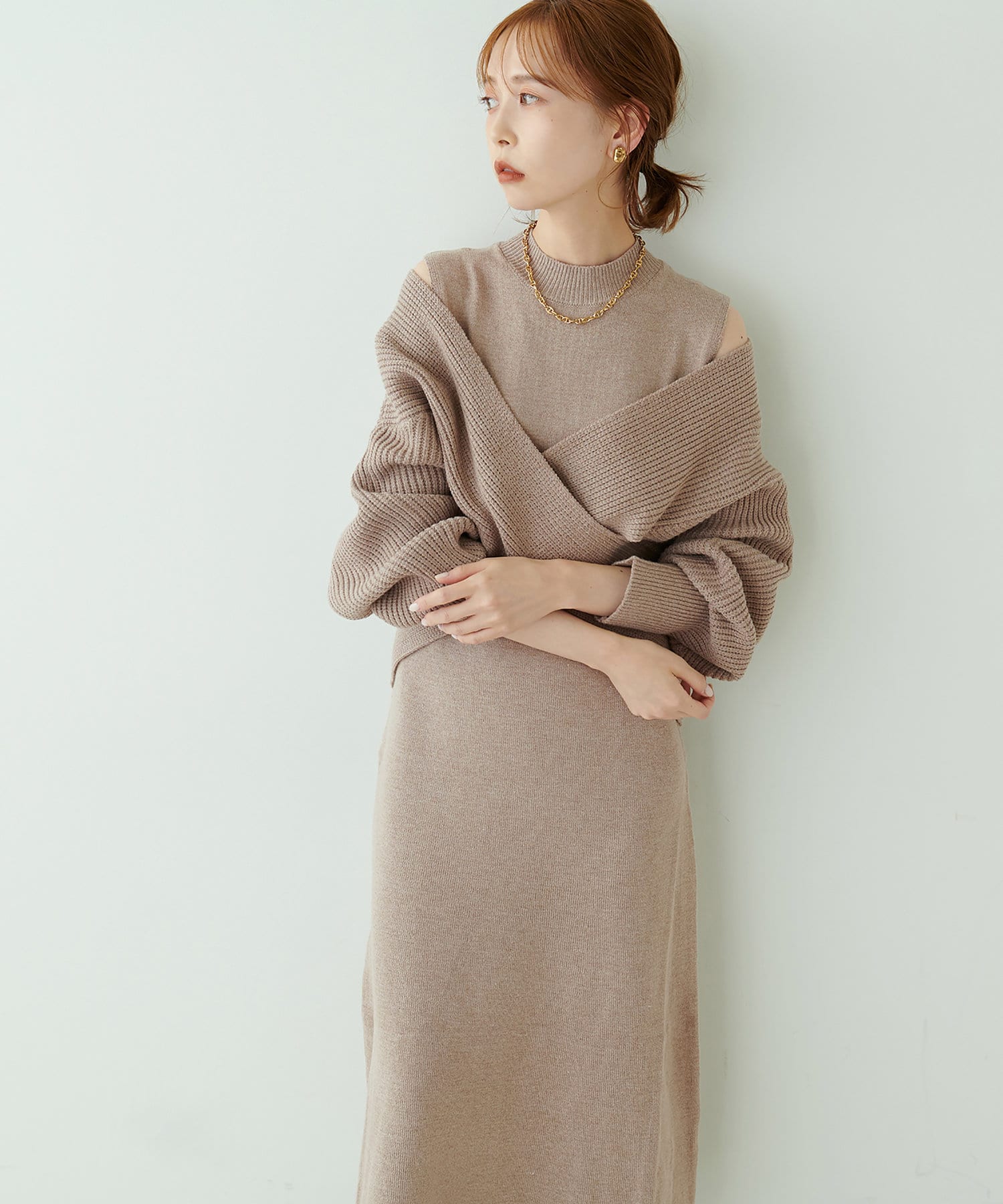 348720320 【WEB限定・大好評リバイバルアイテム】クロスニット+ノースリワンピースセット