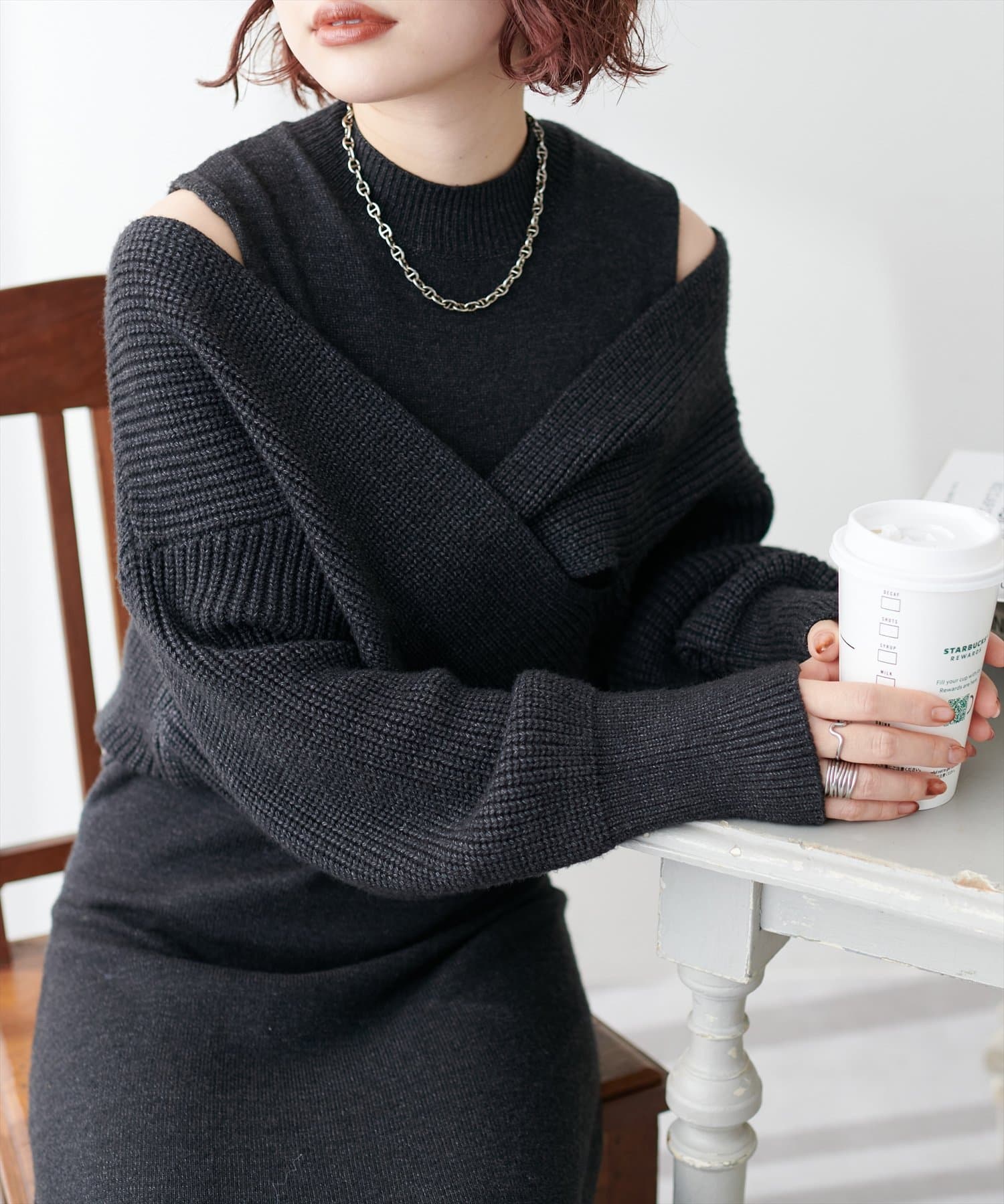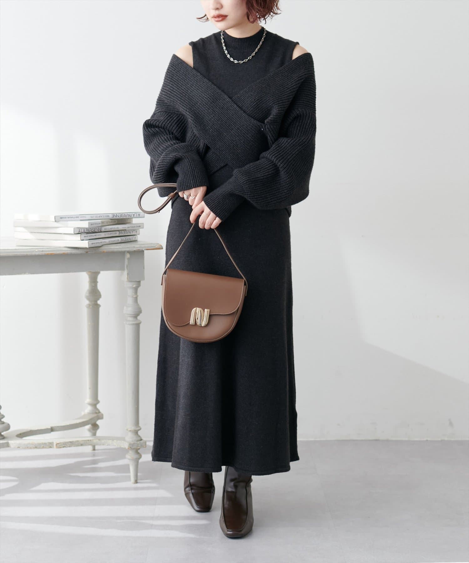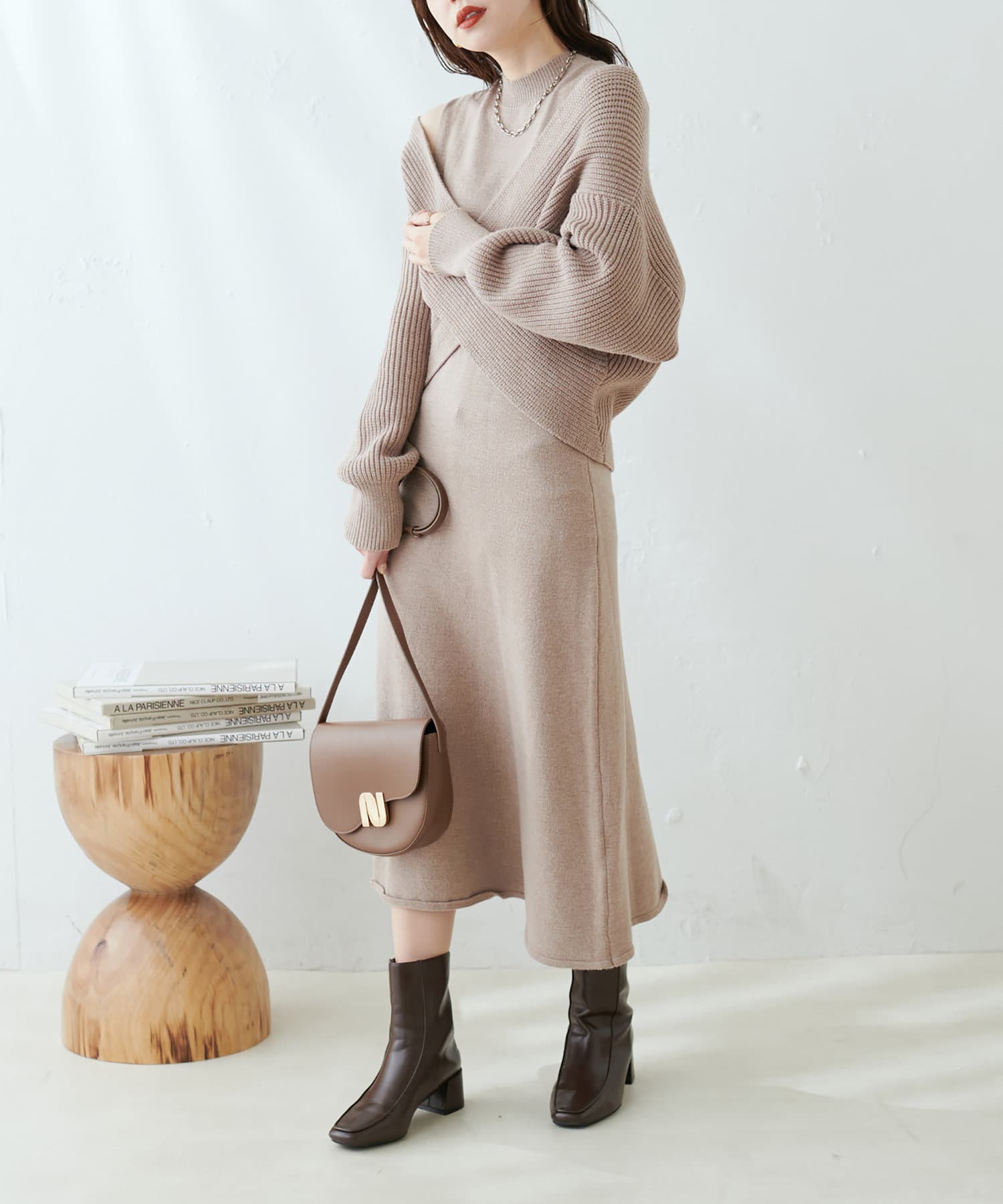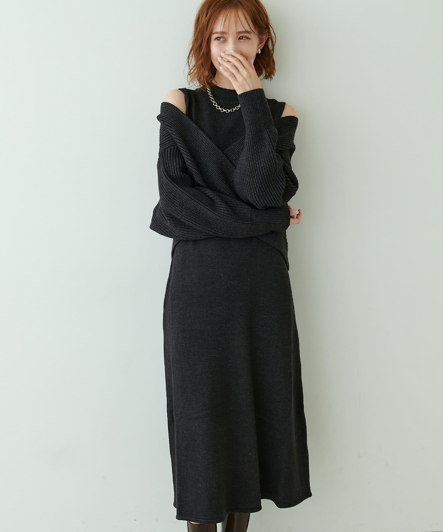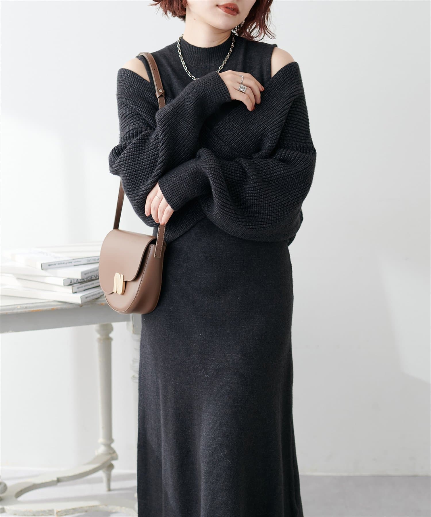 348720320 【WEB限定・大好評リバイバルアイテム】クロスニット+ノースリワンピースセット