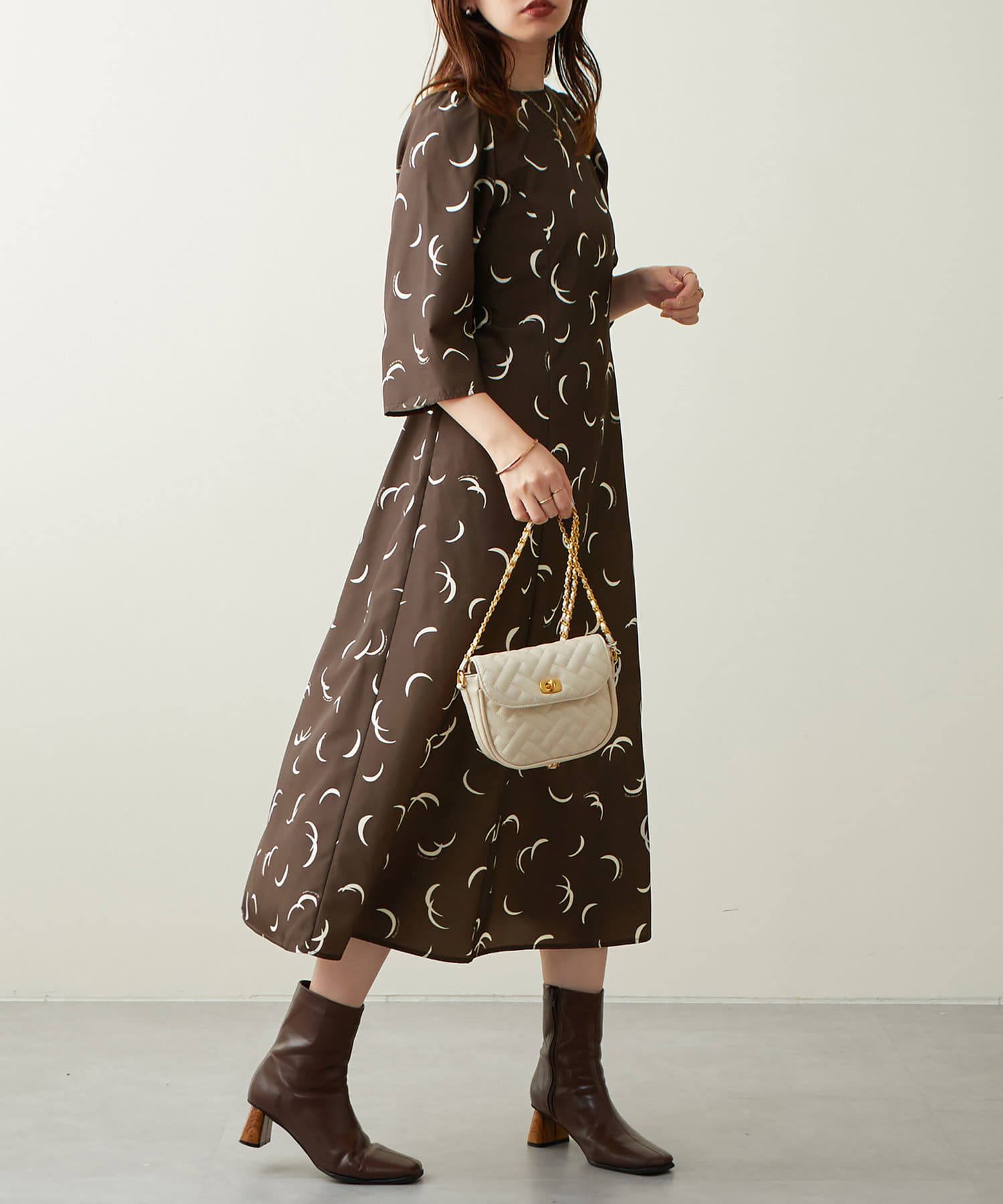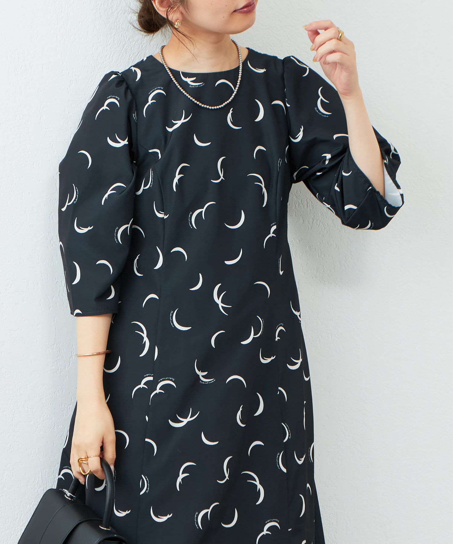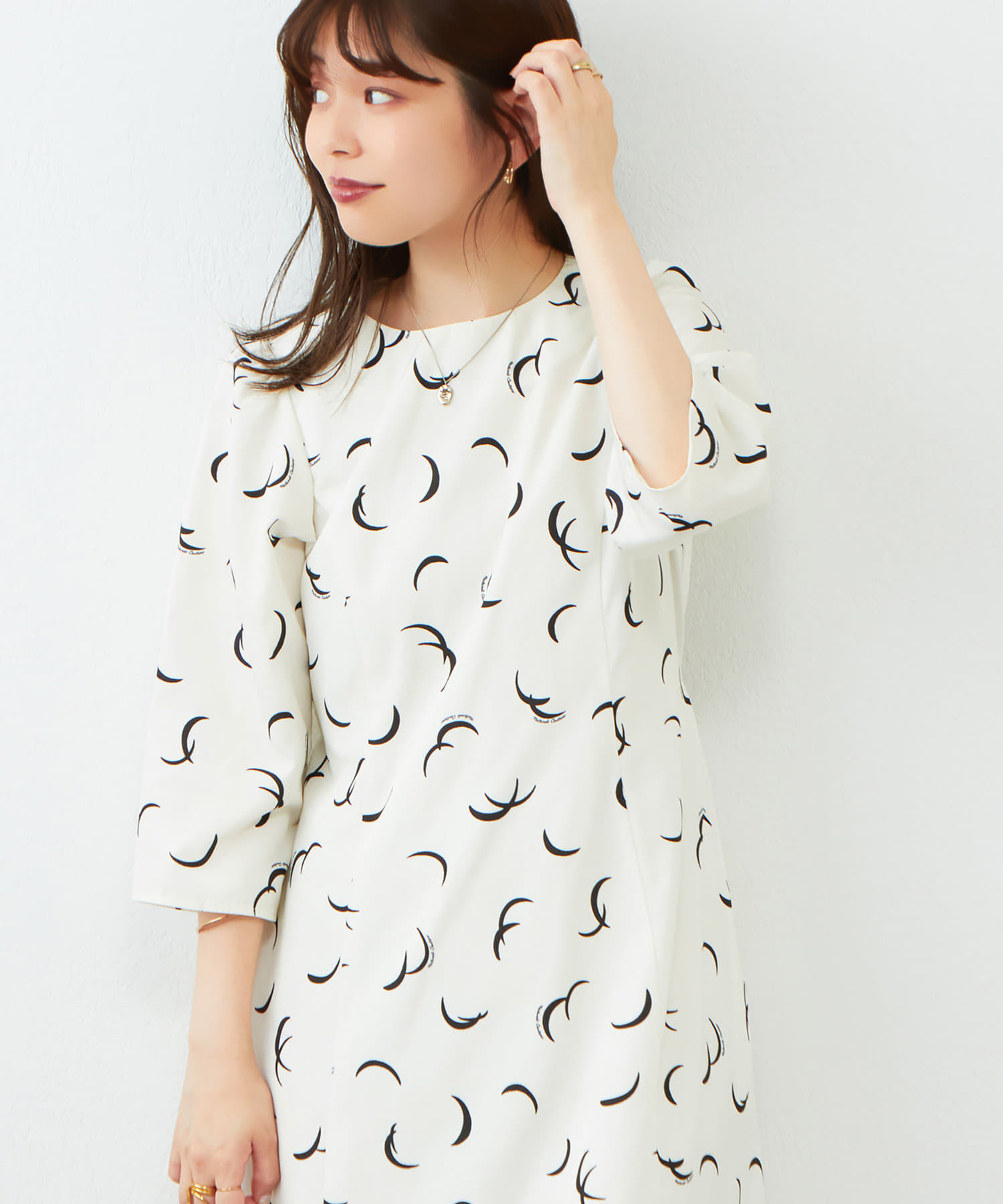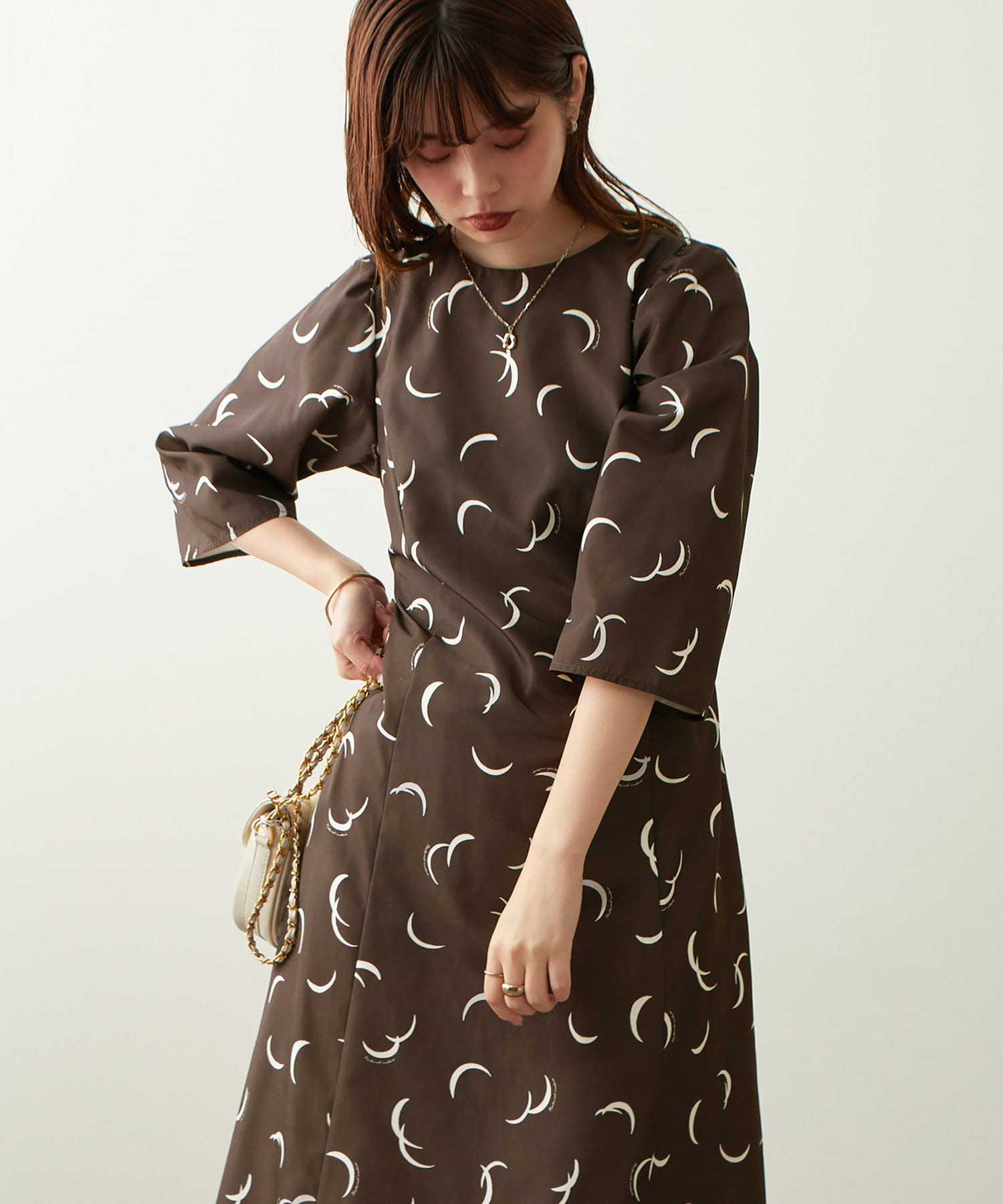 2022AWアイテム/オリジナル三日月柄Aラインワンピース