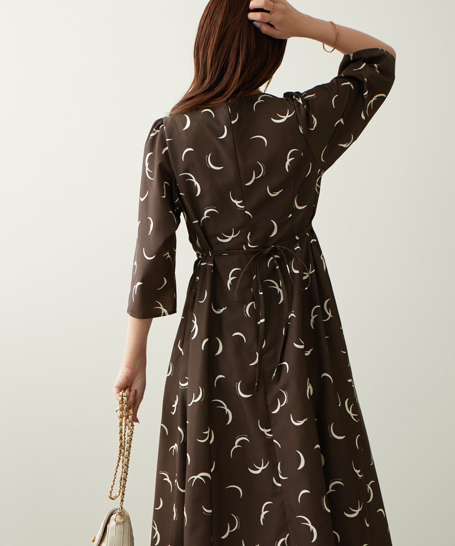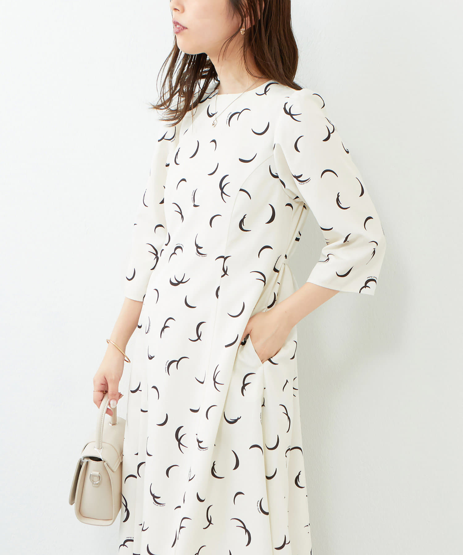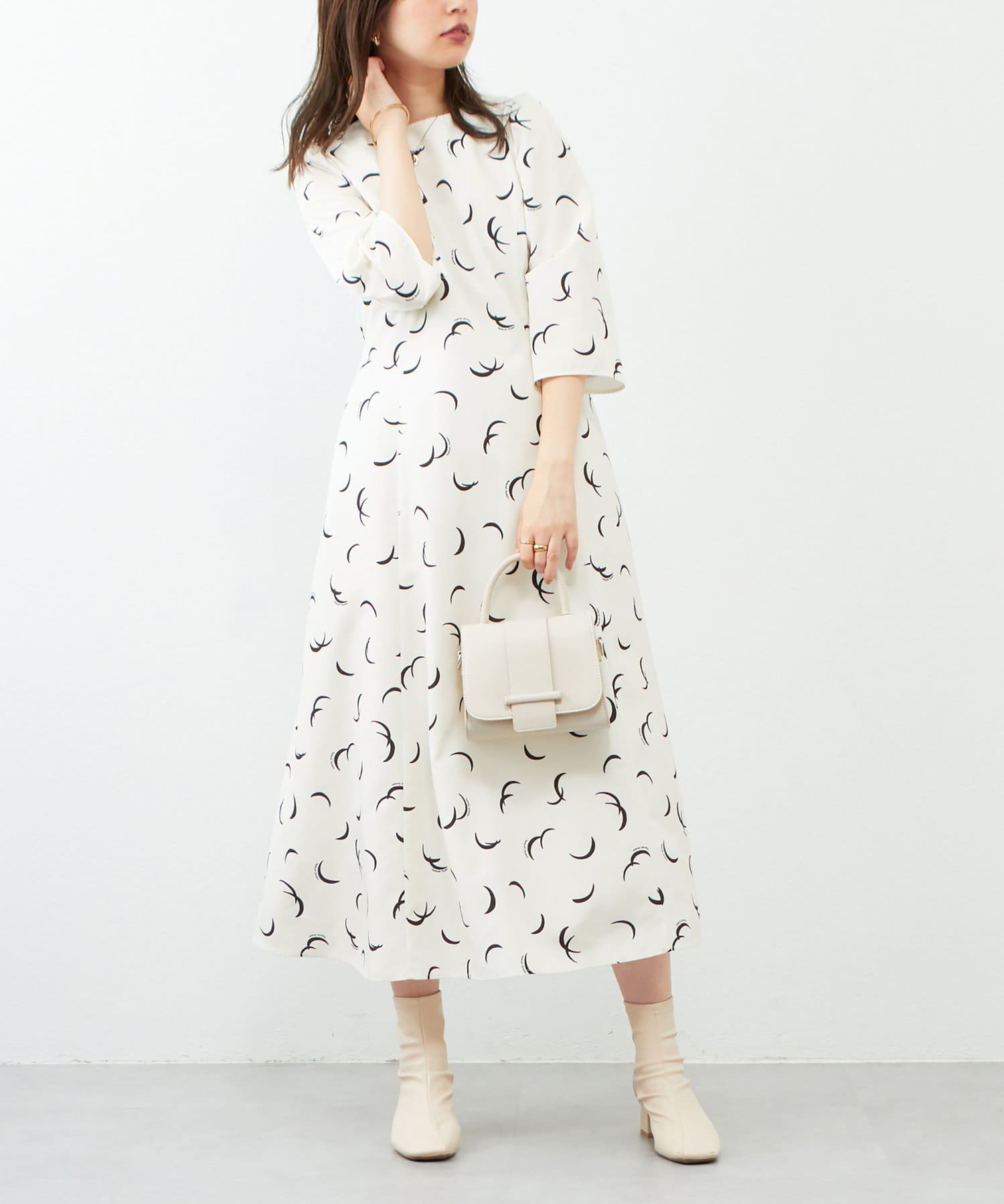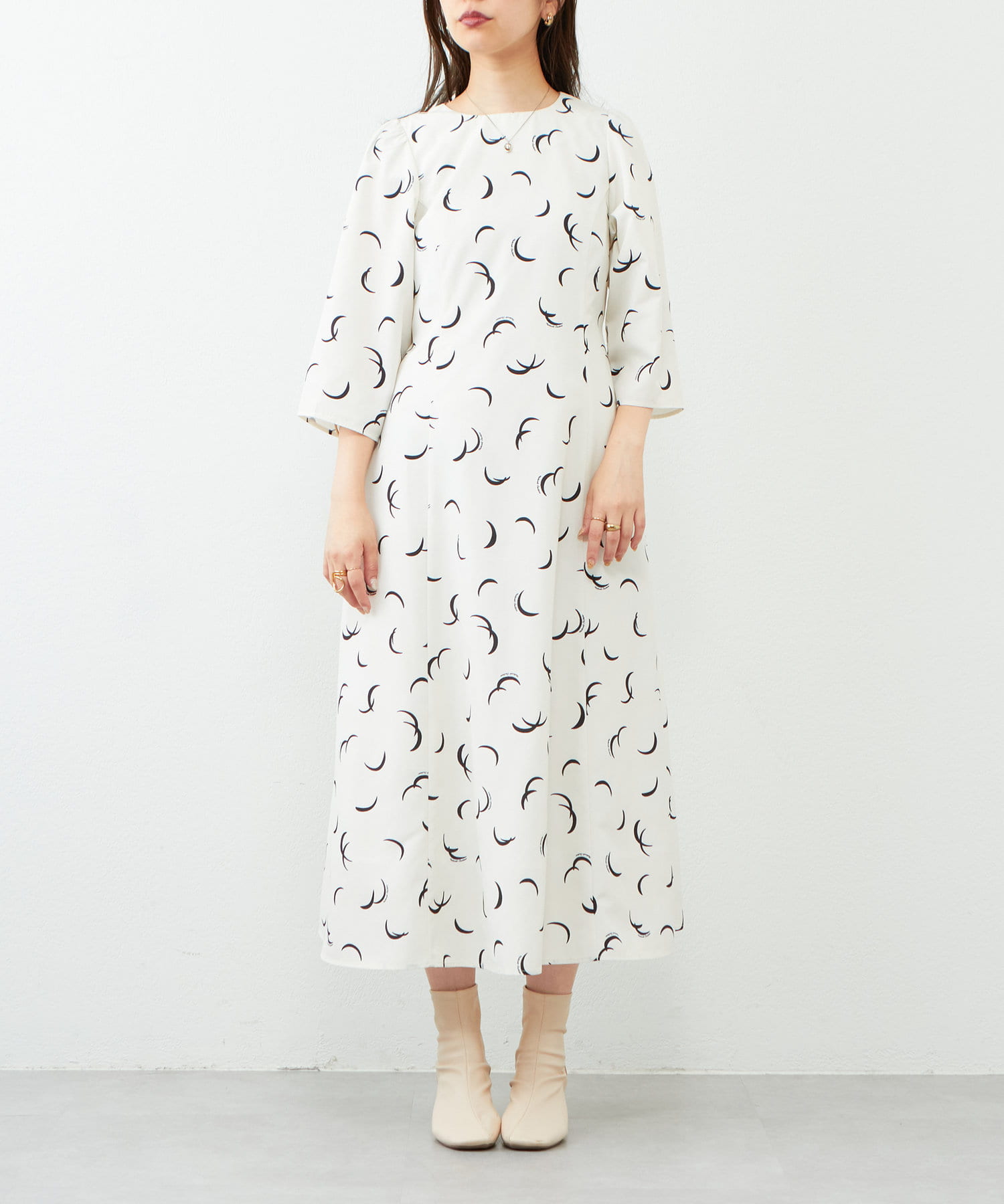 2022AWアイテム/オリジナル三日月柄Aラインワンピース