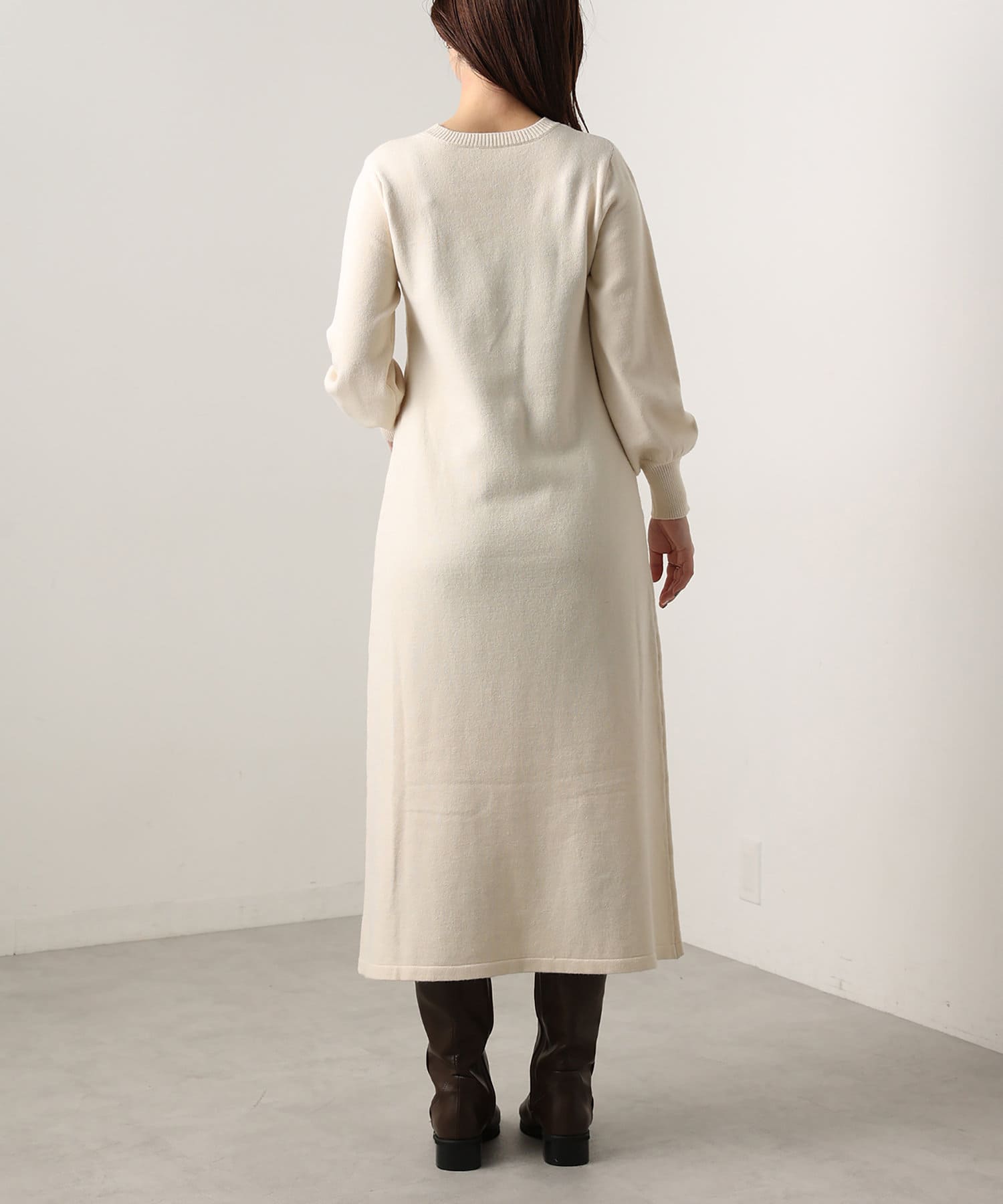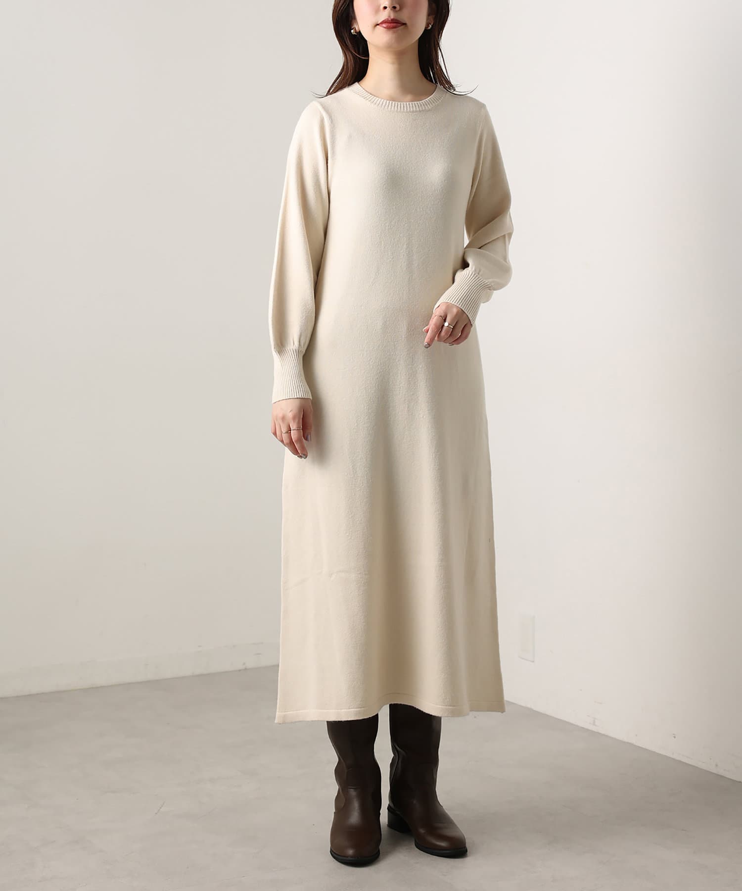 裾にかけて柔らかなシルエットが女性らしさを引き立ててくれるニットワンピースは、