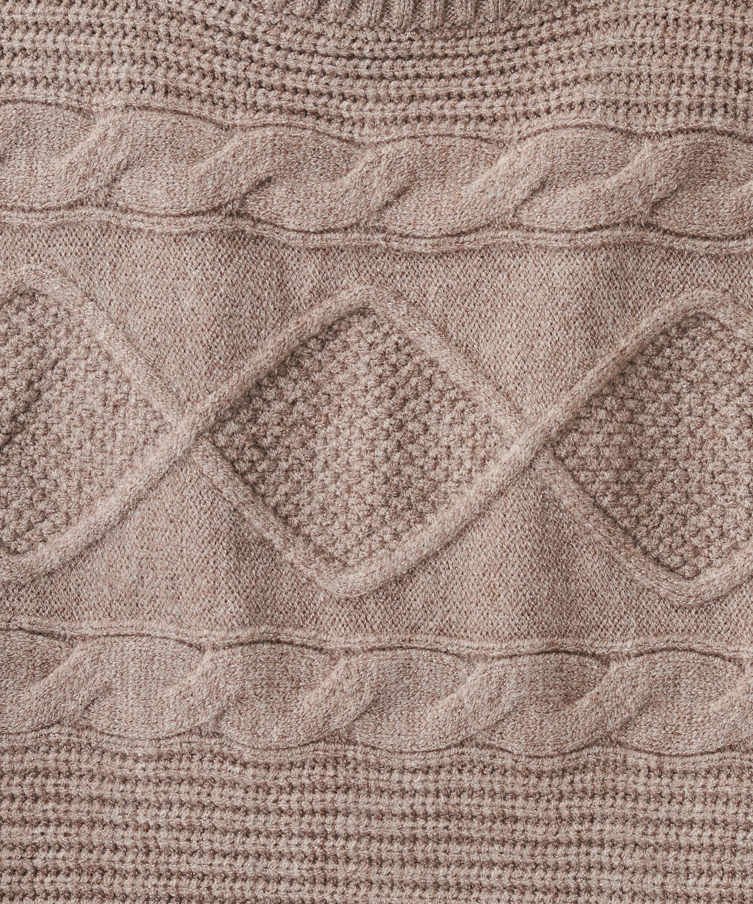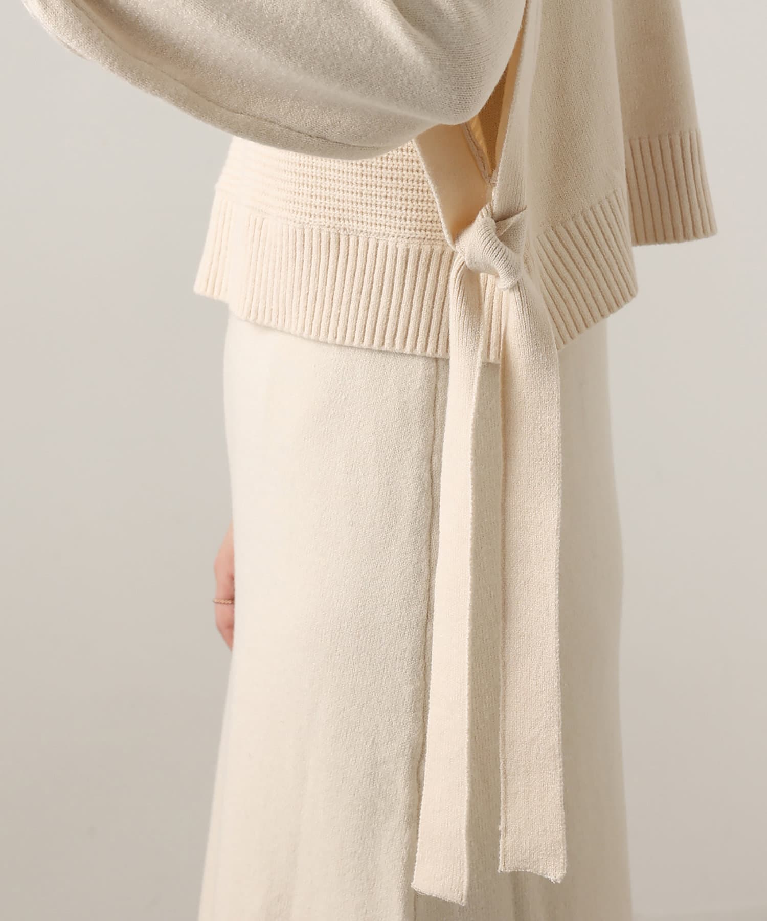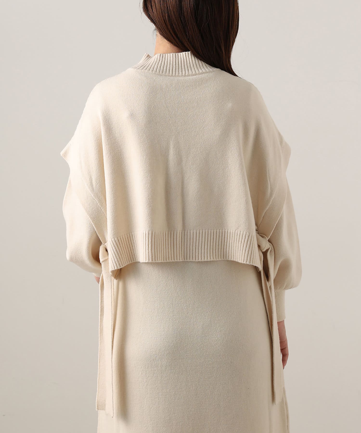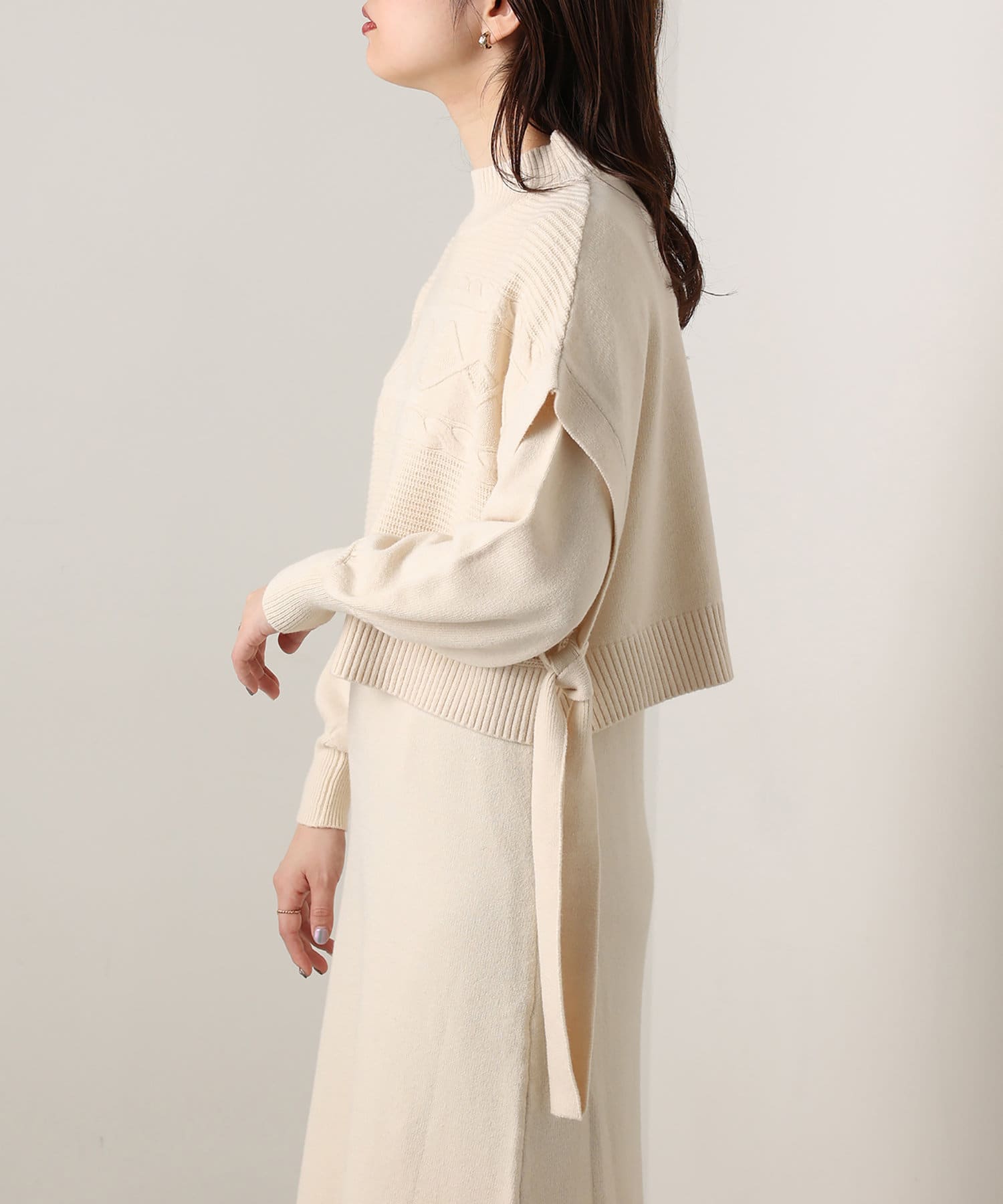 ケーブルニットベストは、脇の部分をお好みで結んで頂くとポイントに◎