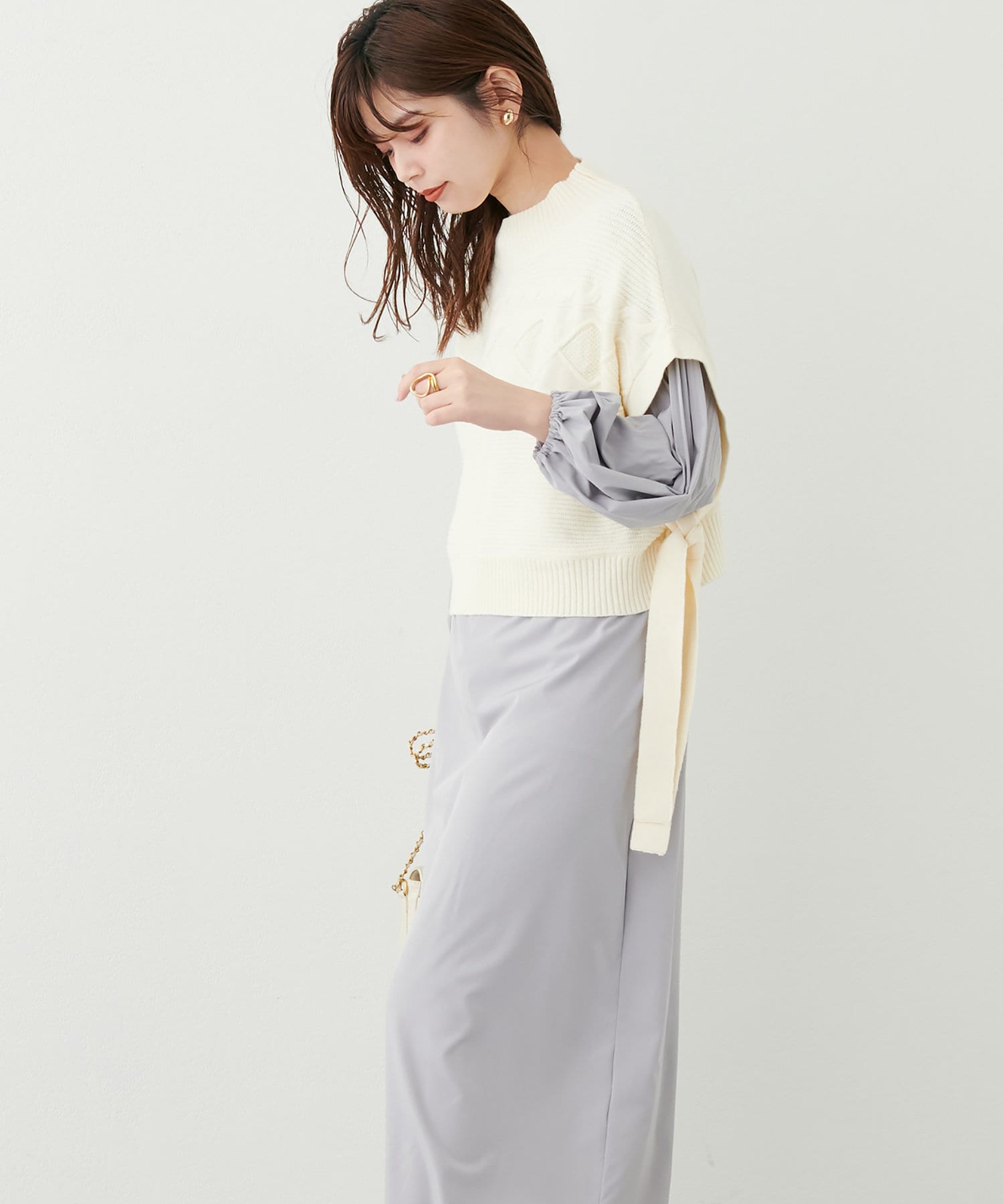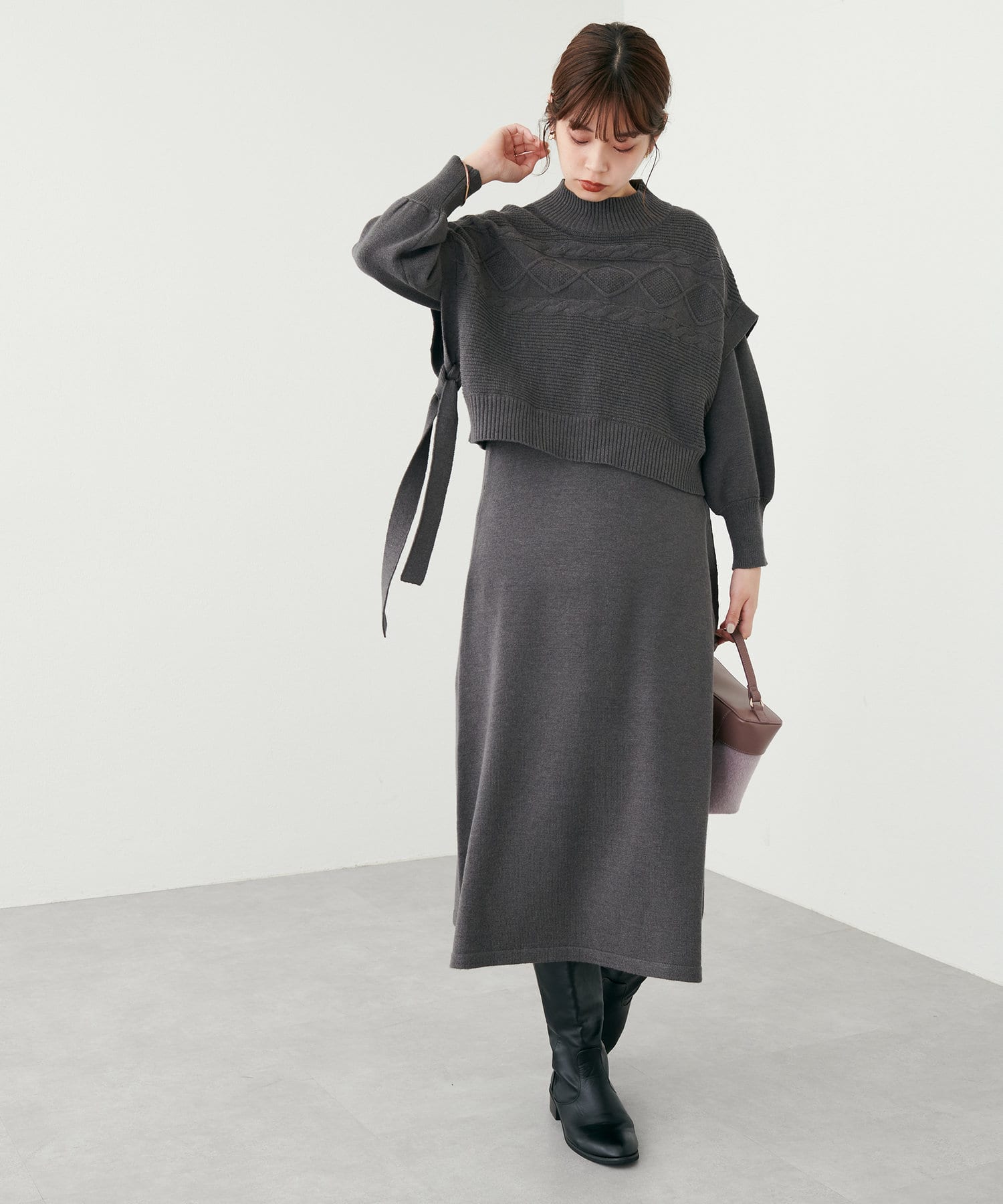 WEB限定/大人気リバイバル/ケーブルベスト×ニットワンピース