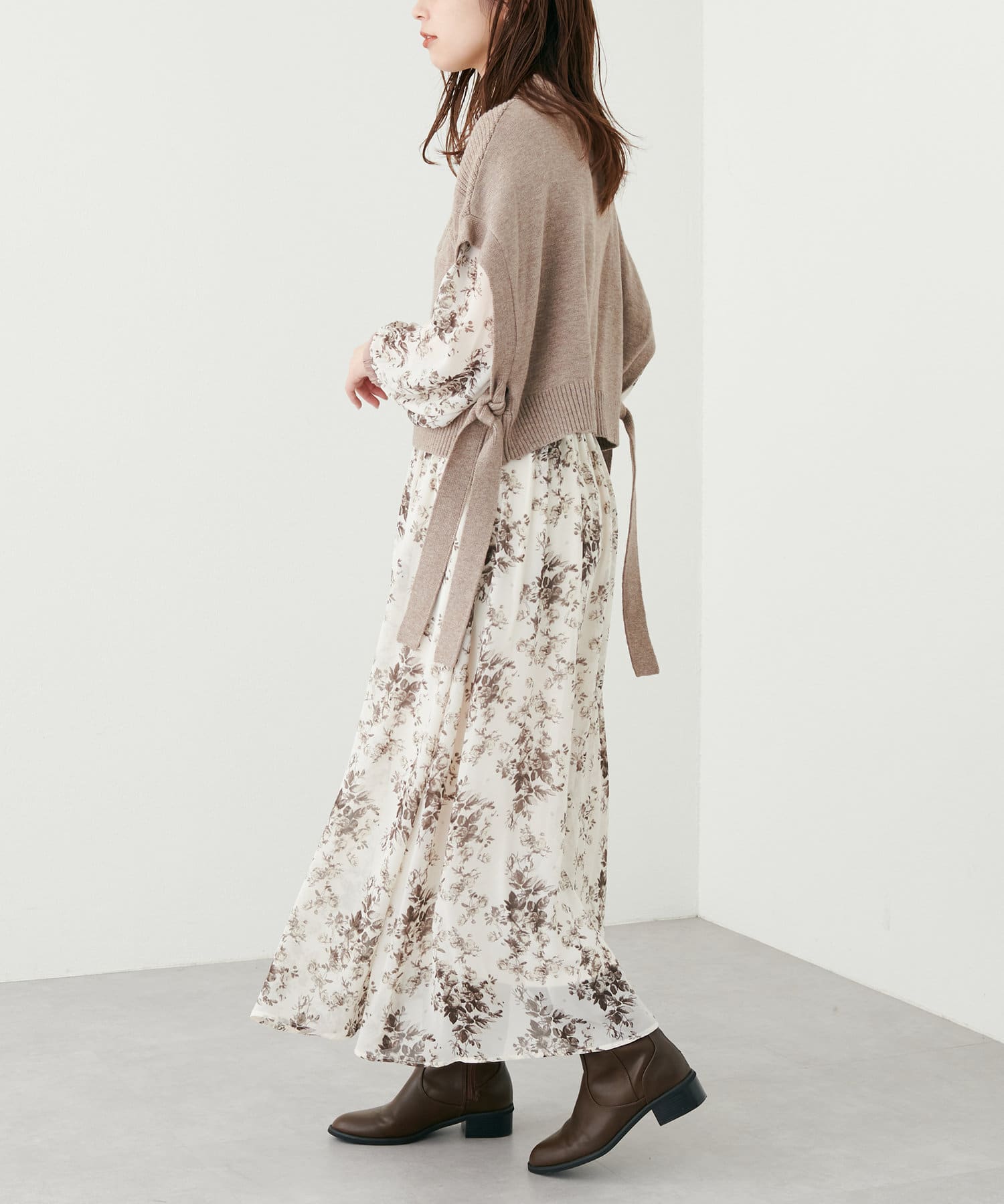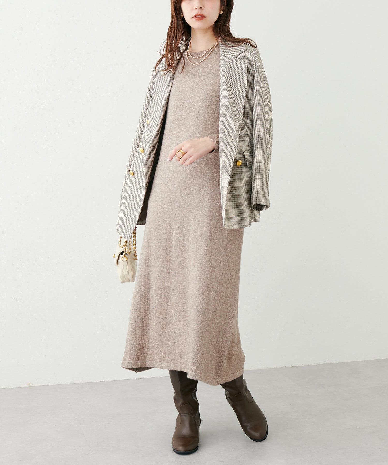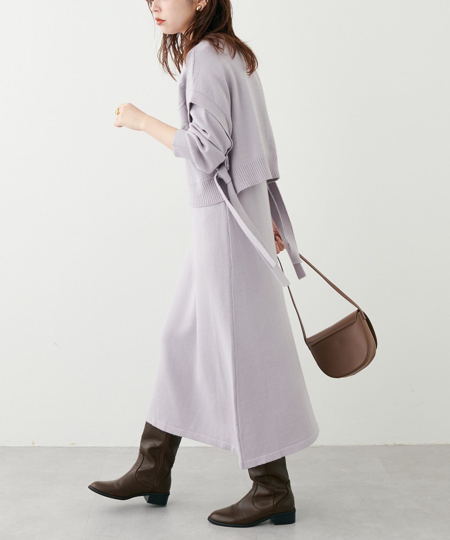 セットでの着用はもちろん、ニットワンピースは単品で着て頂いても、