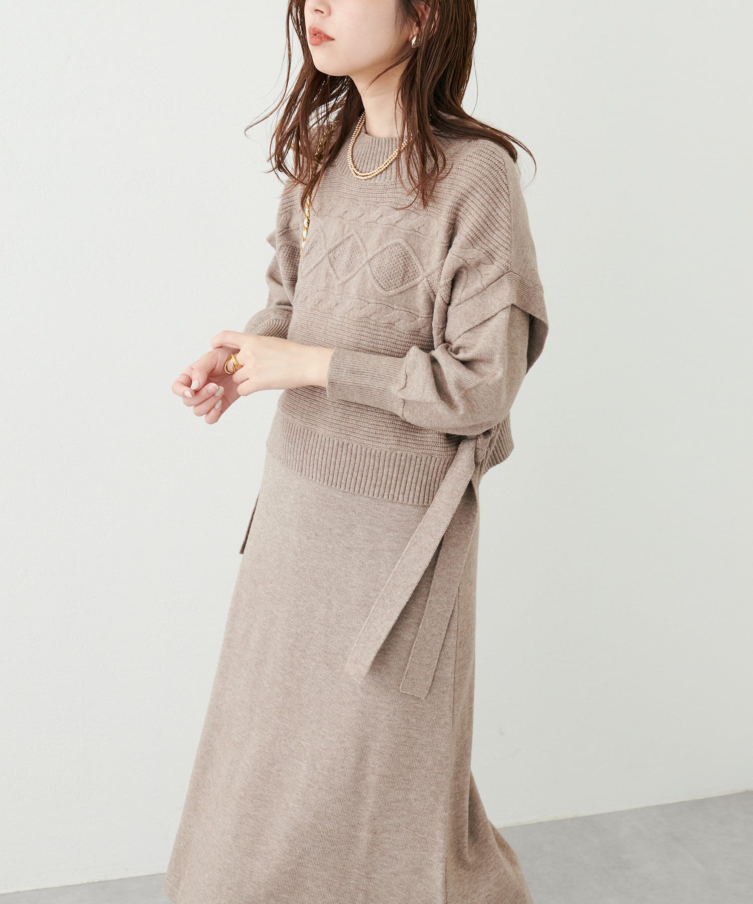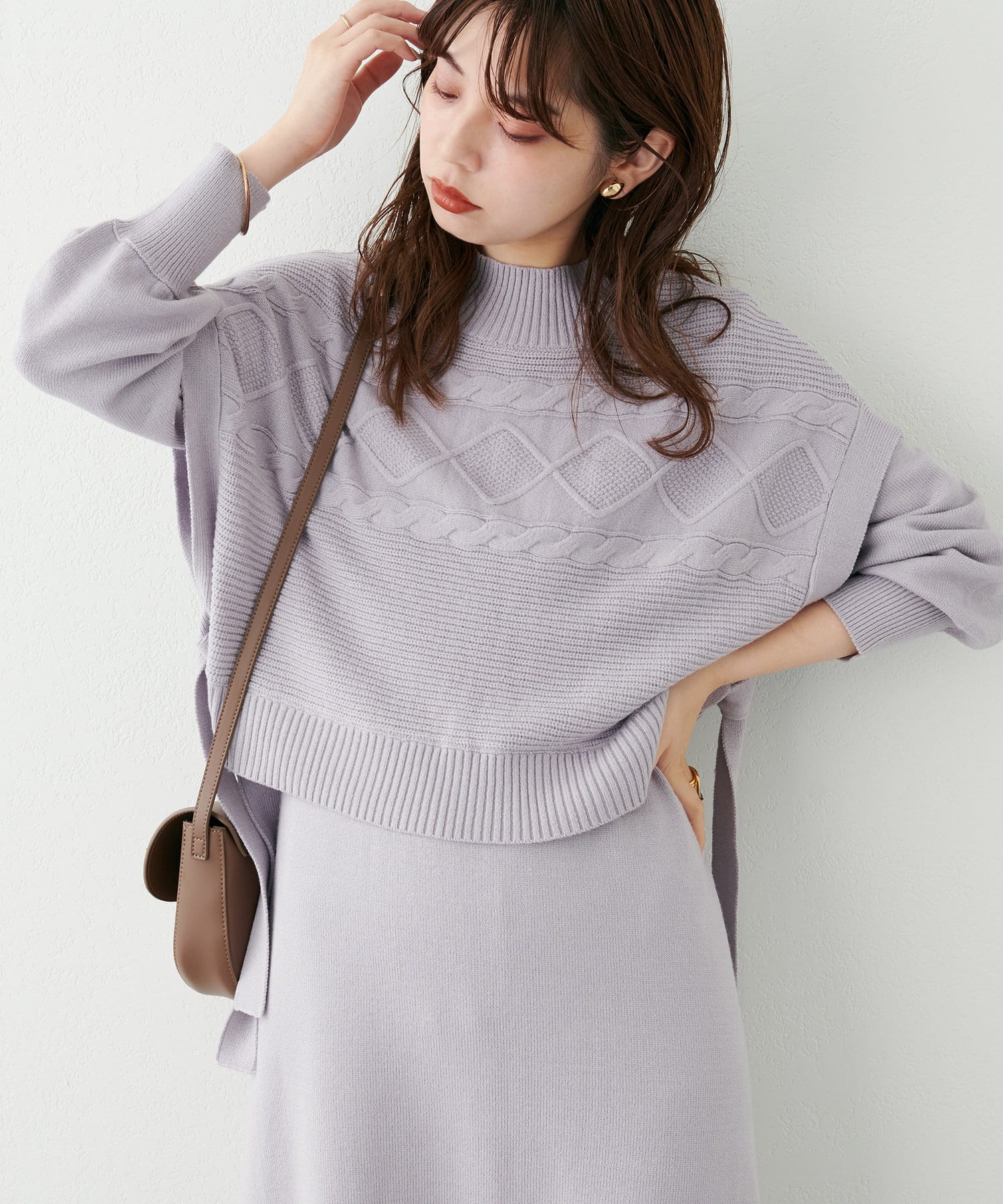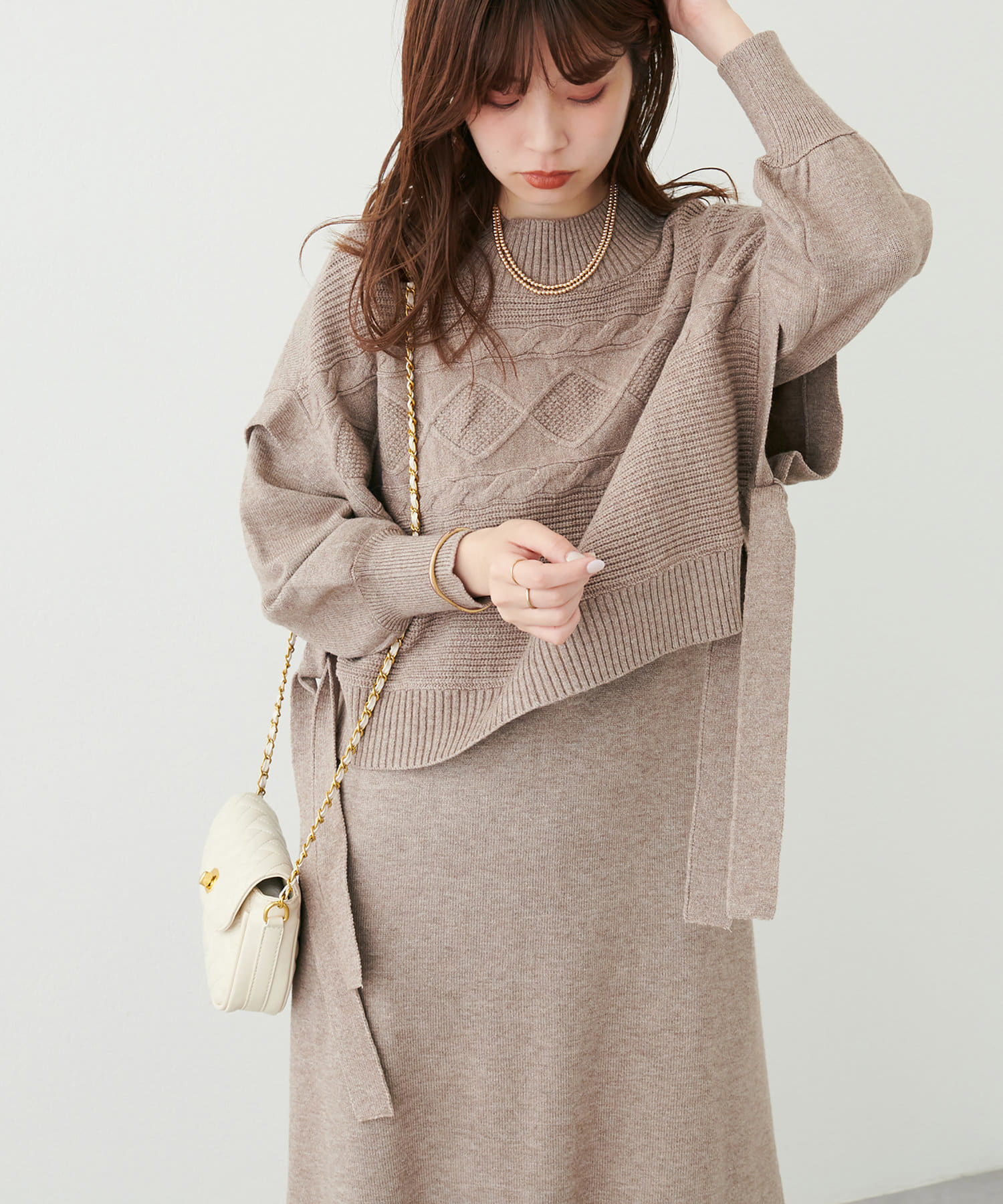 • natural couture(ナチュラルクチュール) WEB限定/大人気リバイバル/ケーブルベスト×ニットワンピース