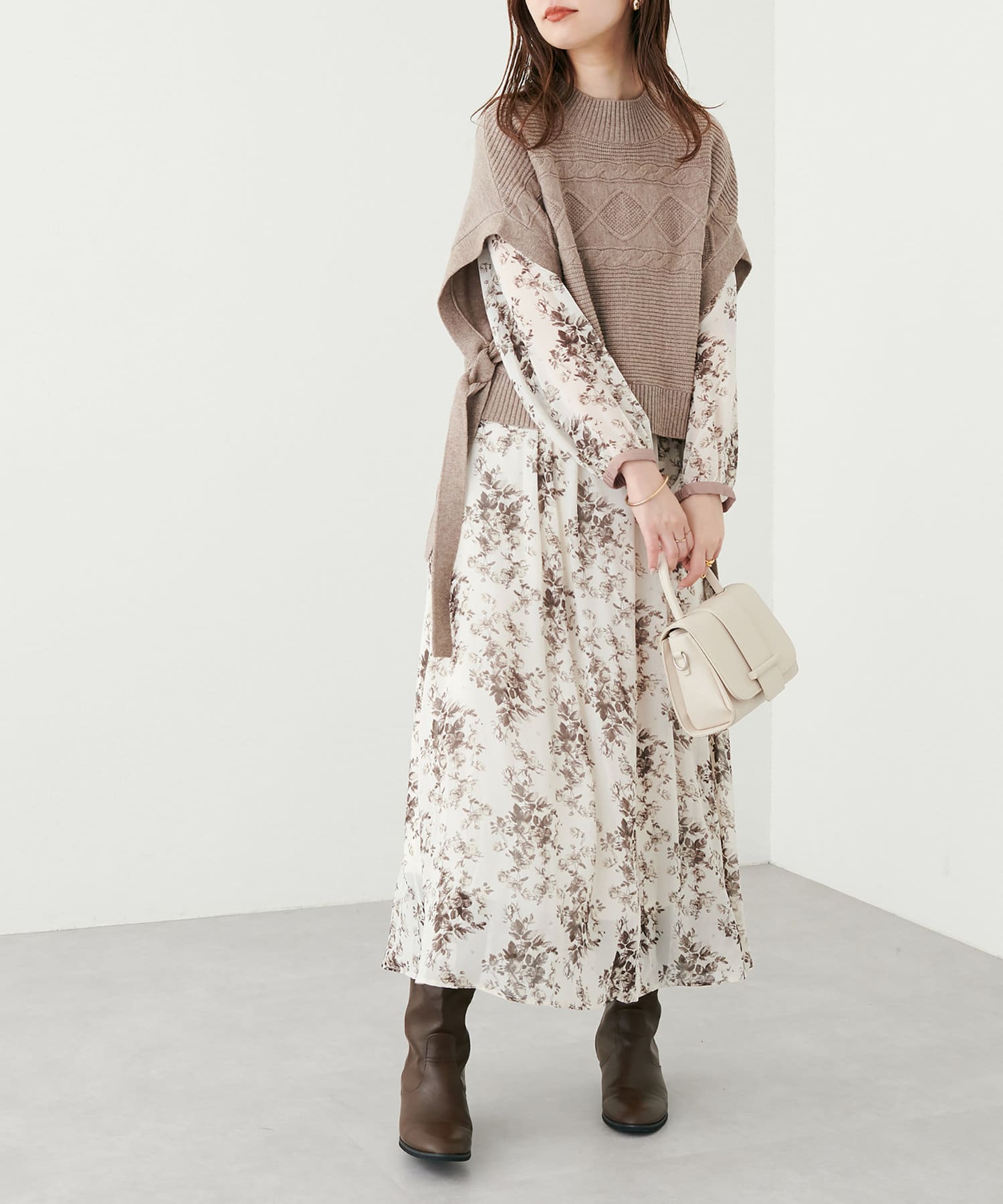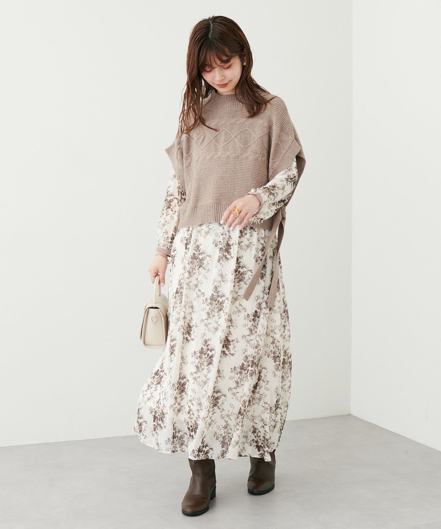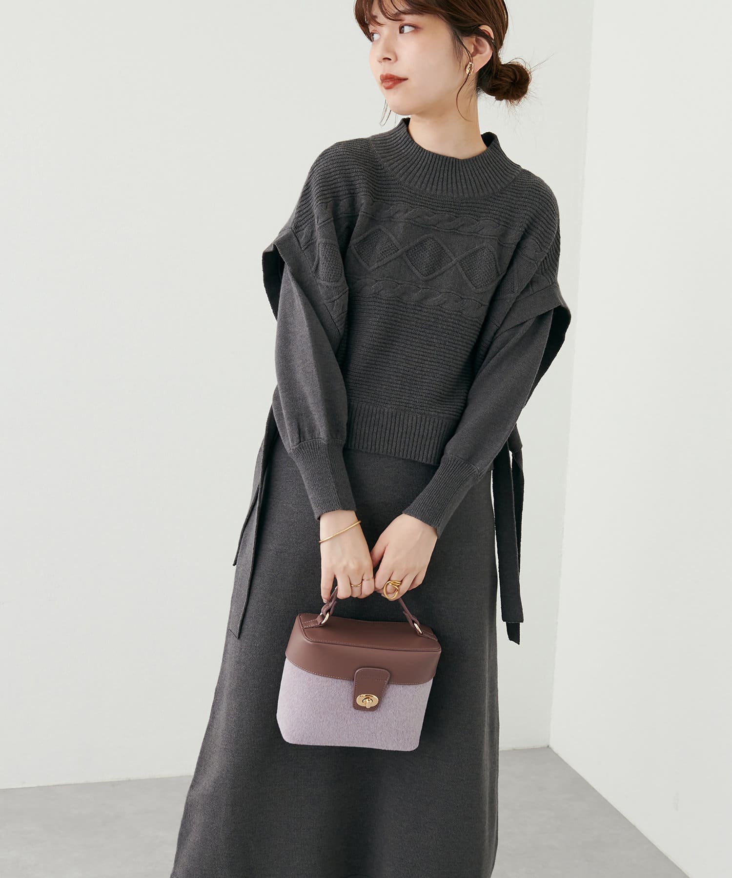 • natural couture(ナチュラルクチュール) WEB限定/大人気リバイバル/ケーブルベスト×ニットワンピース