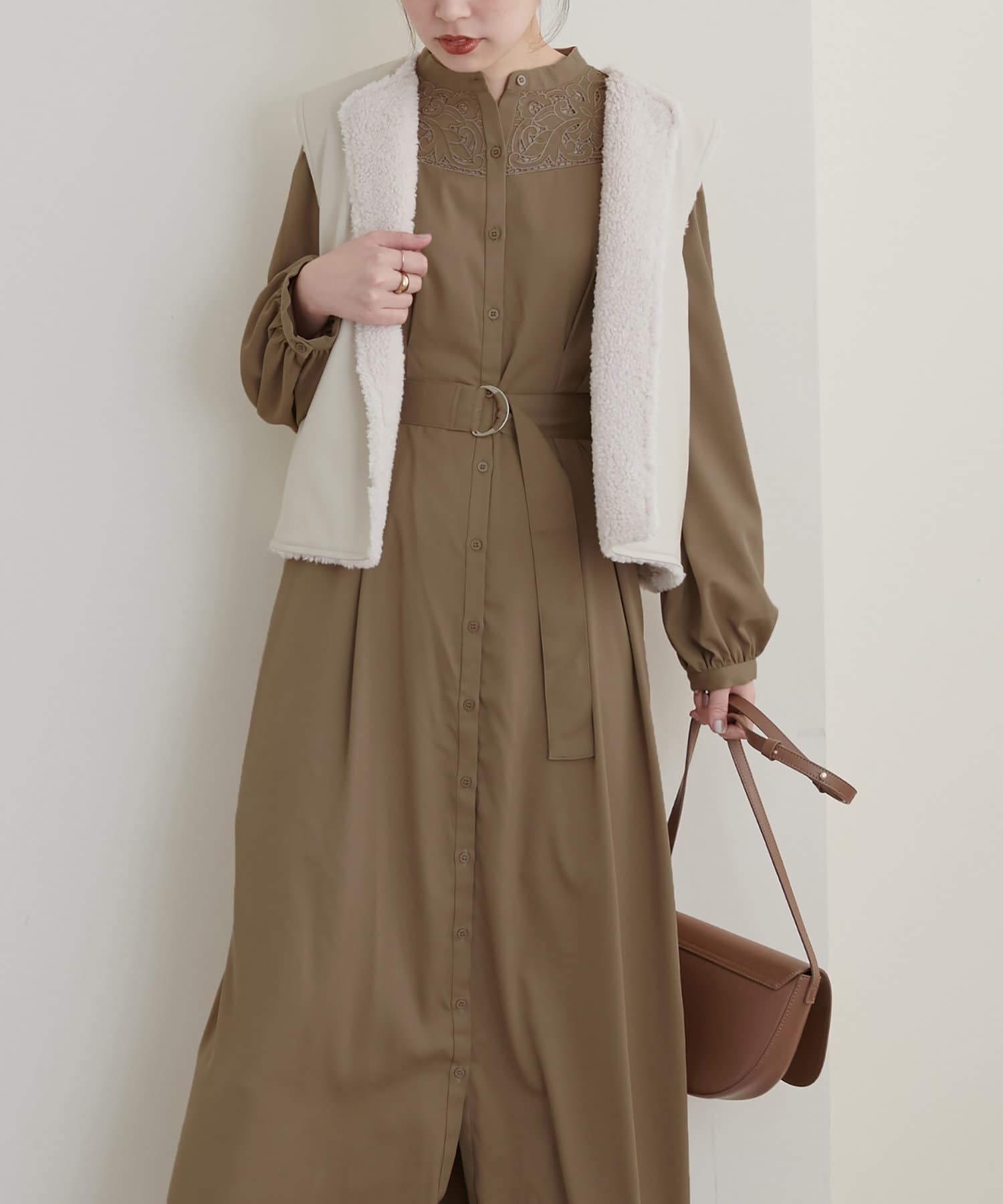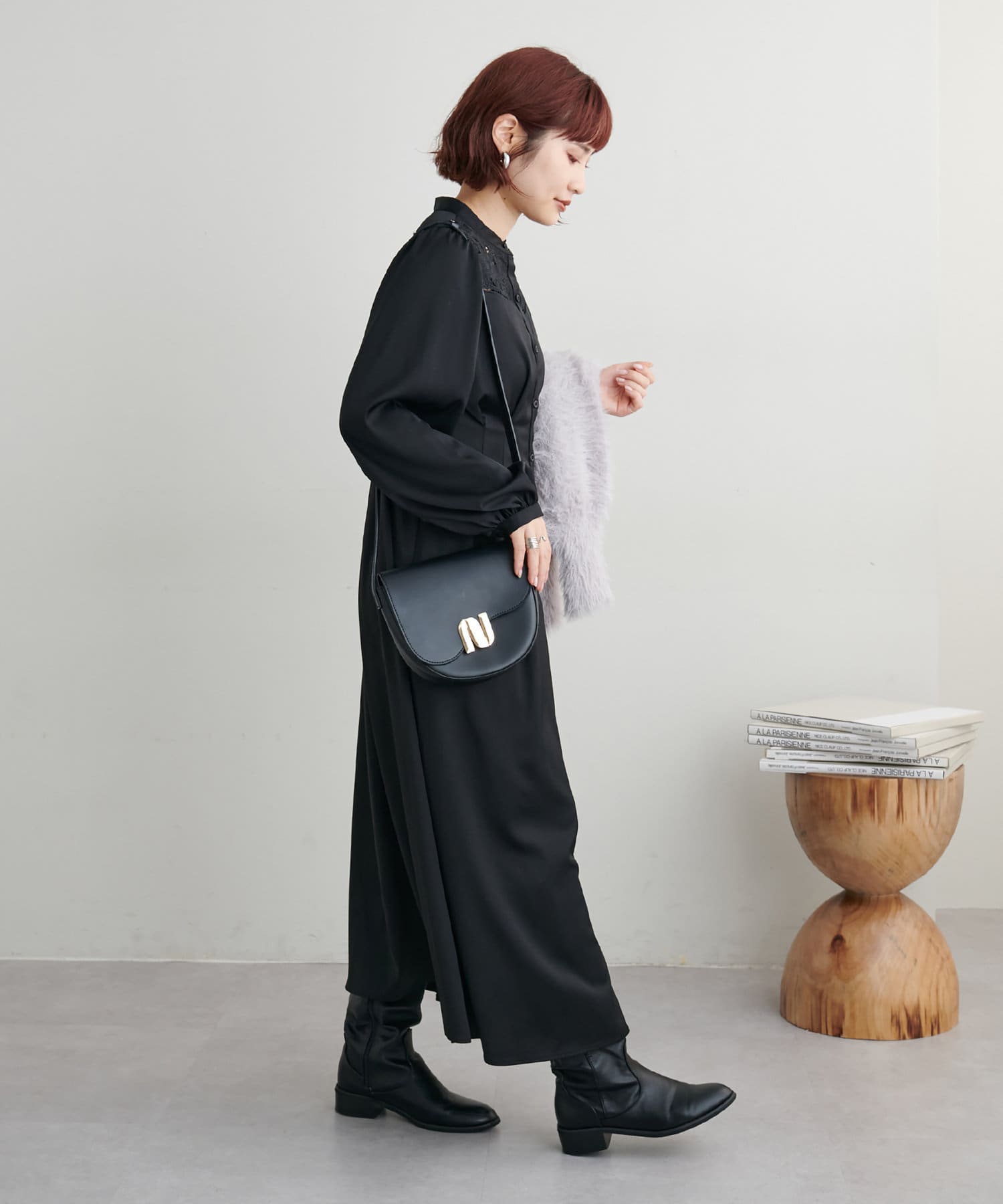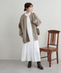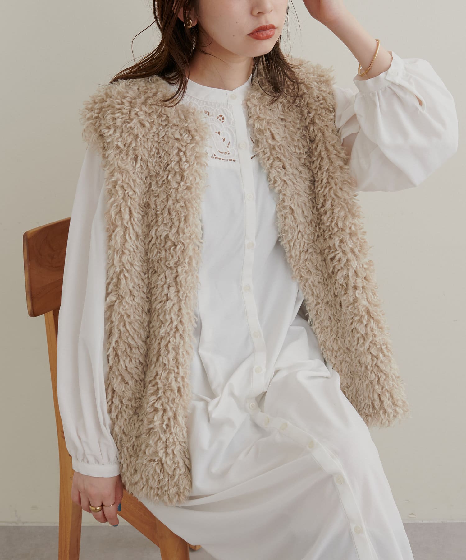 お好みでニットカーデやファーベスト、プルオーバーとのレイヤードスタイルでも異なる雰囲気を楽しんで頂けます。