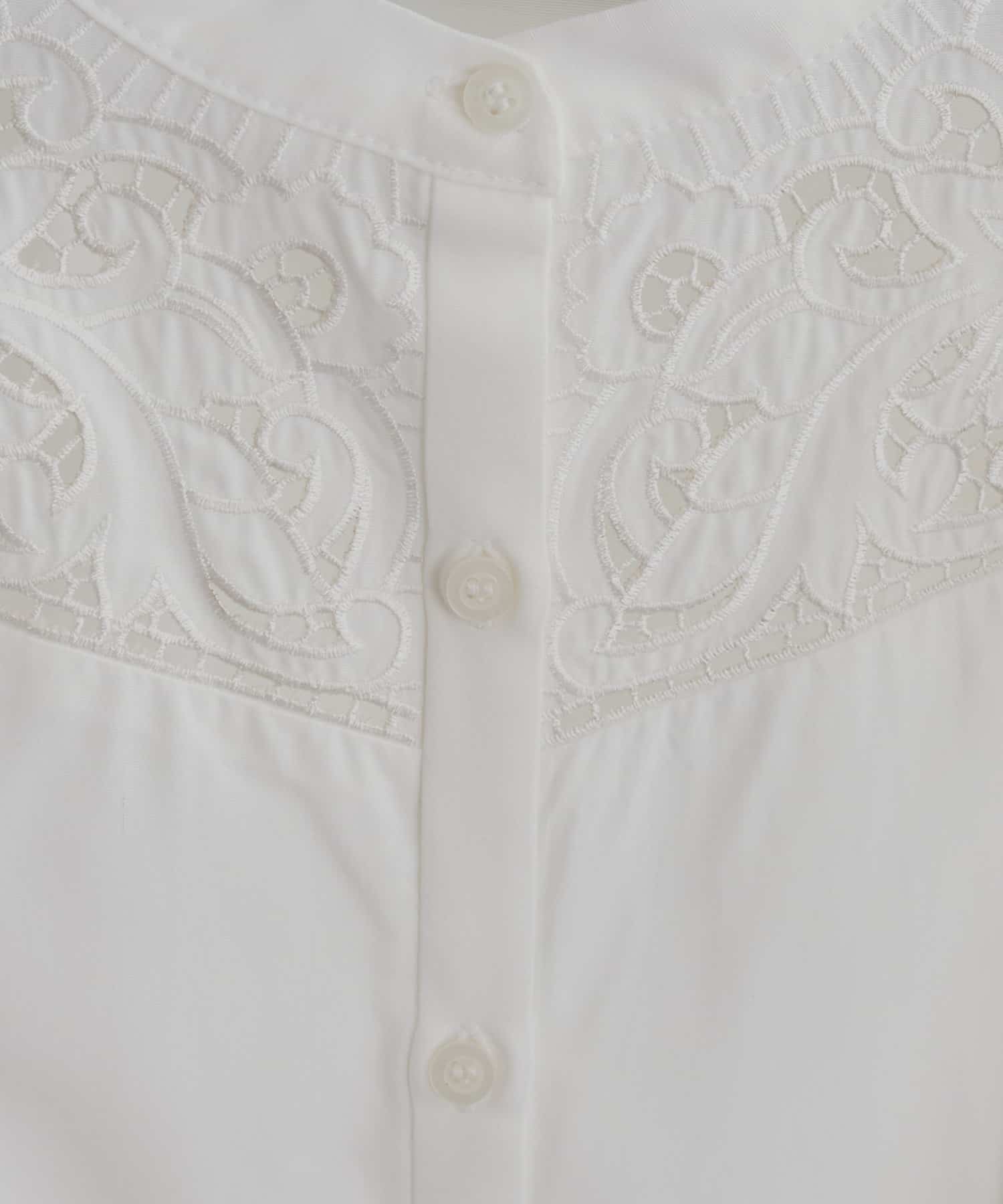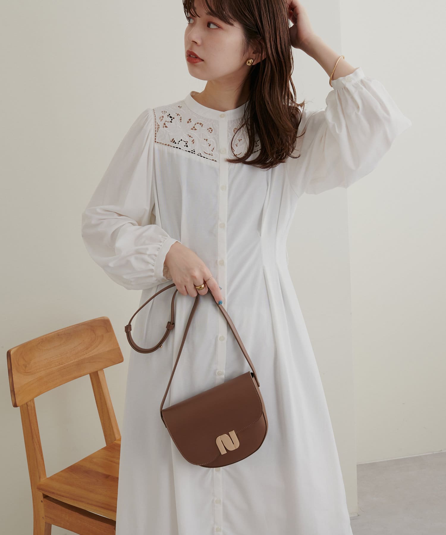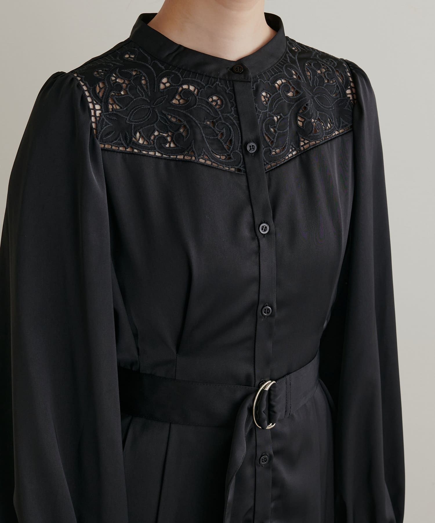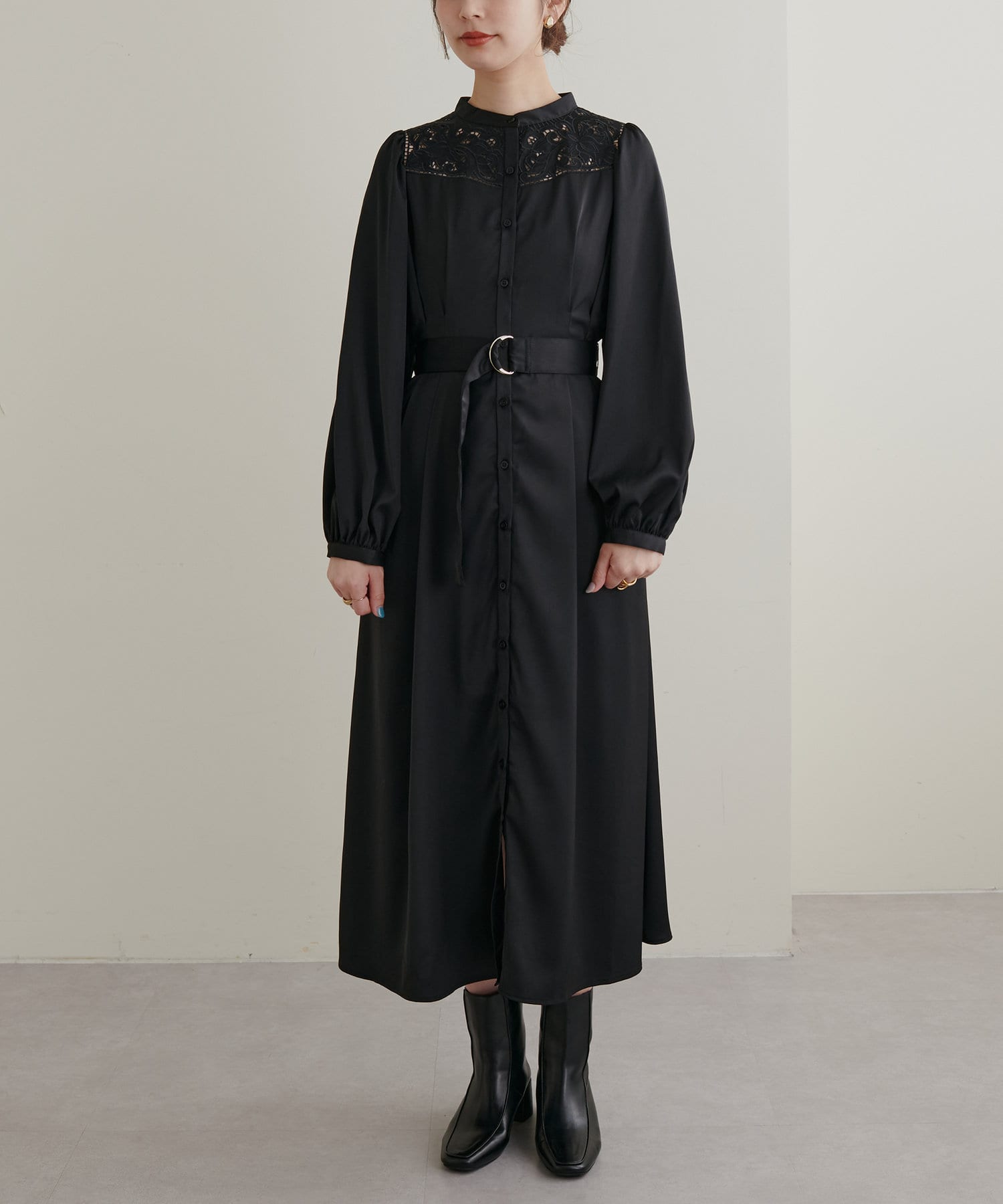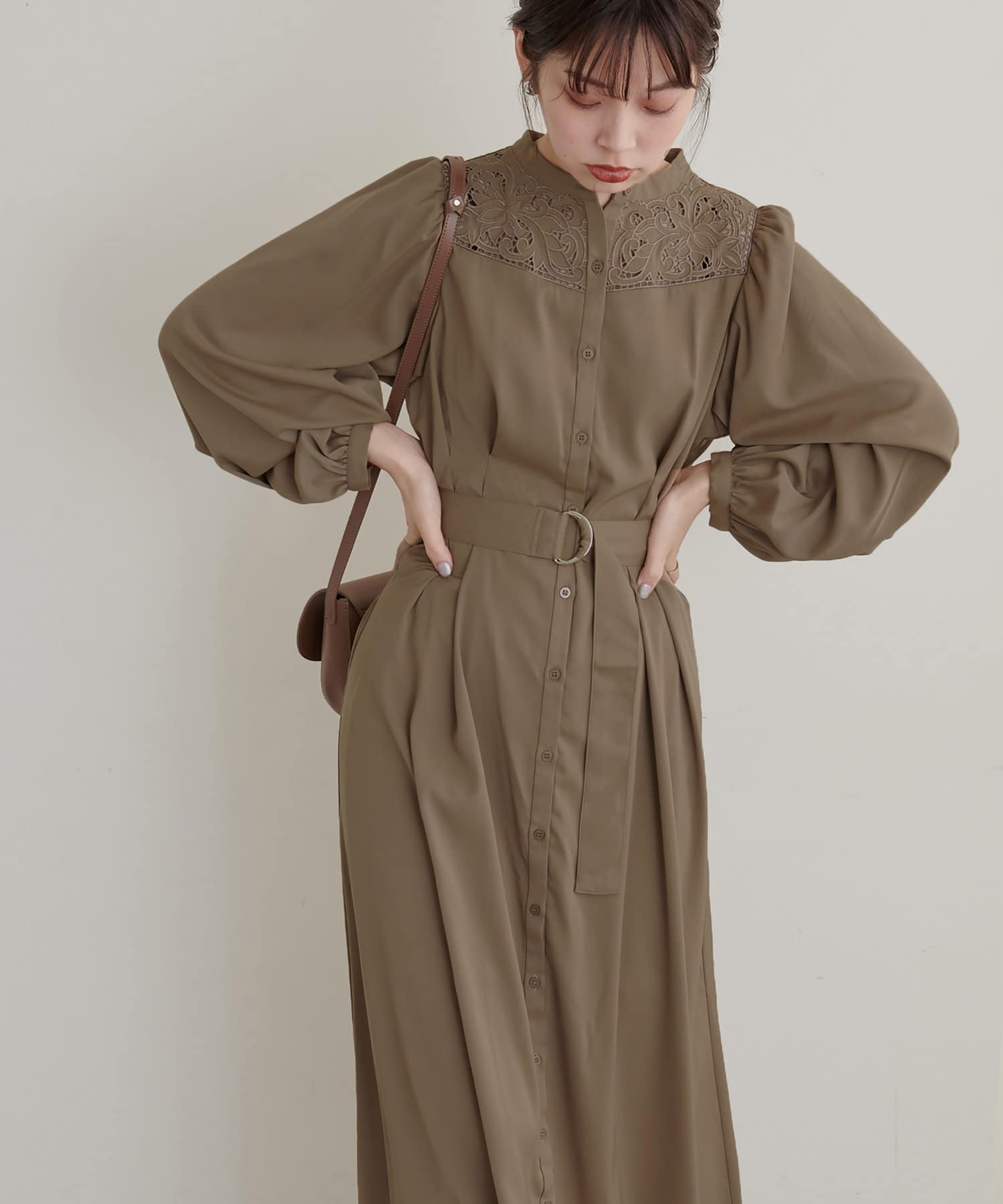 胸元のモチーフレースが上品さとビンテージ感溢れる、大人レディワンピース。