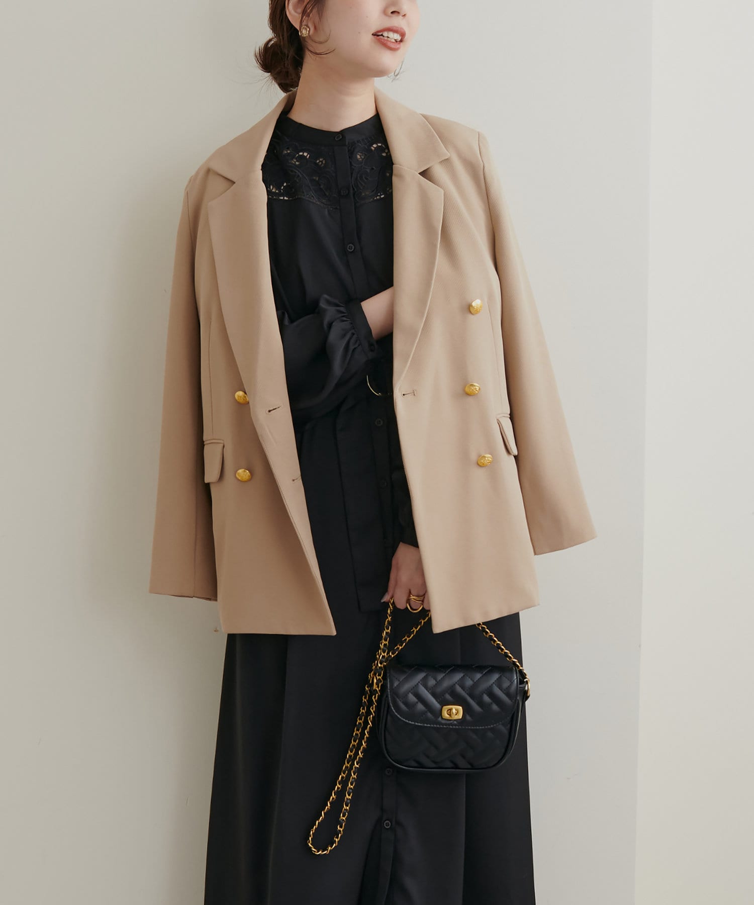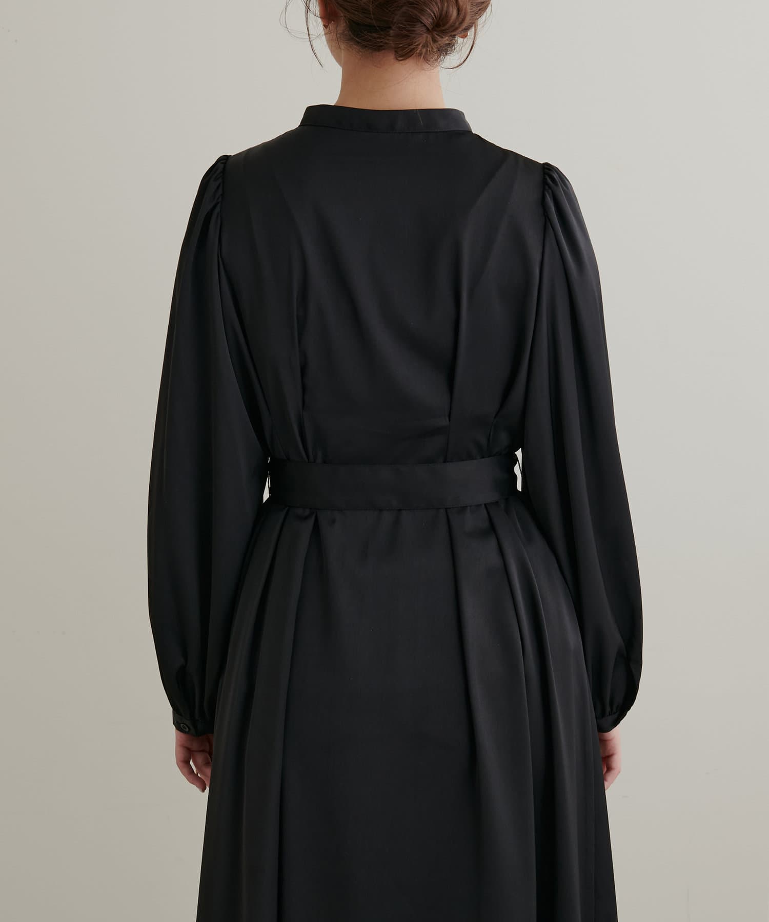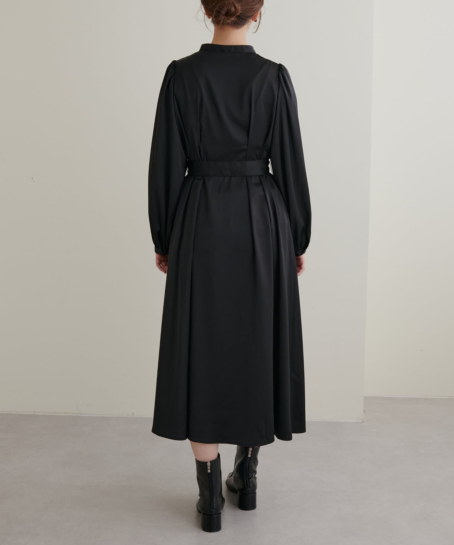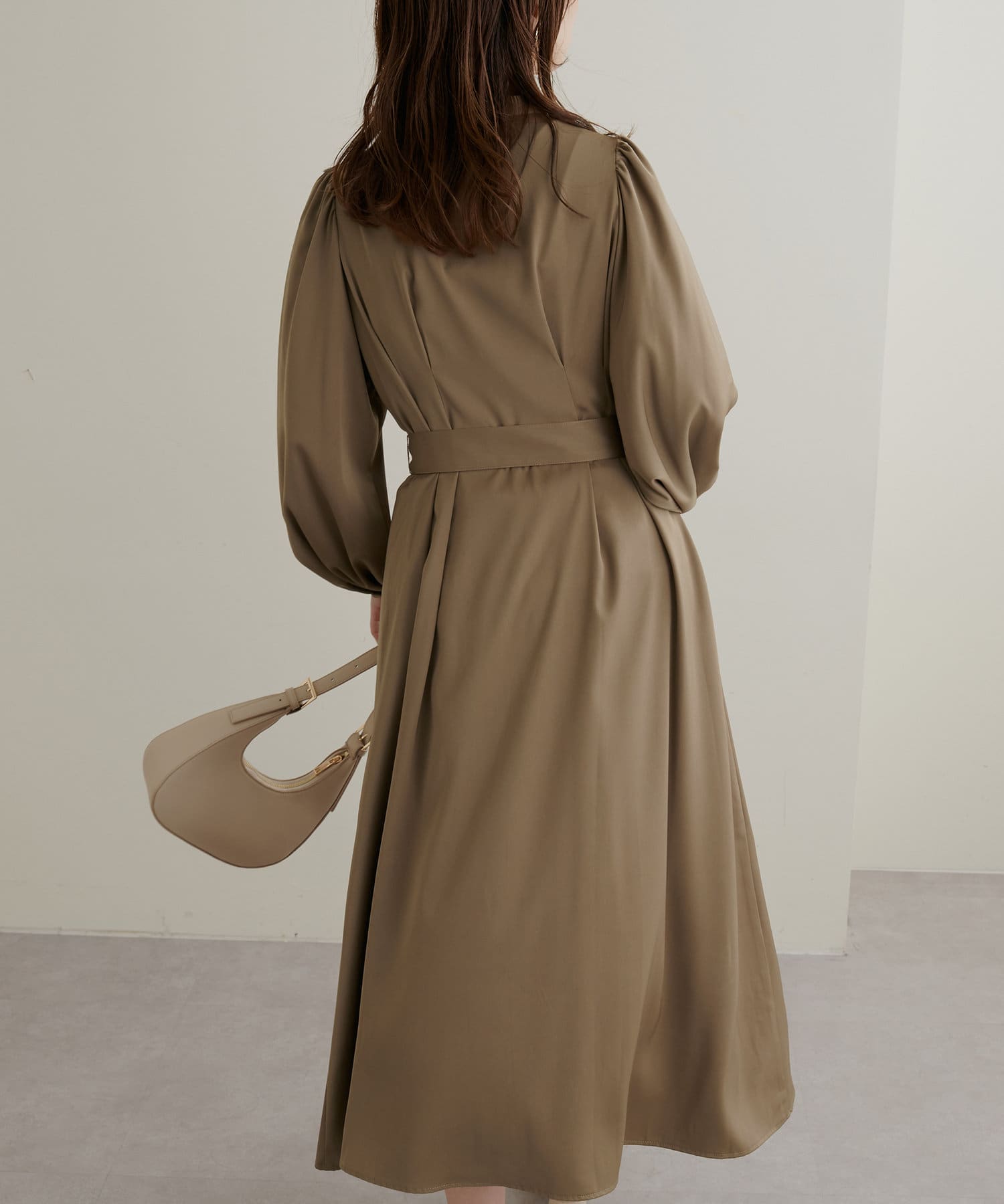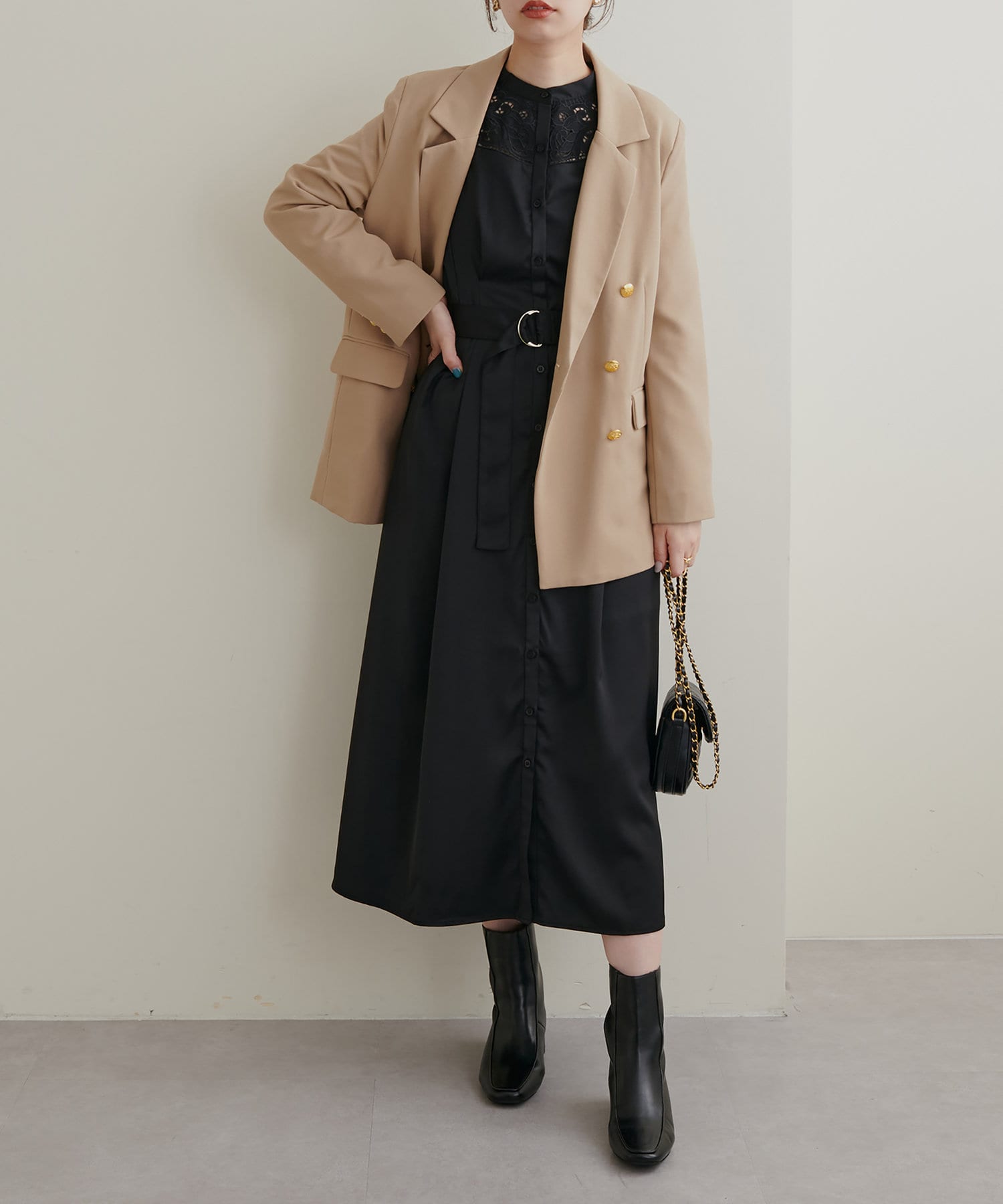 アームラインのディテールや美しいウエストライン、やや身体に沿ったシルエットがスタイルアップ効果の期待できる1着。