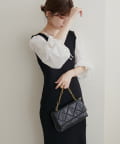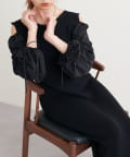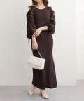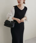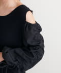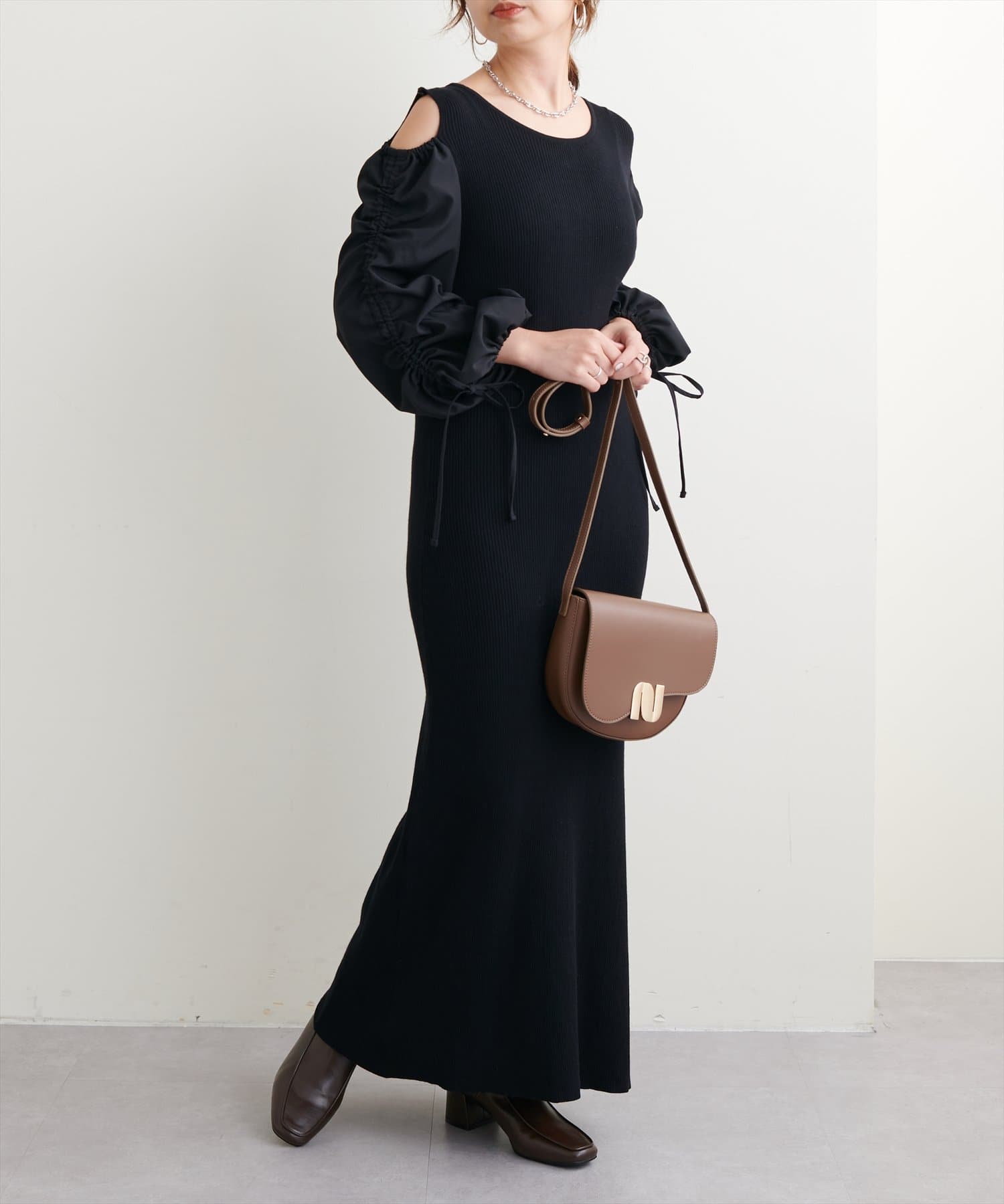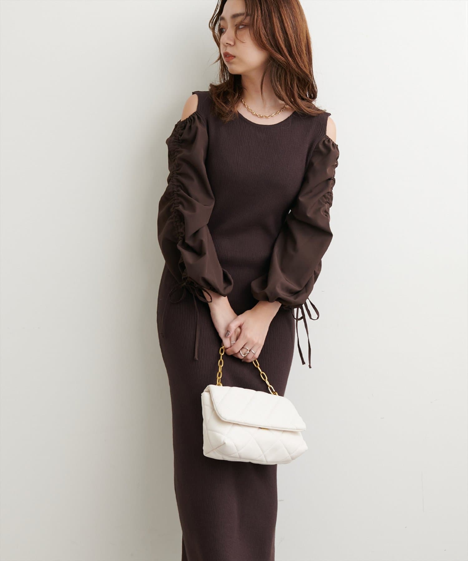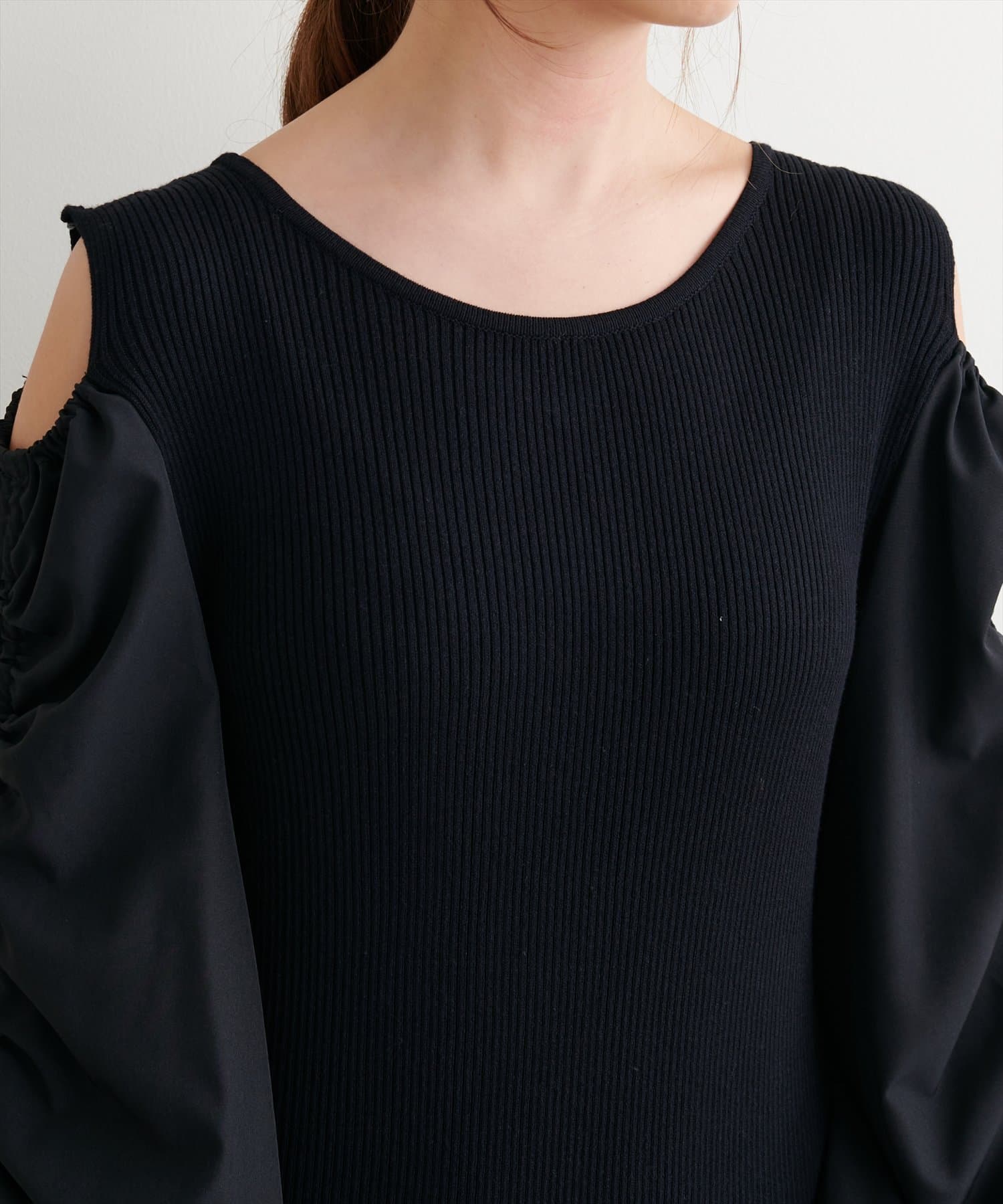 リブニットと異素材を使用した袖のデザインがポイントになっています。
