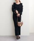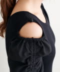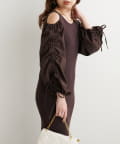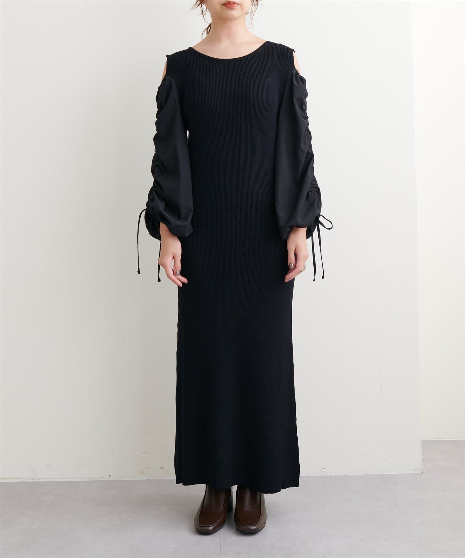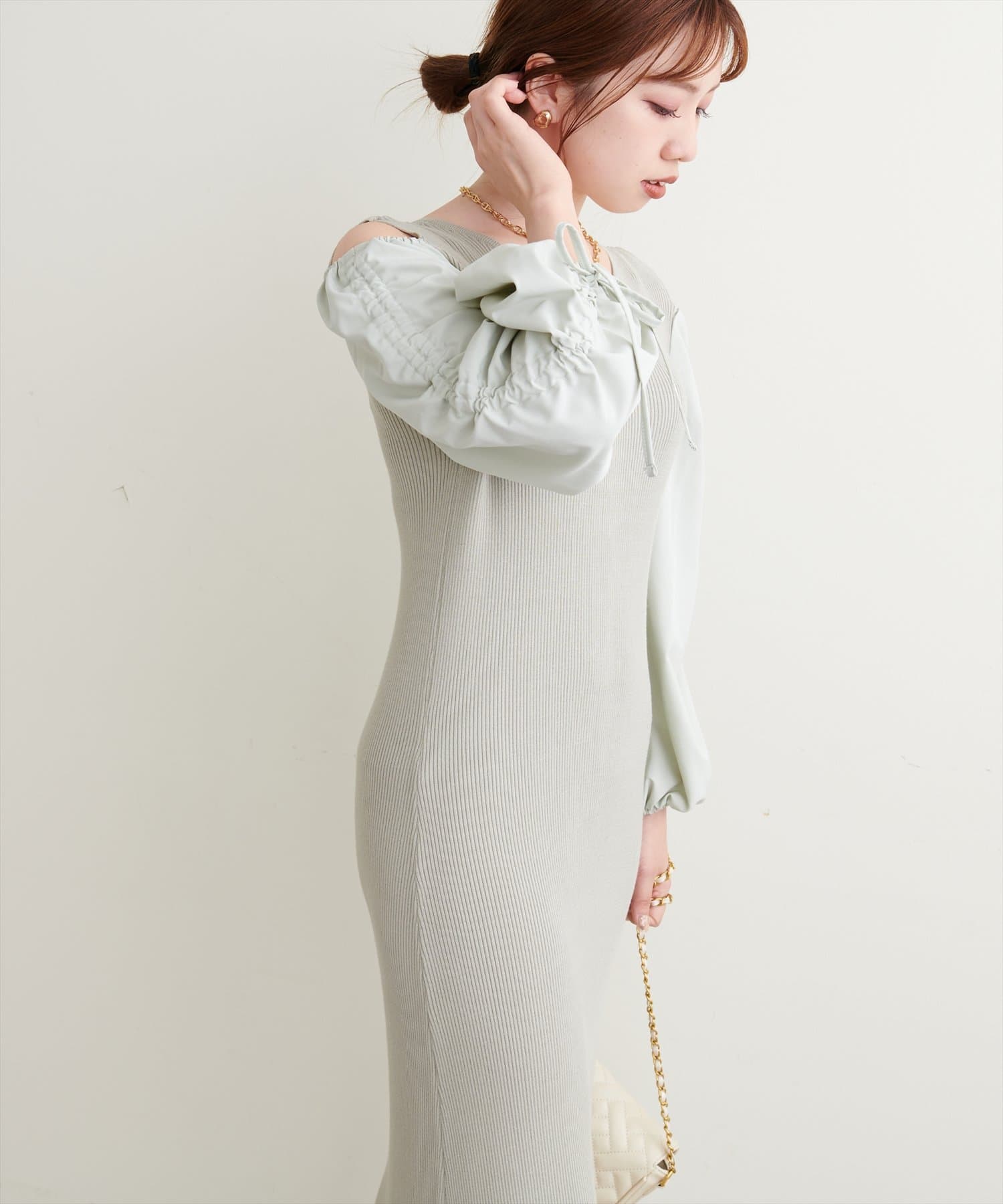 WEB限定アイテム/ドロストギャザー袖2WAYリブワンピース