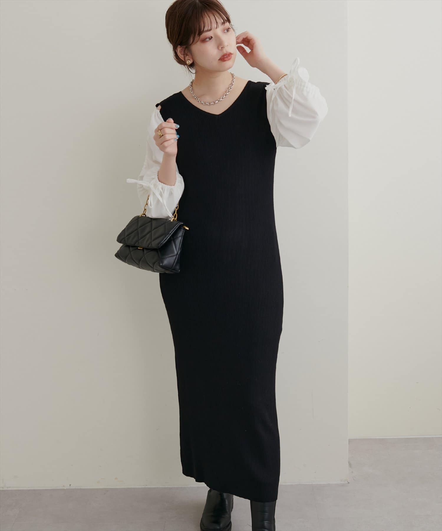 普段袖なしのリブニットワンピなどに抵抗がある方や、ニットワンピースは持っているけれど