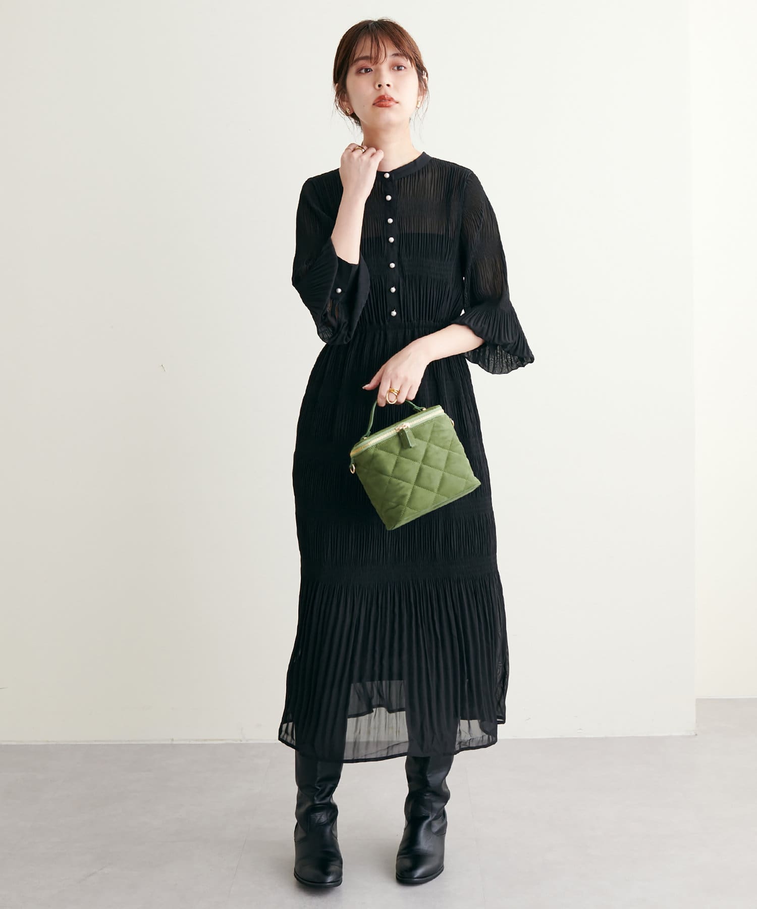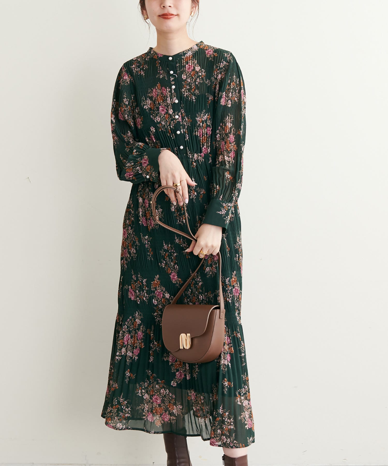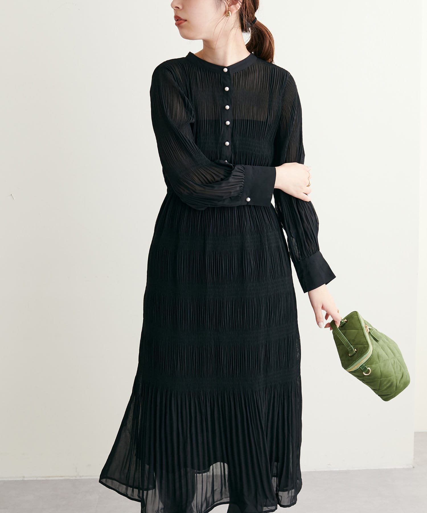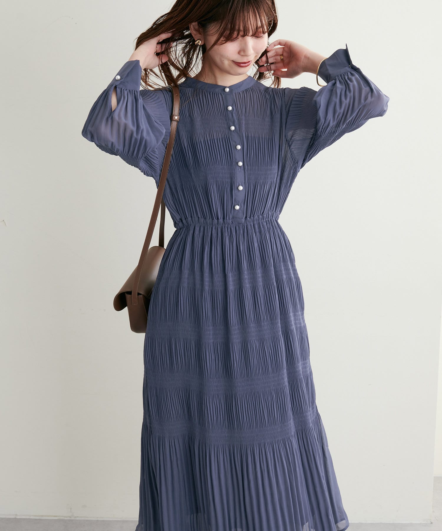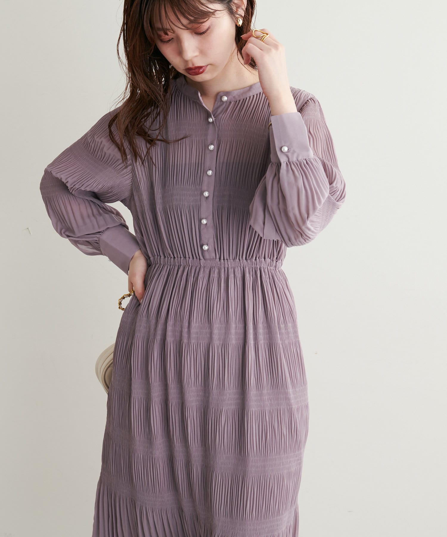 WEB限定カラー/2022AWアイテム/マジョリカプリーツパール釦ワンピース