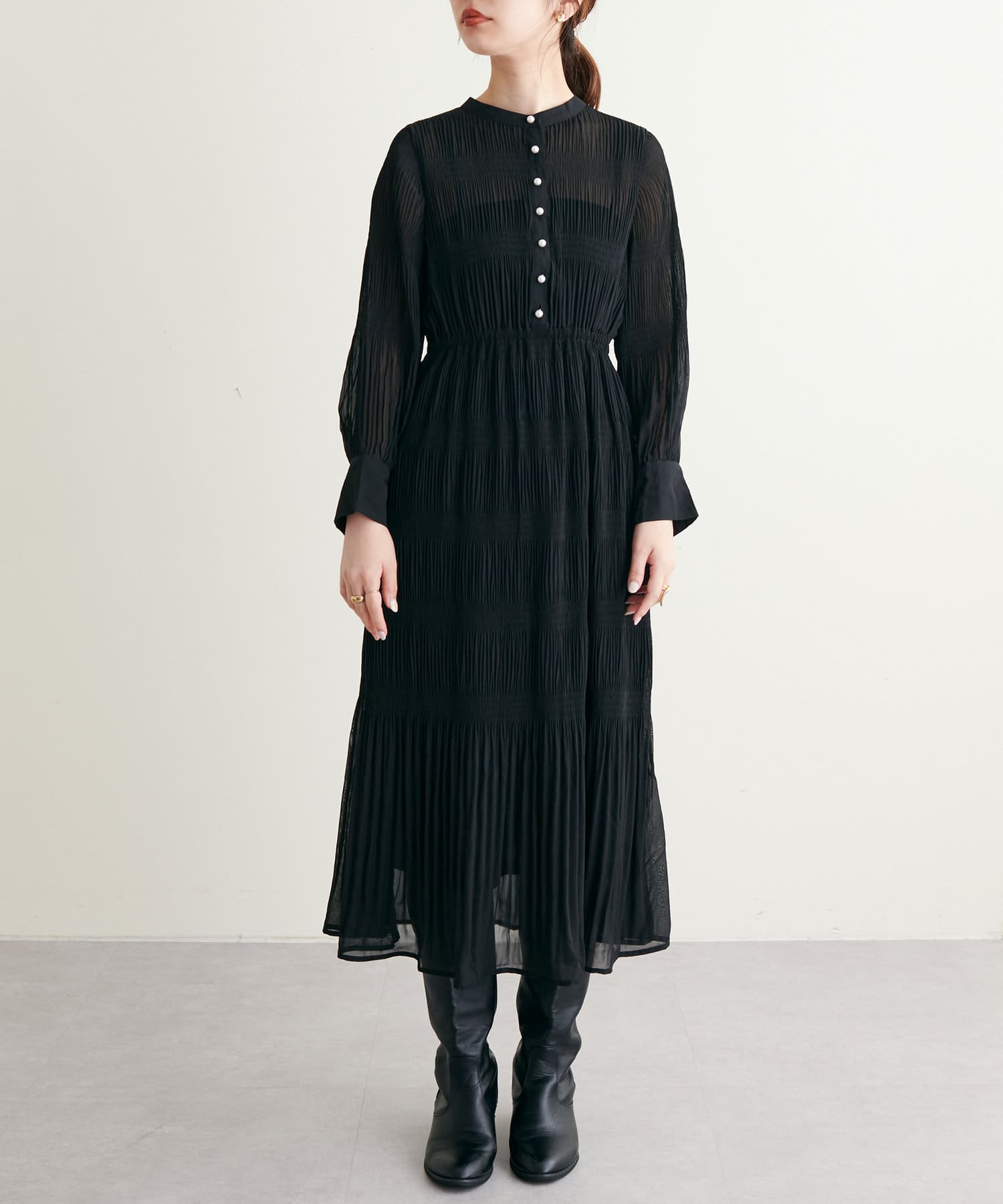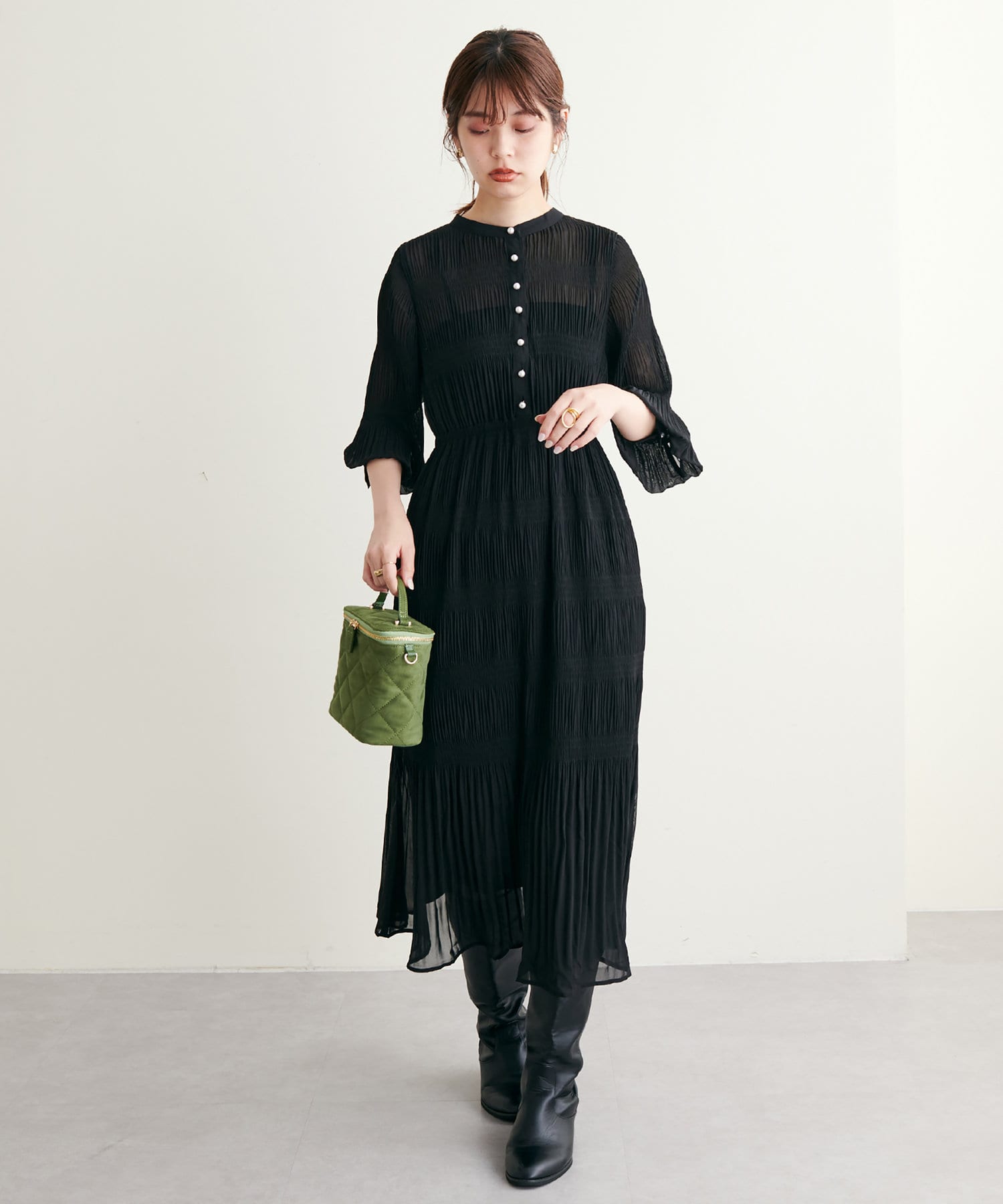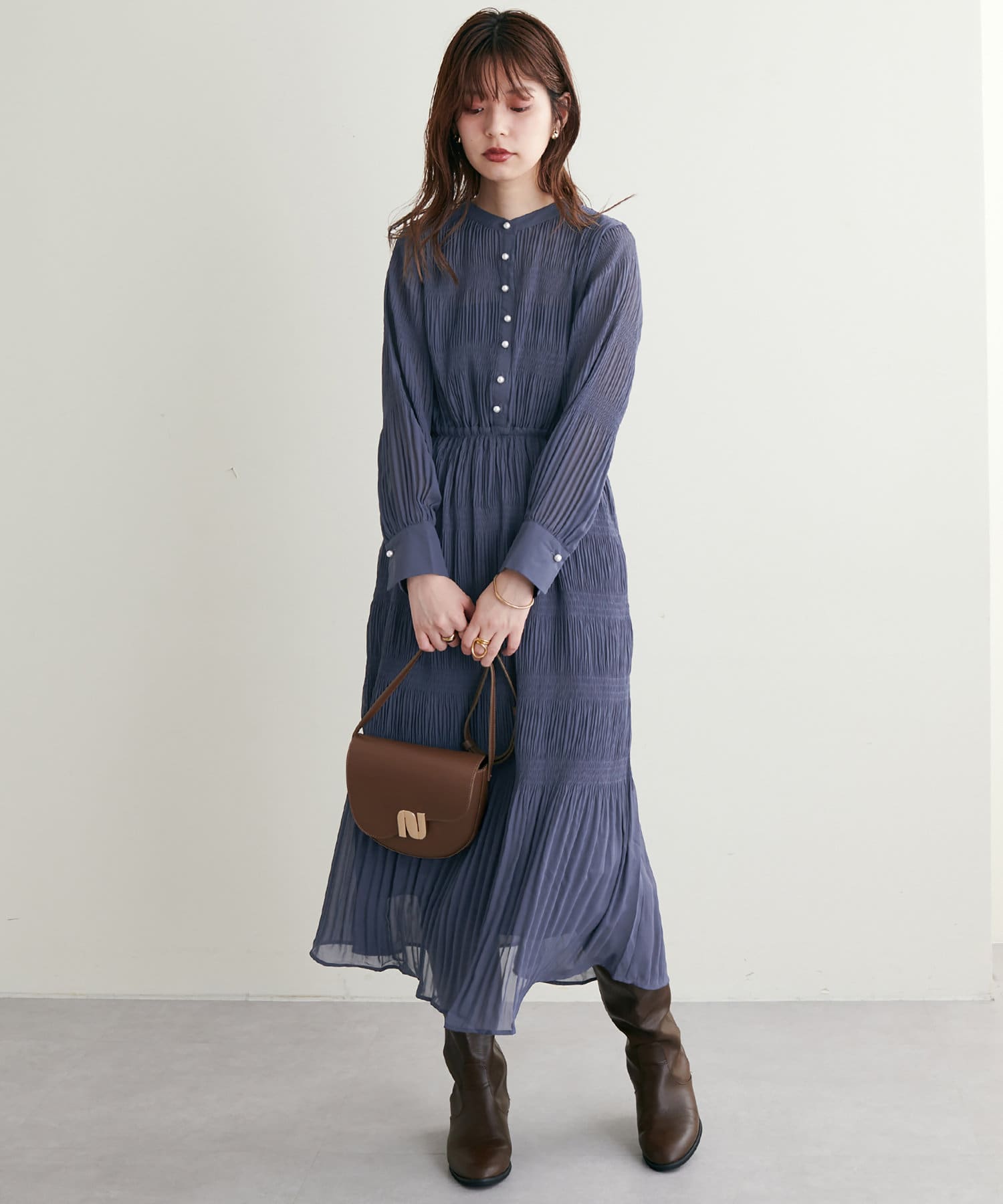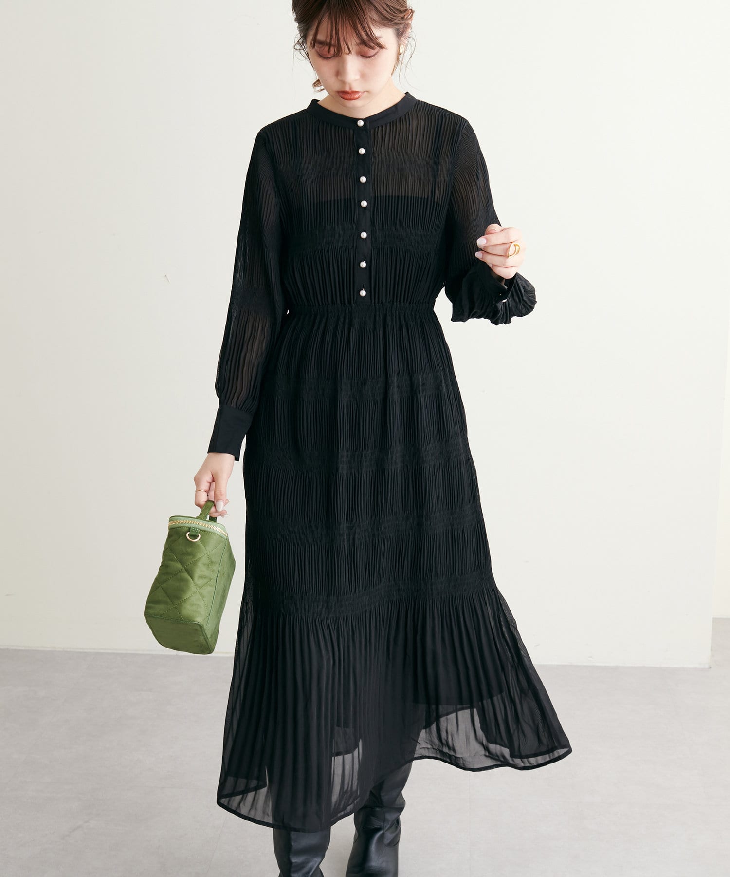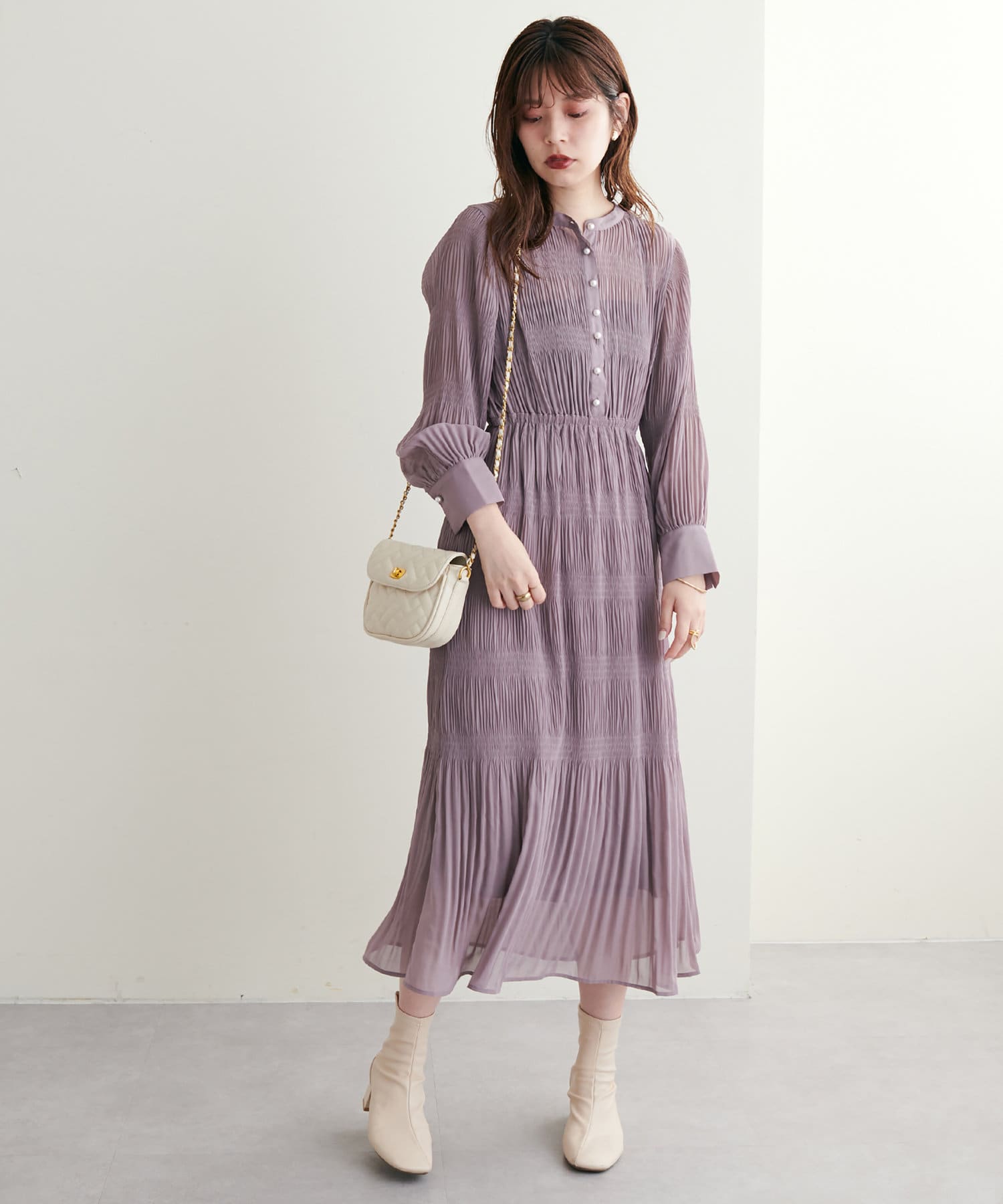 WEB限定カラー/2022AWアイテム/マジョリカプリーツパール釦ワンピース