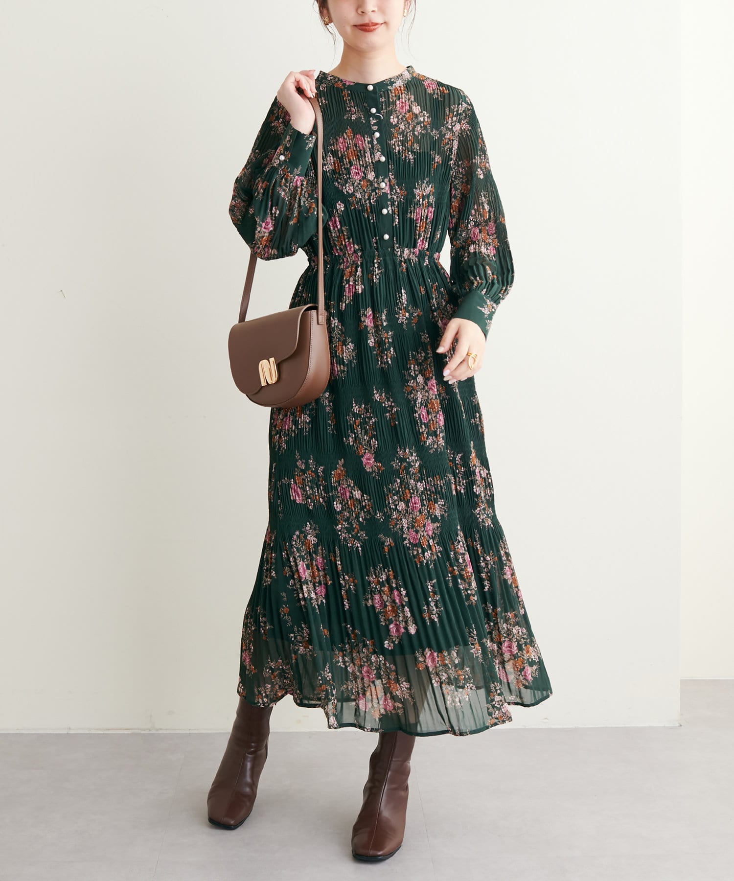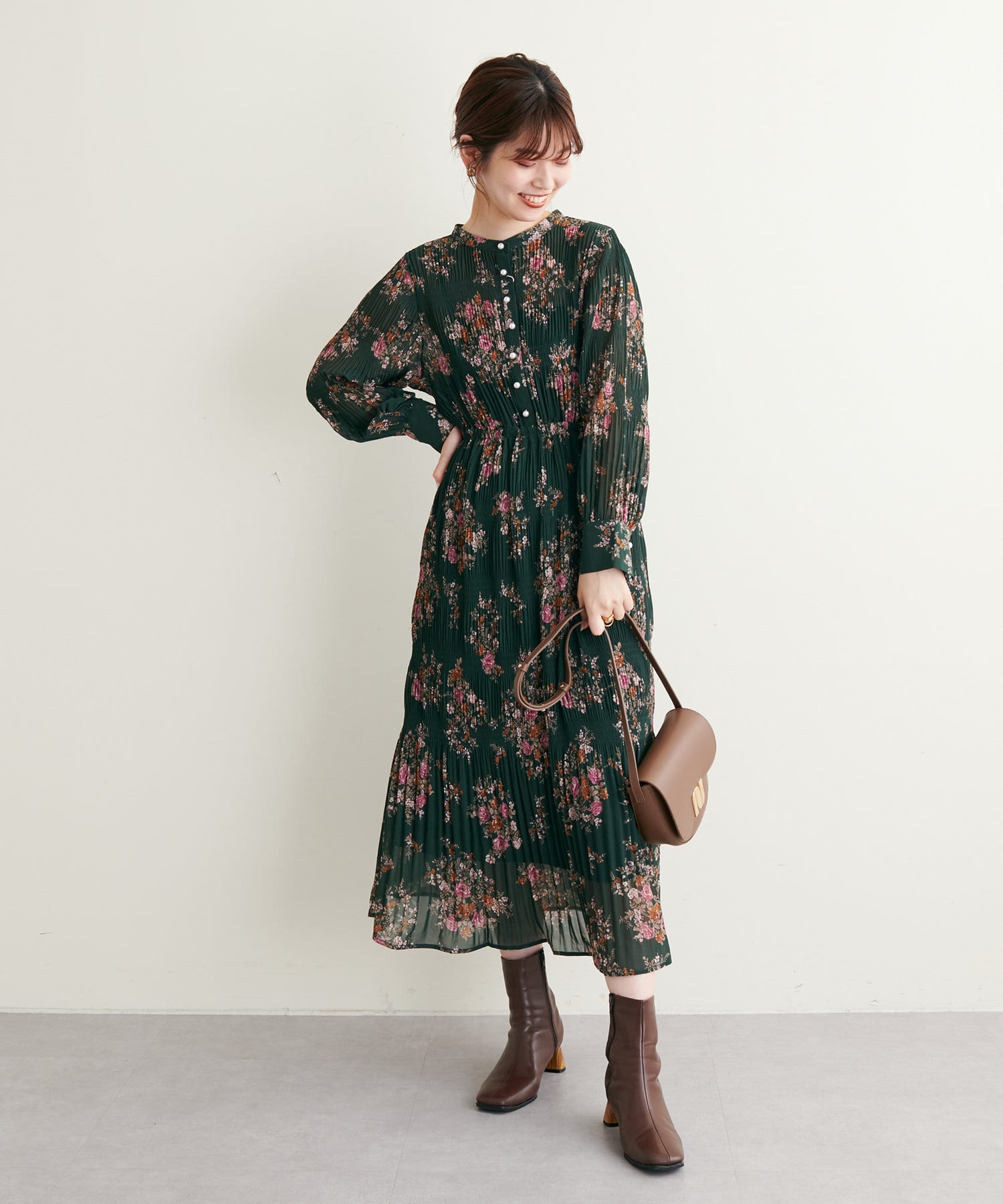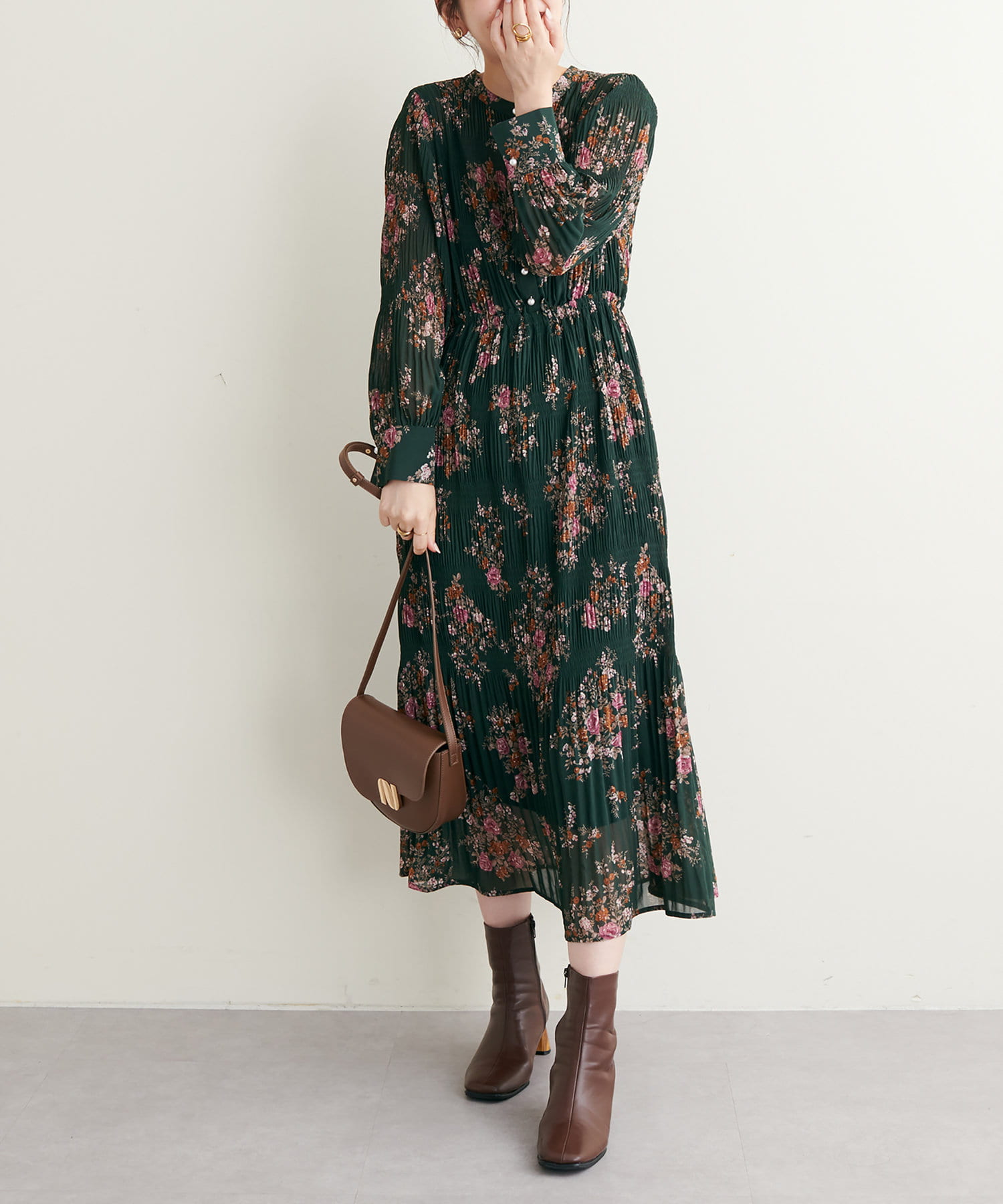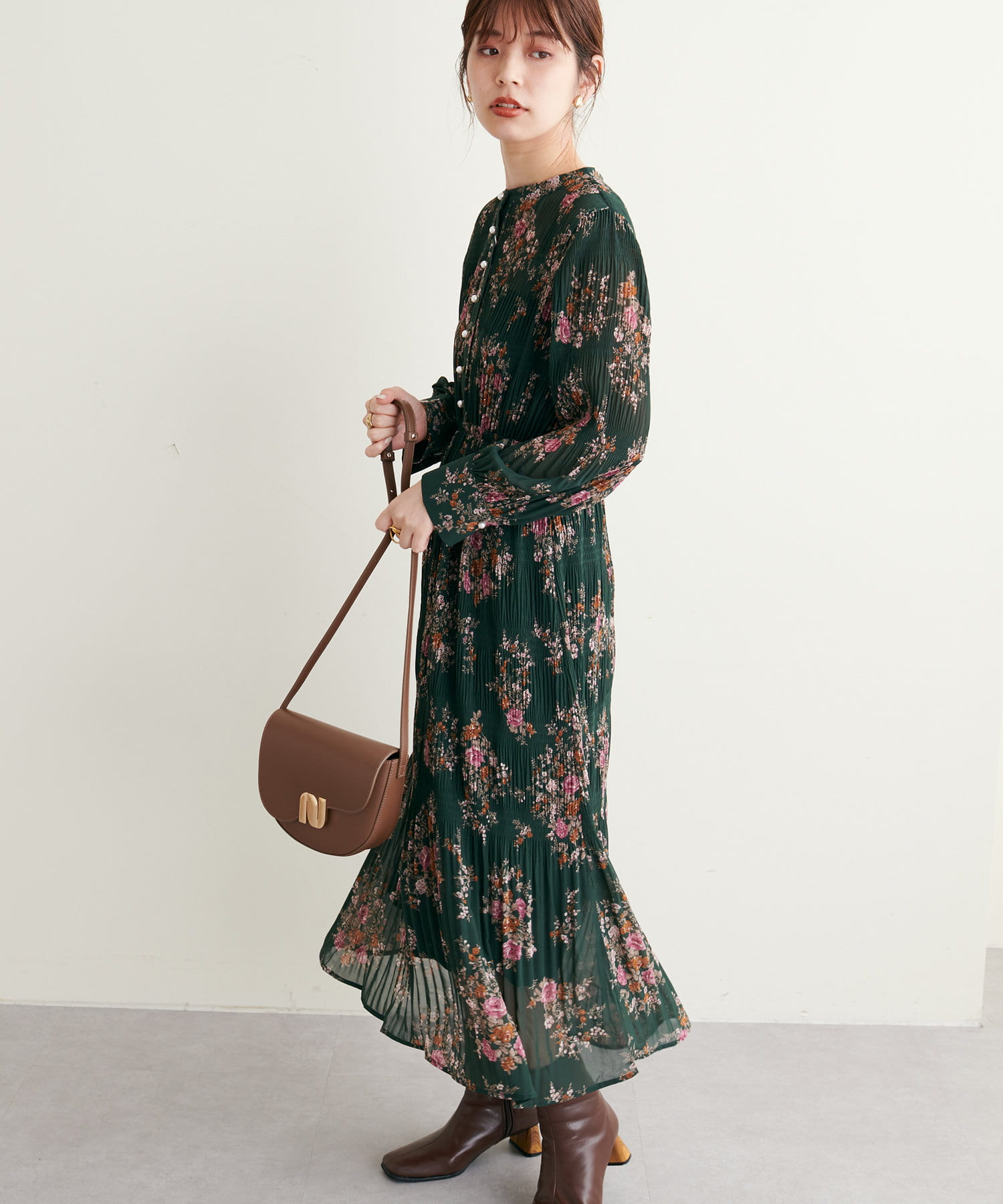 WEB限定カラー/2022AWアイテム/マジョリカプリーツパール釦ワンピース