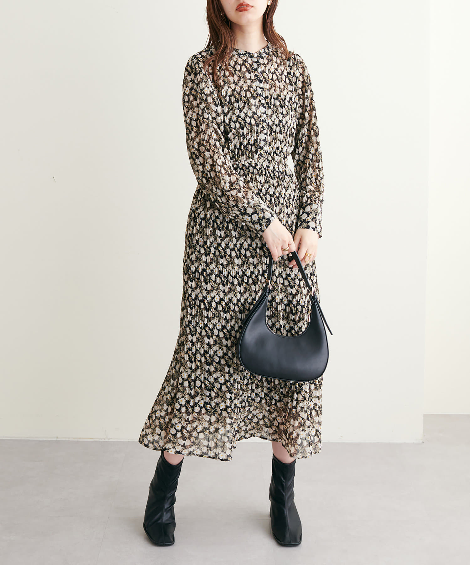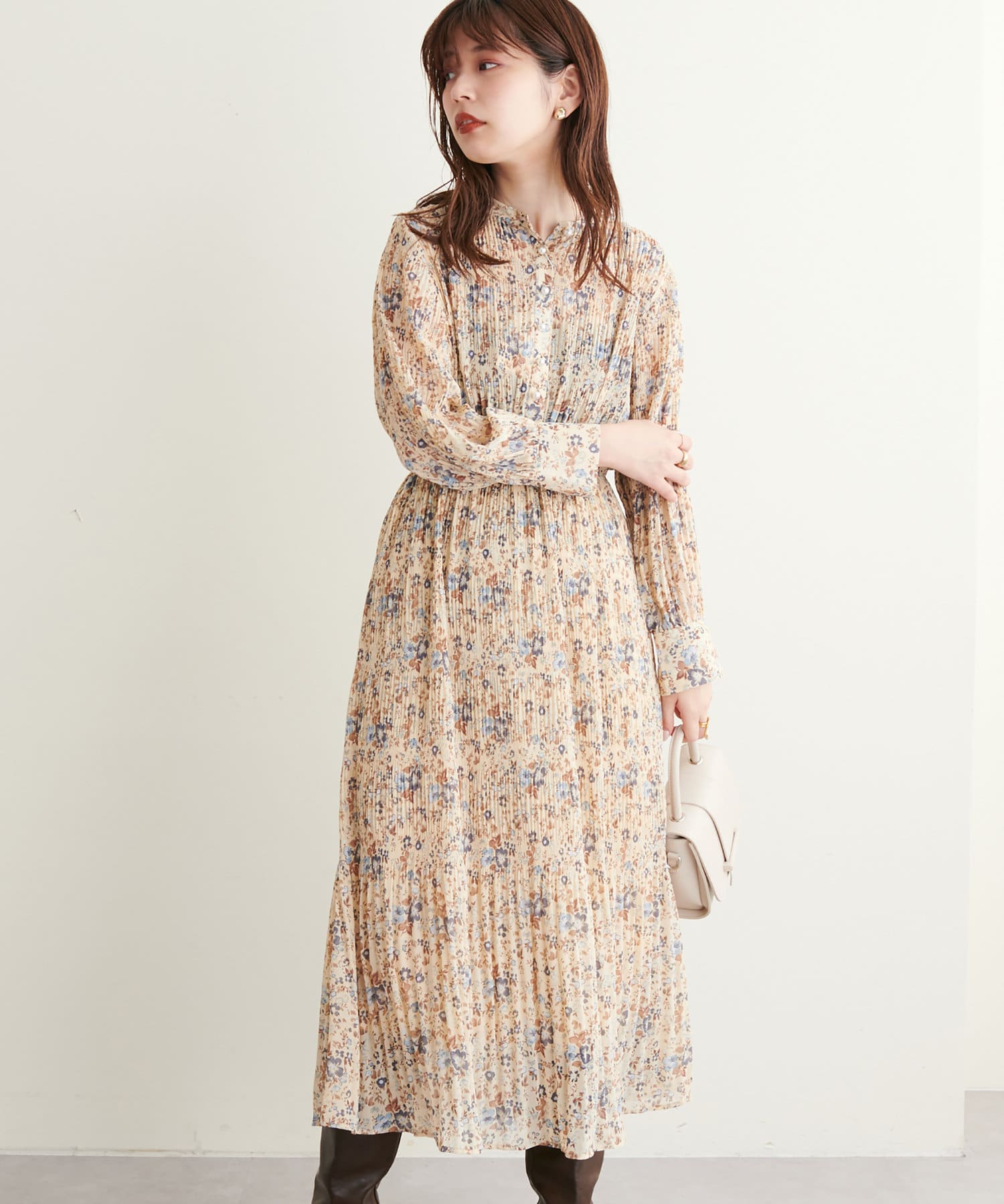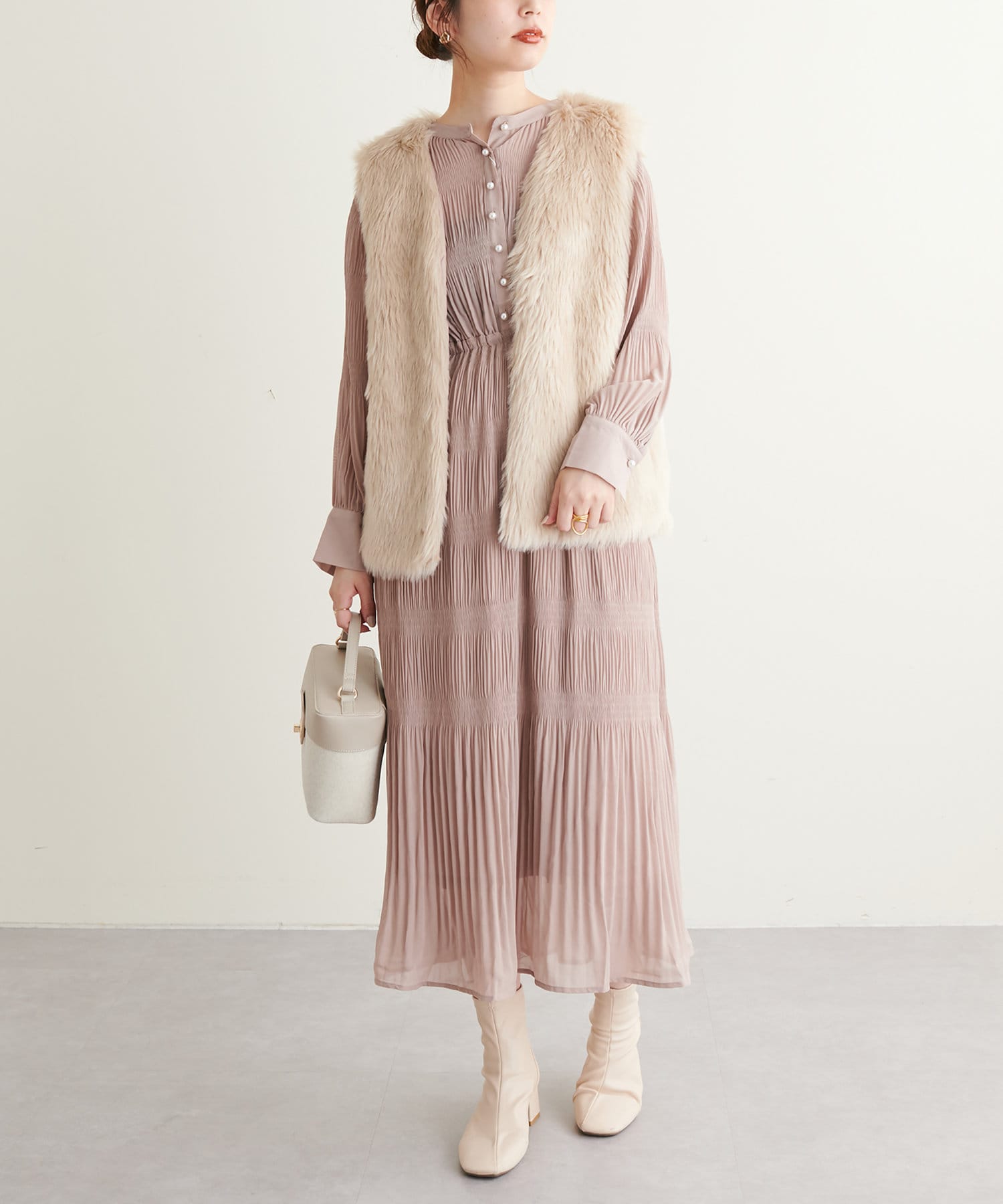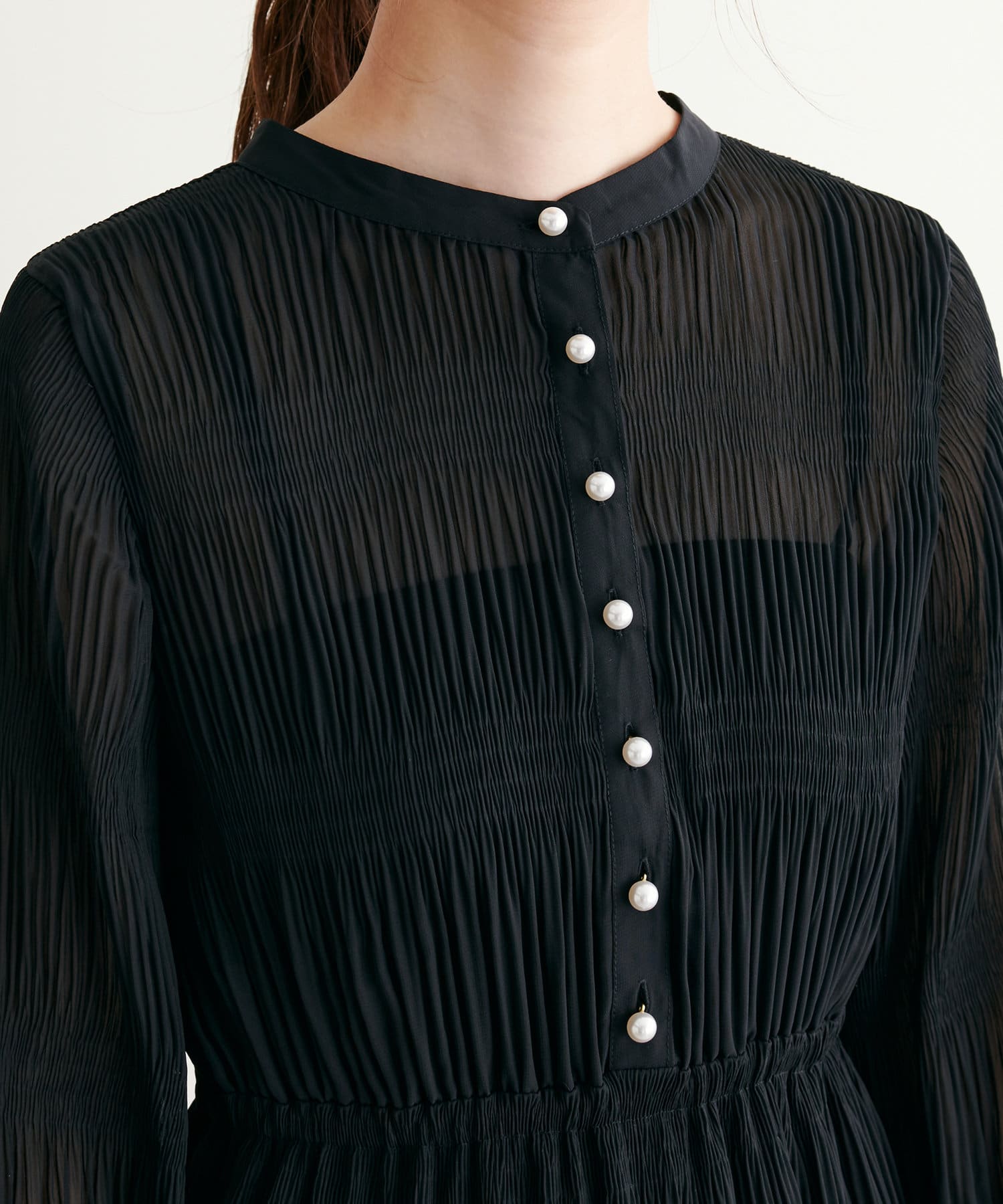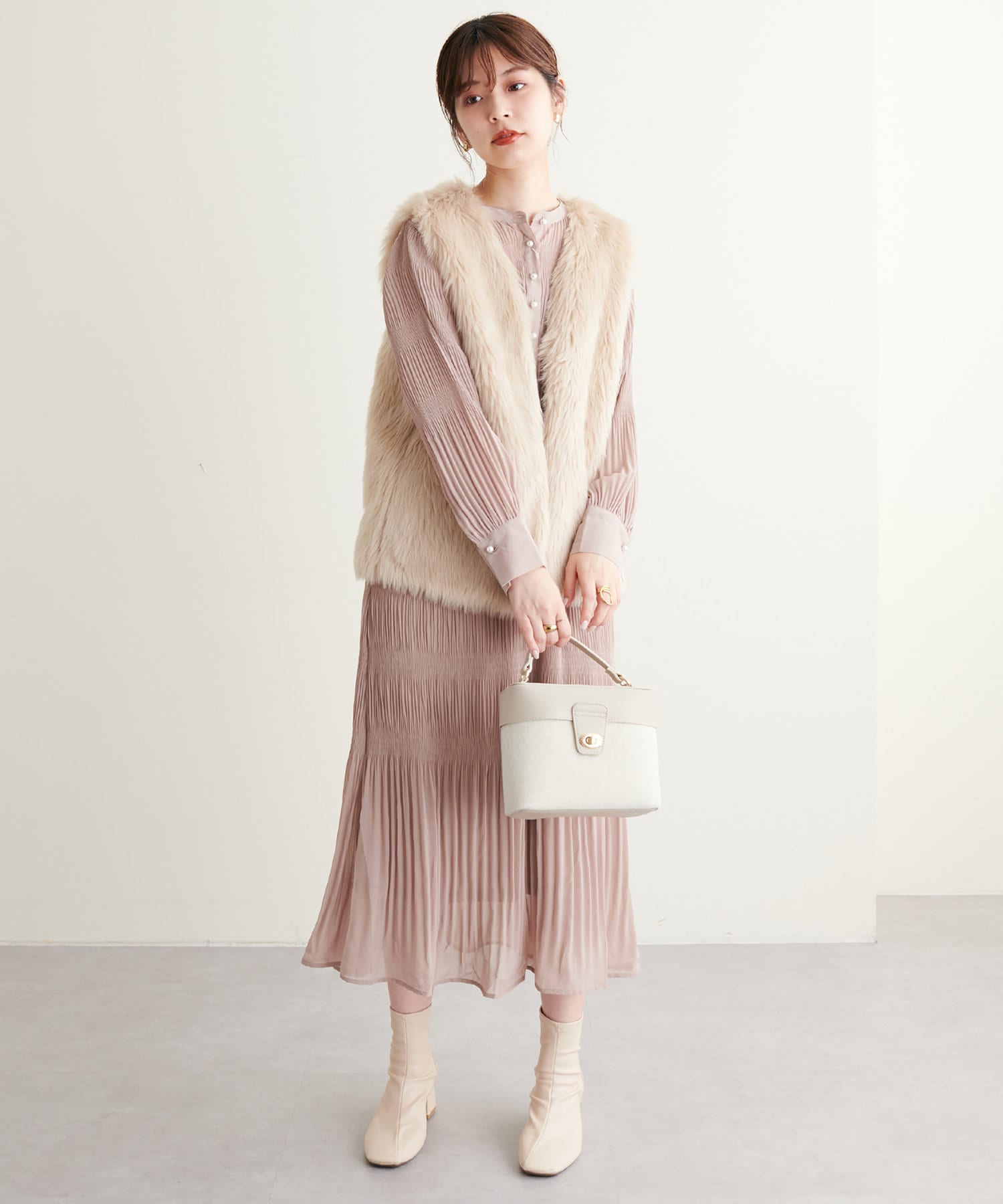 WEB限定カラー/2022AWアイテム/マジョリカプリーツパール釦ワンピース
