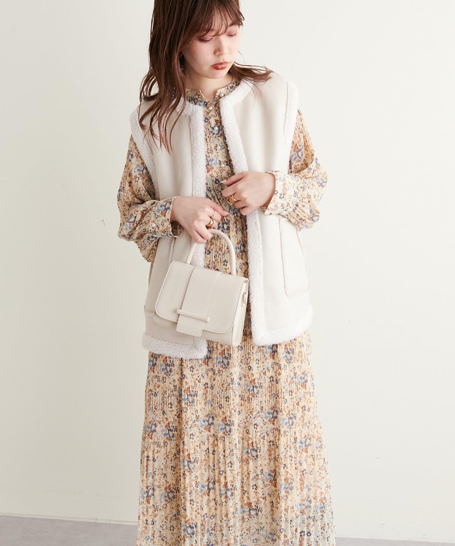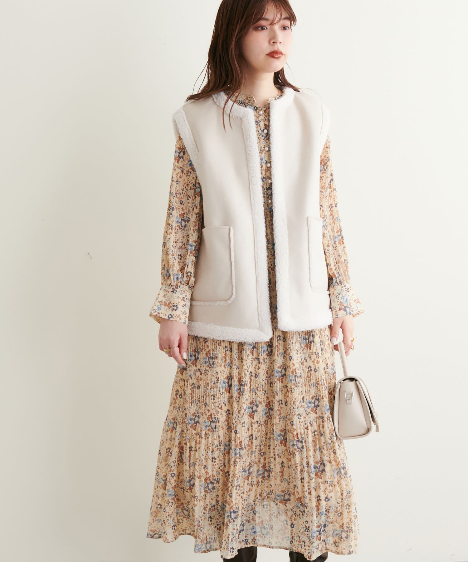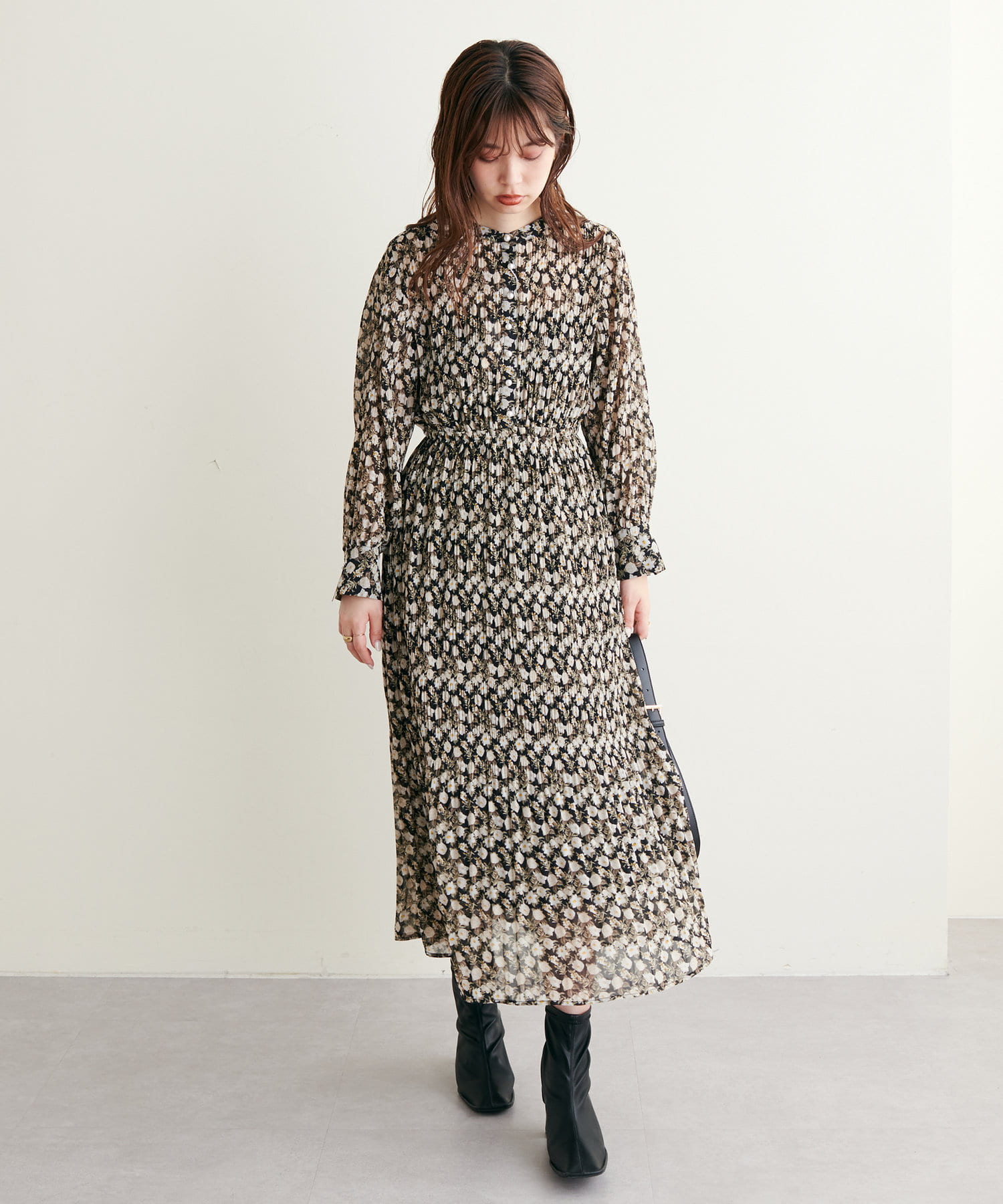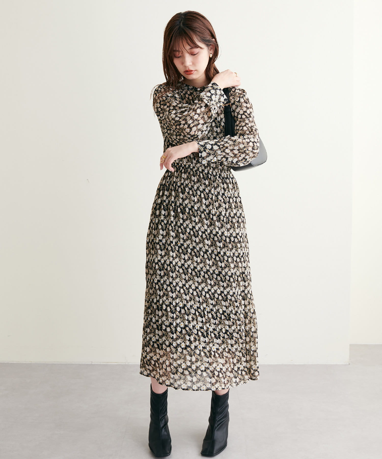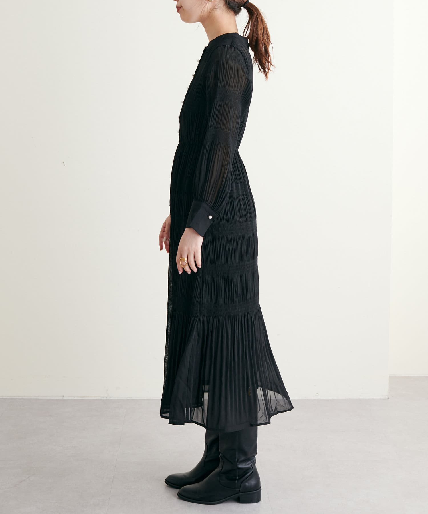 WEB限定カラー/2022AWアイテム/マジョリカプリーツパール釦ワンピース