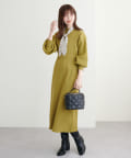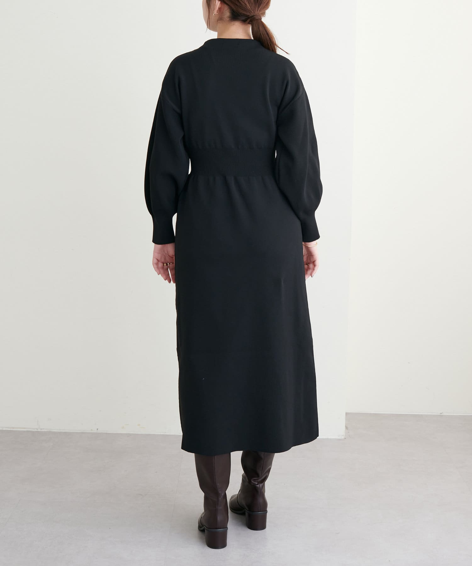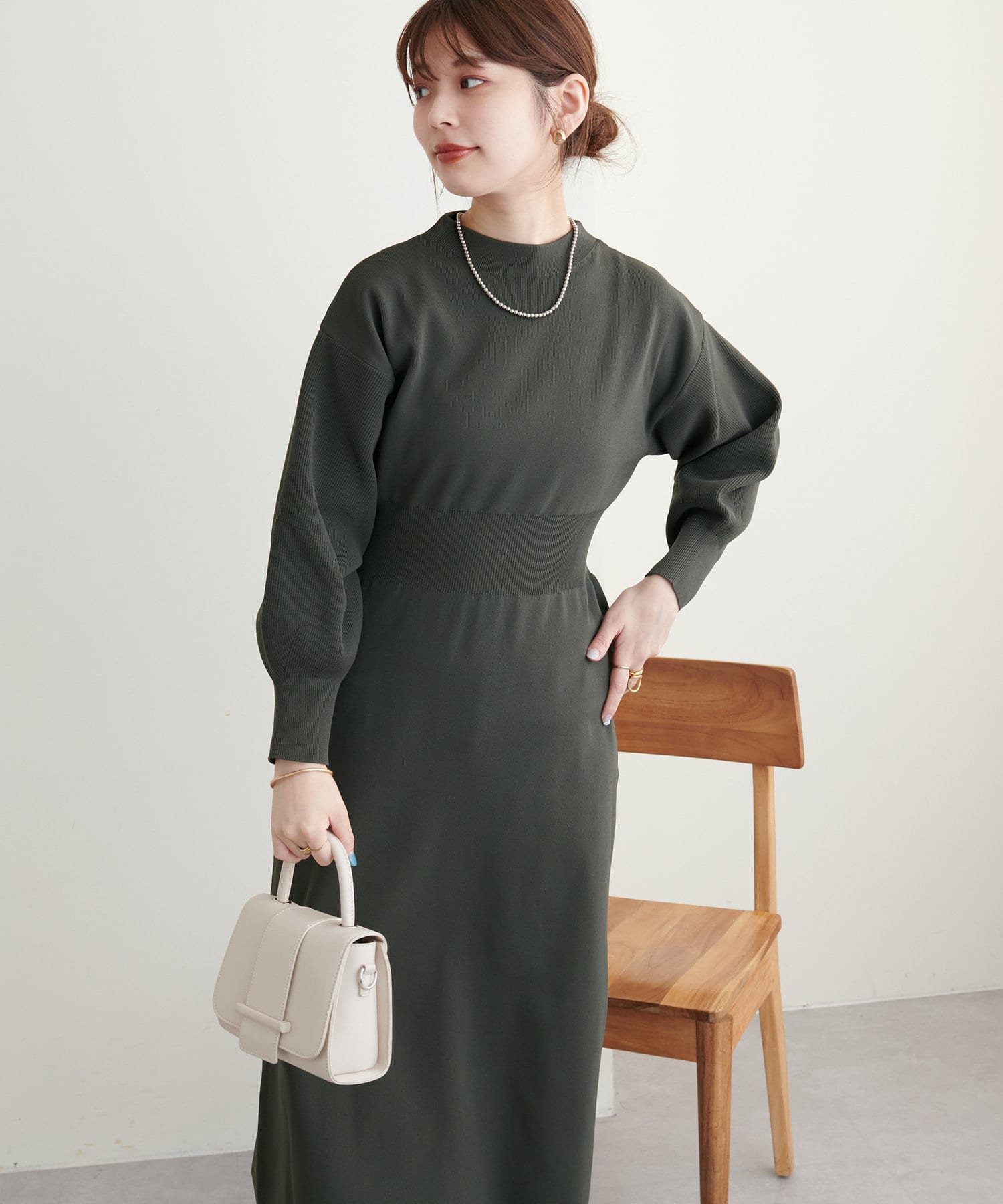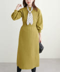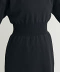 太めのウエストの切り替えデザインと、体のラインを拾いすぎない優しいサイズ感で美しいシルエットで着ていただけます。