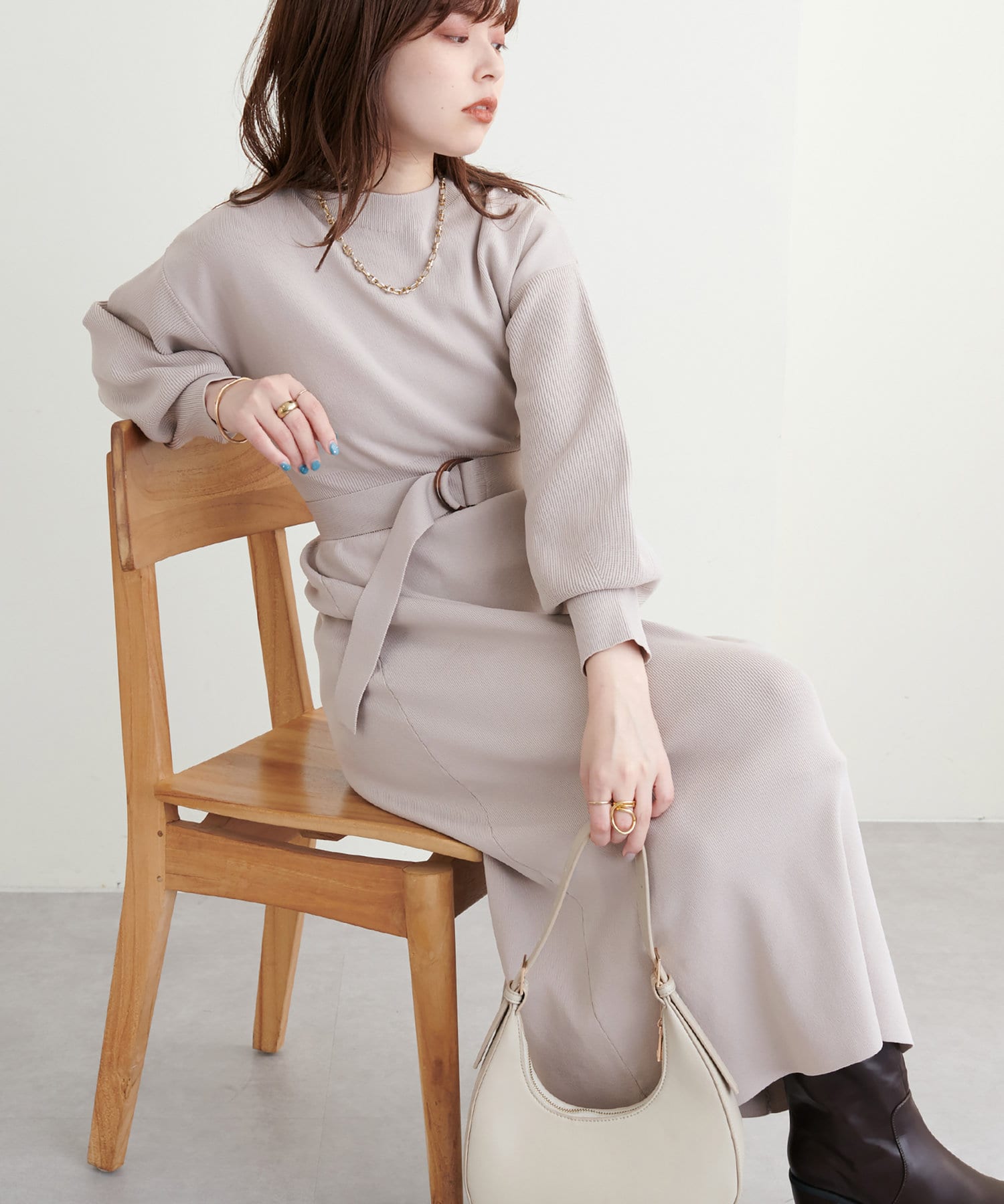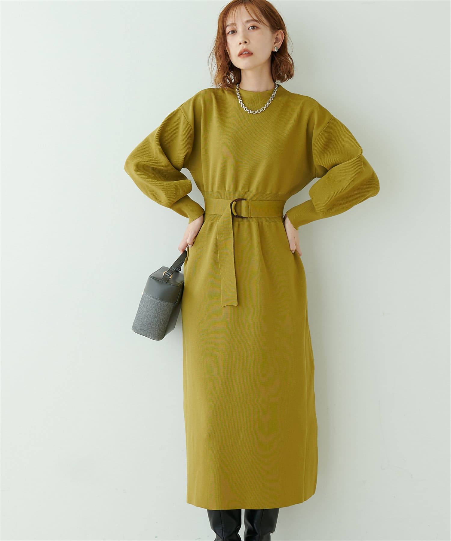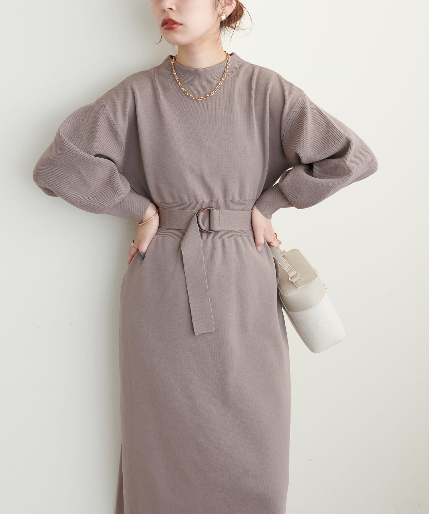 ベルトをつけることで、よりメリハリを出したスタイルも楽しんでいただけます。