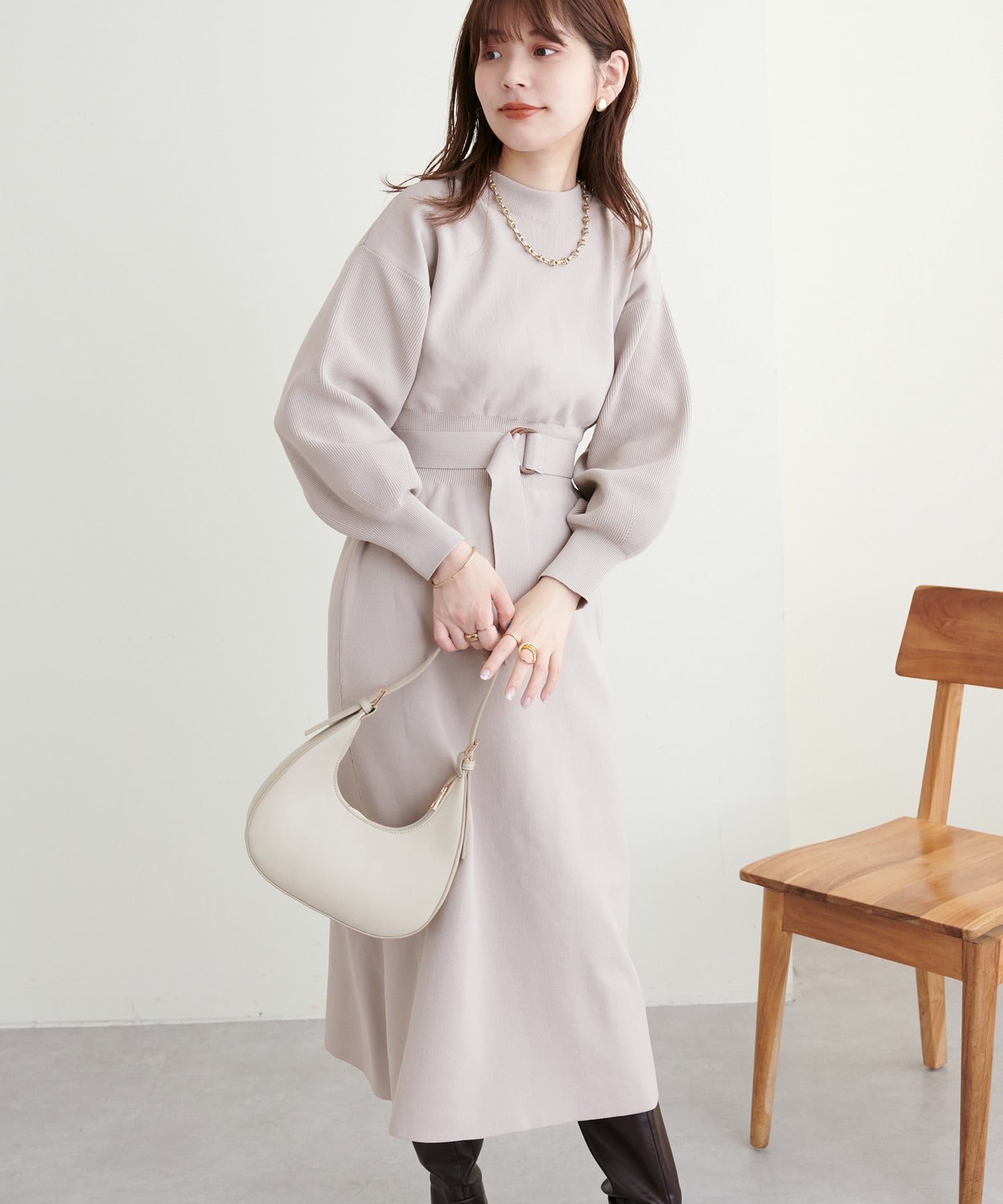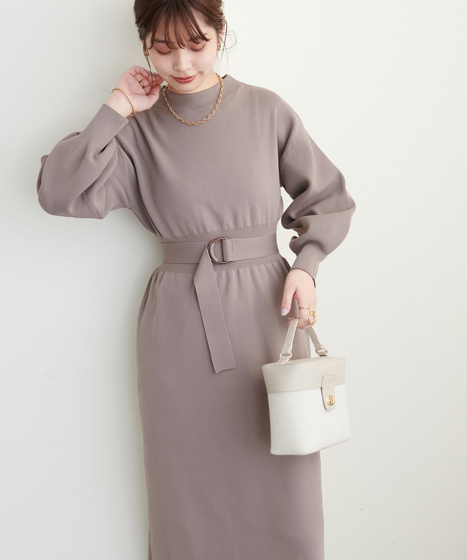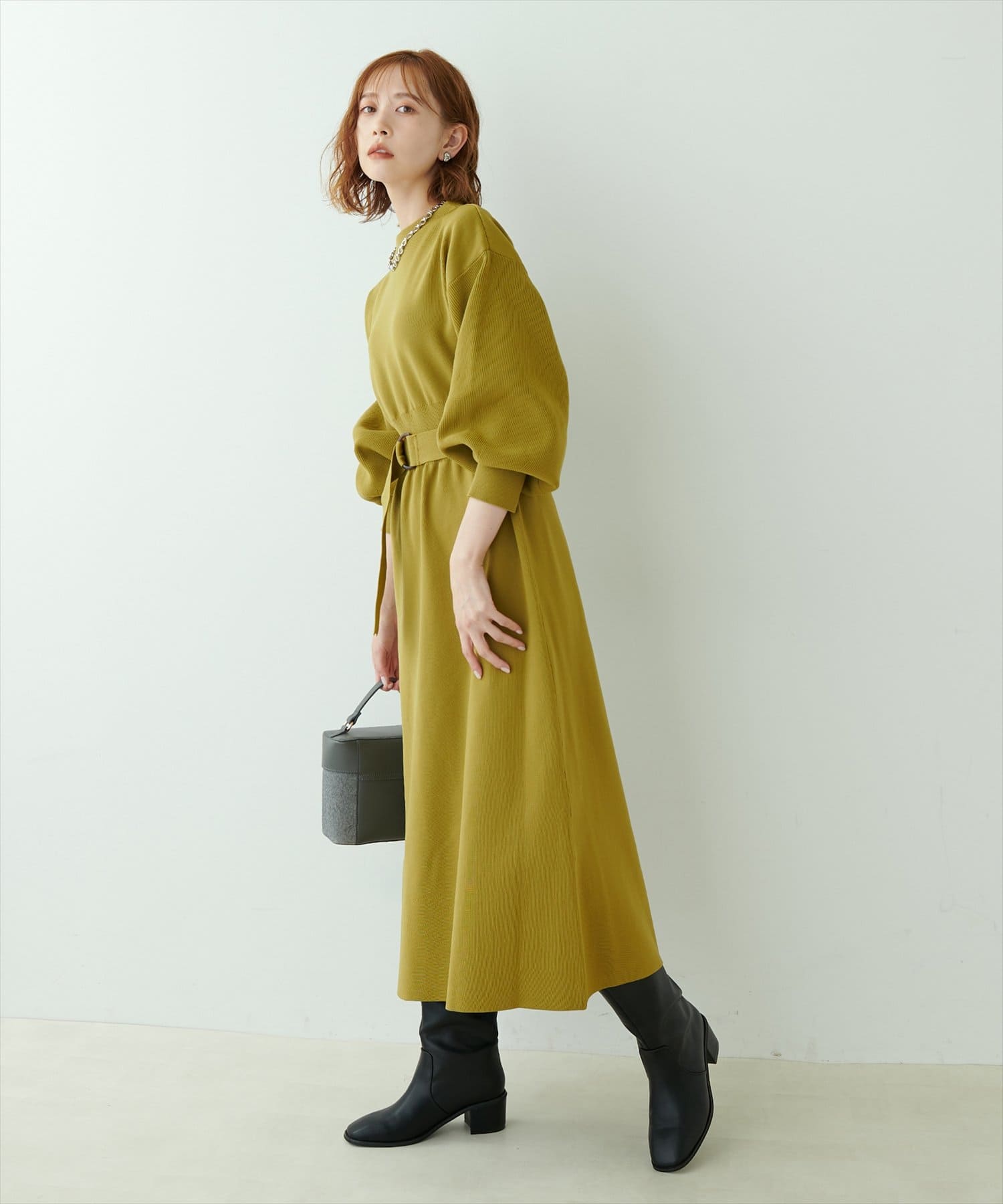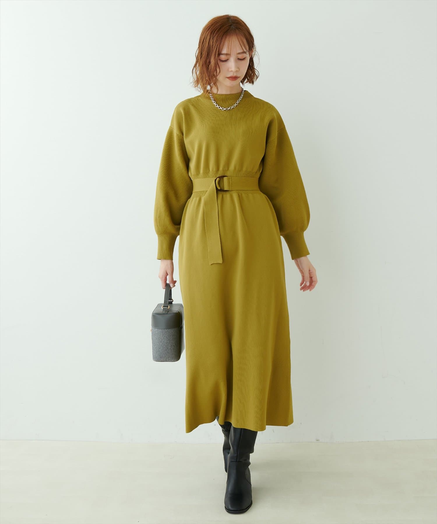 ベルトをつけることで、よりメリハリを出したスタイルも楽しんでいただけます。