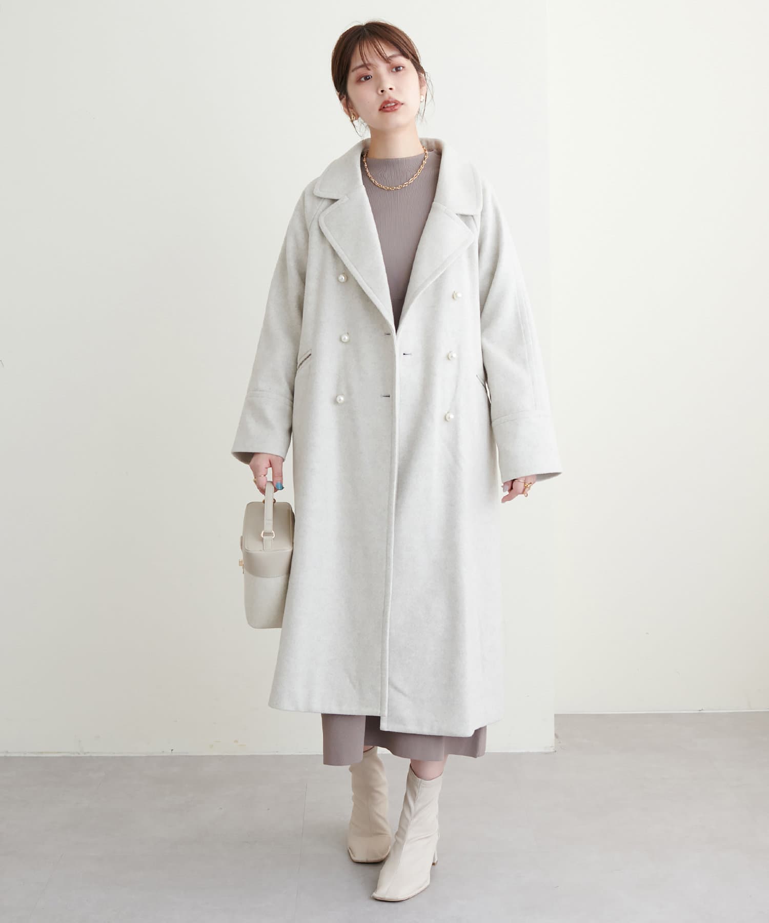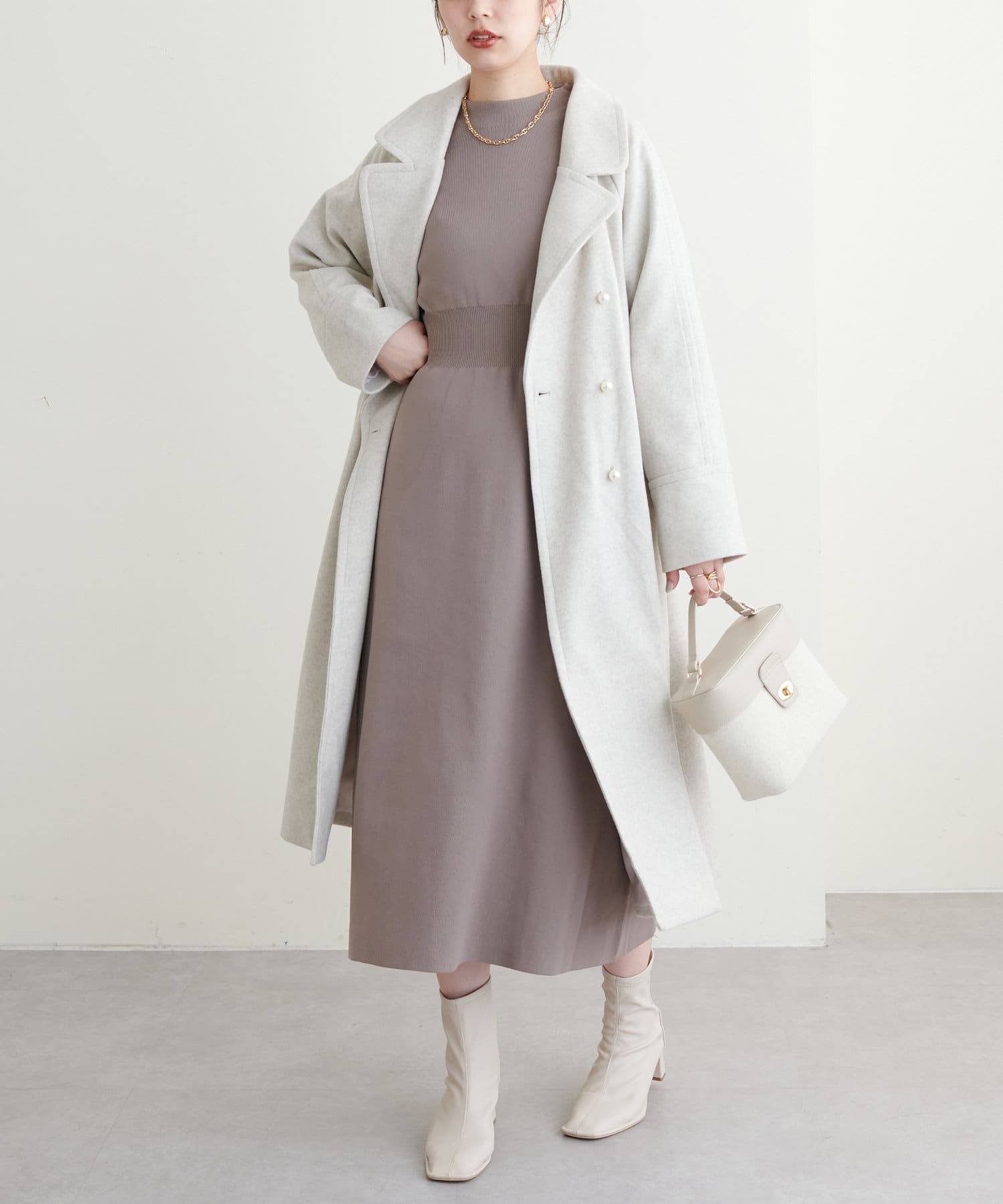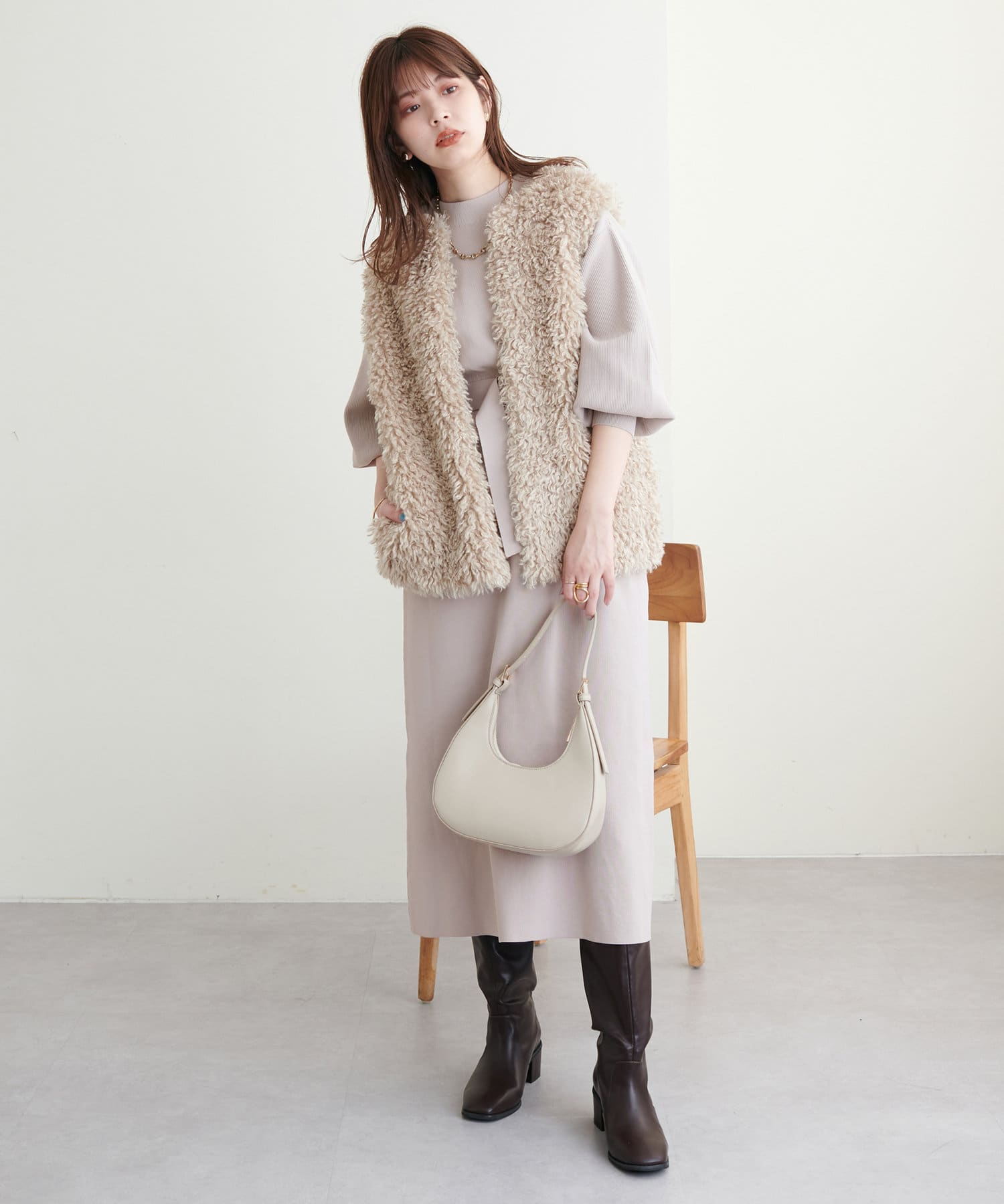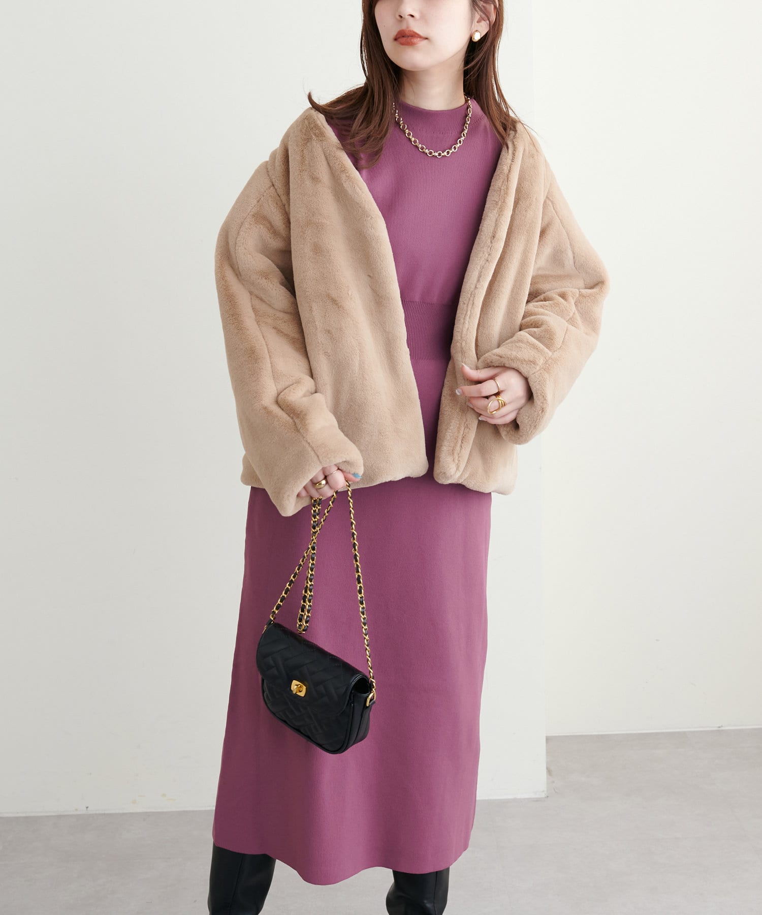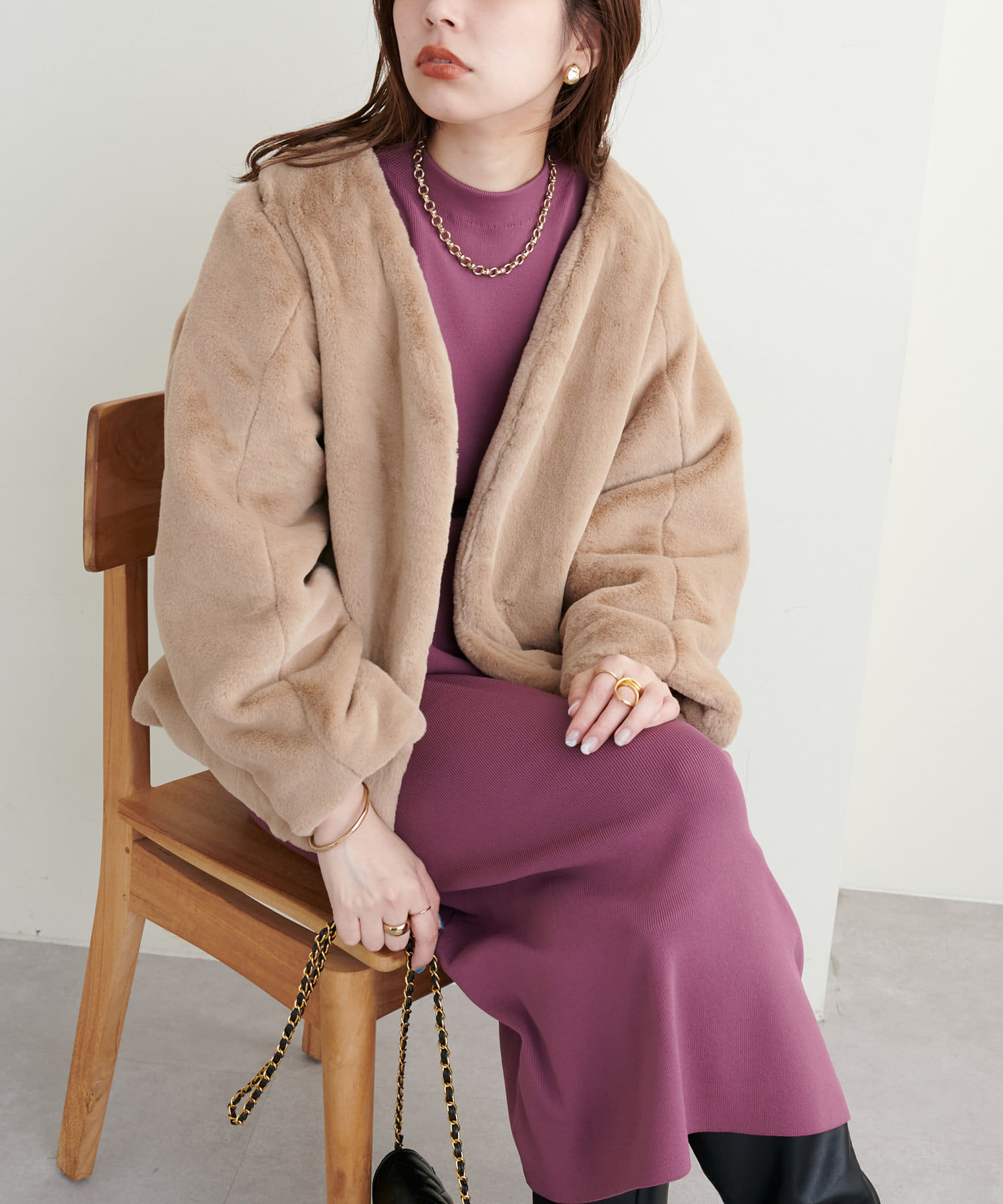 ロングコート、ショートコートで上品に合わせていただくのはもちろん、ファーベストなど組み合わせたトレンドスタイルもおすすめ◎