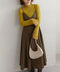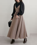 ややドレープの効いたふんわり広がるフレアラインのスカートが歩くたびに揺れて、華やかな印象を与えます。