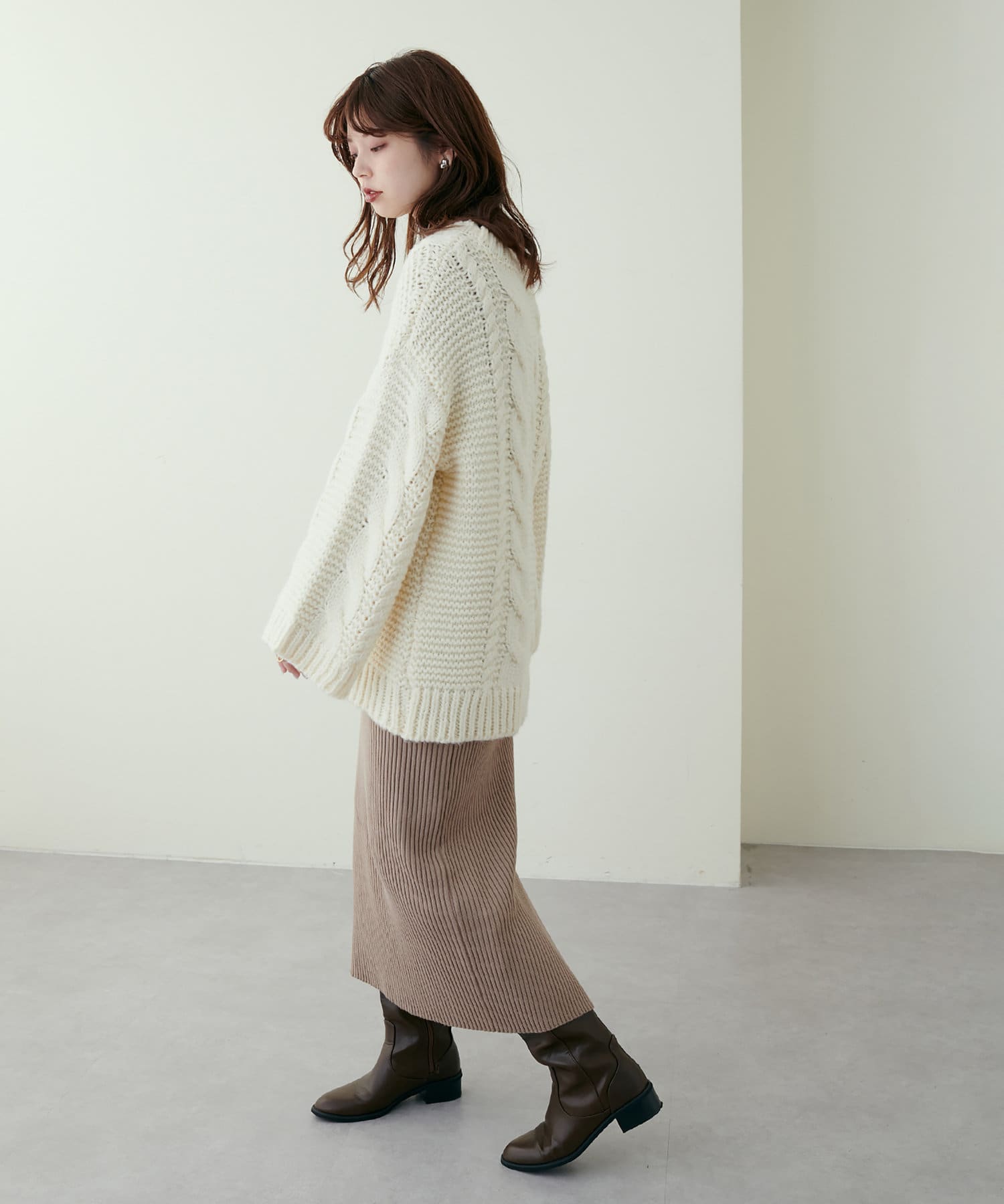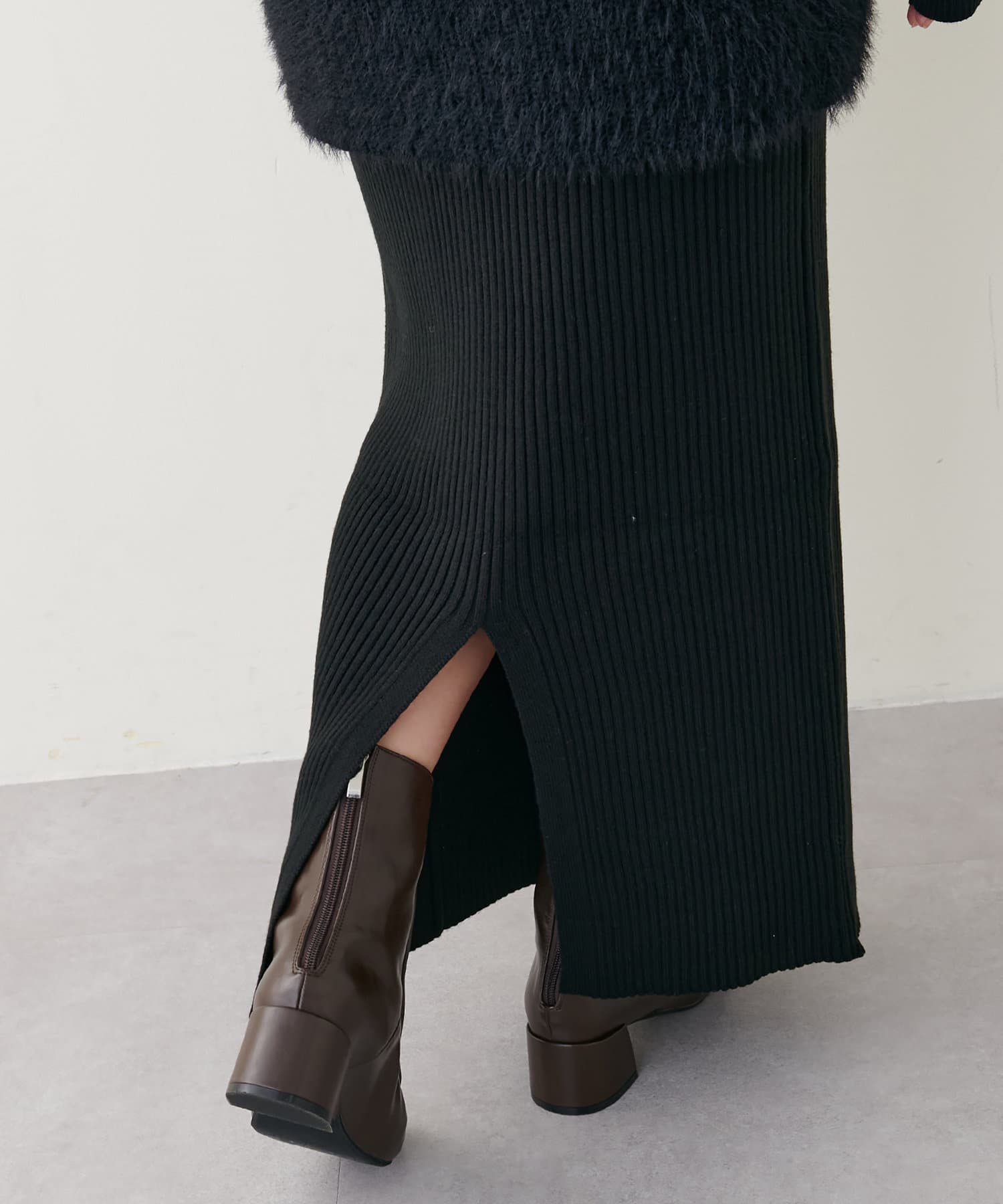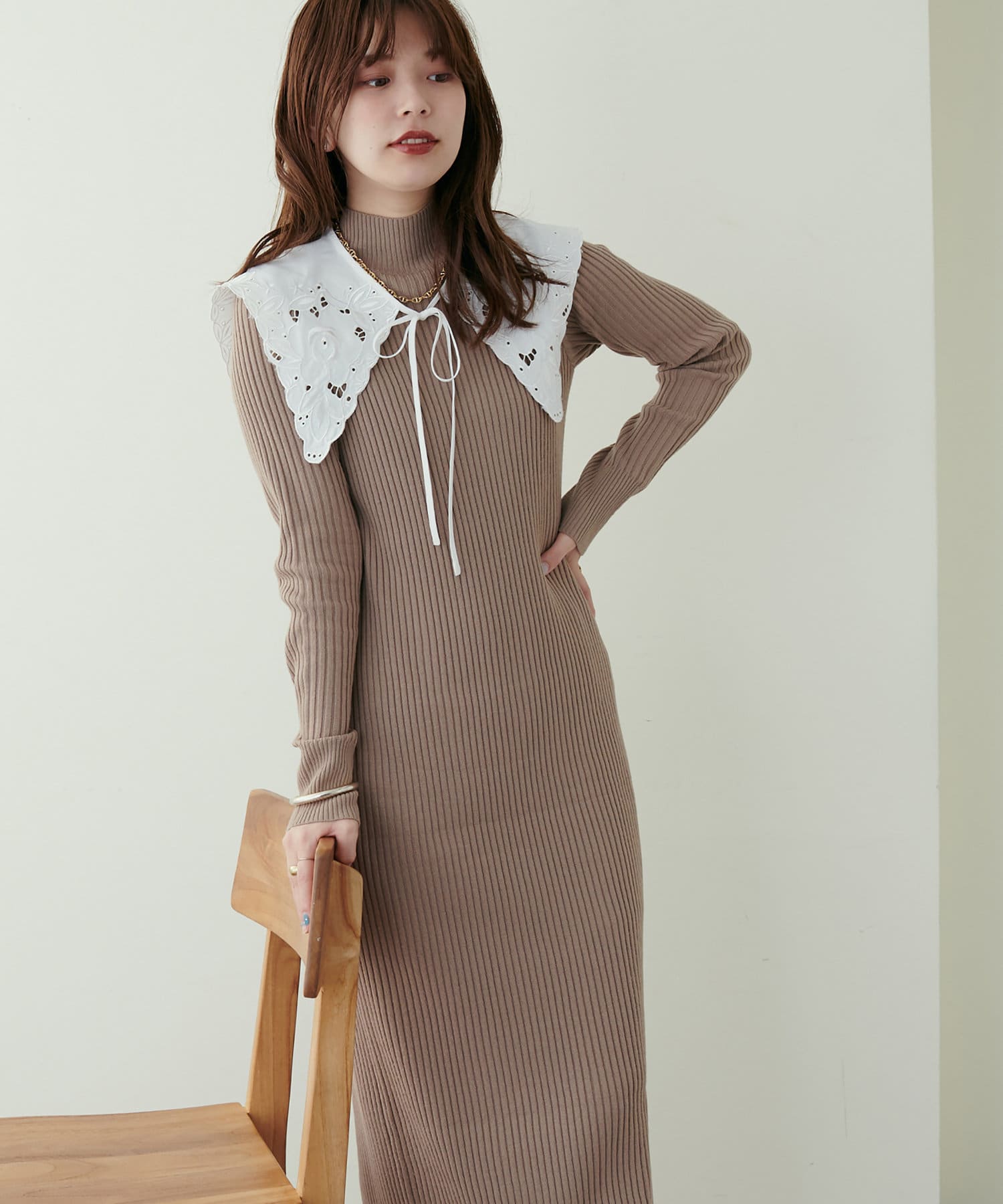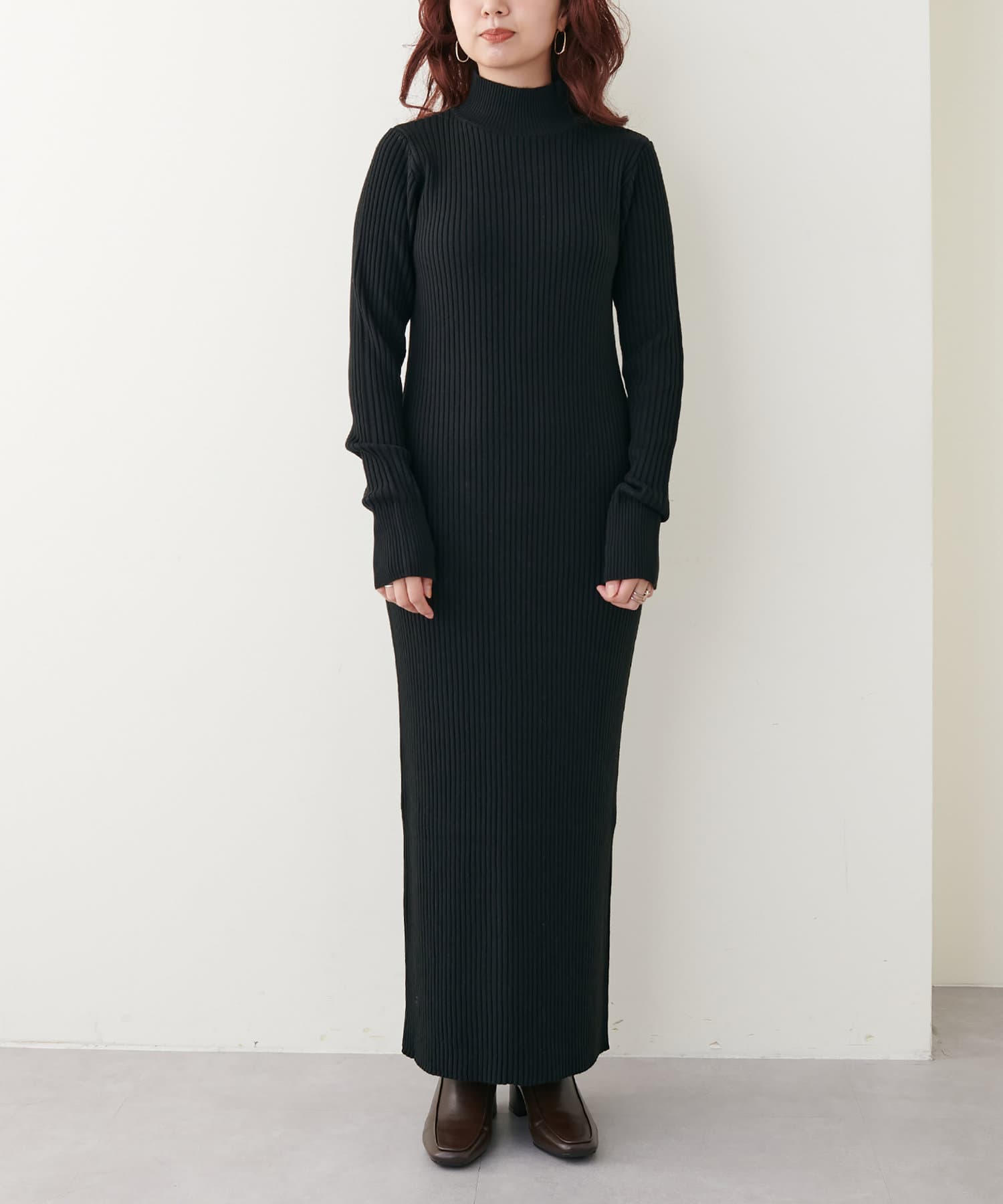 リブニットワンピは程良いサイズ感と丈感で幅広いお客様にマッチします。
