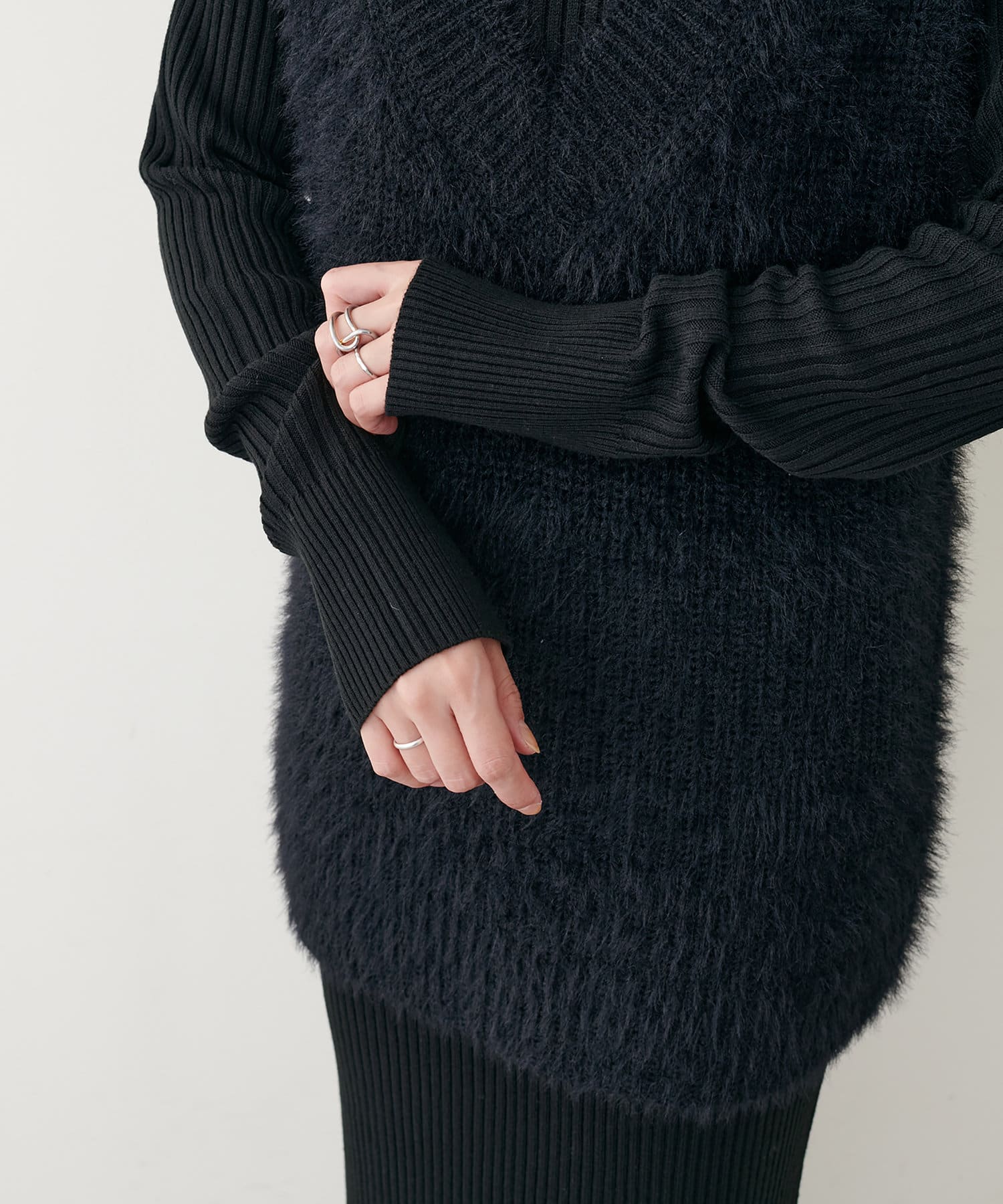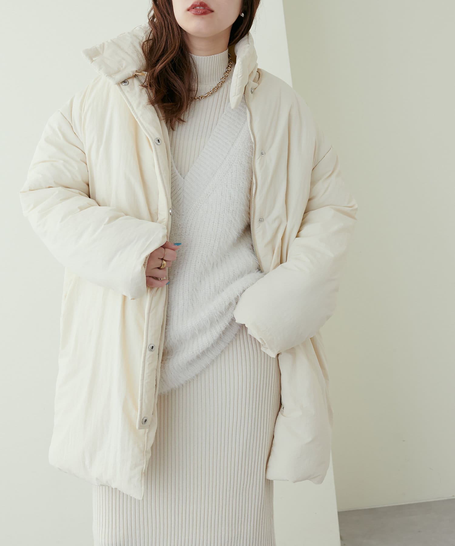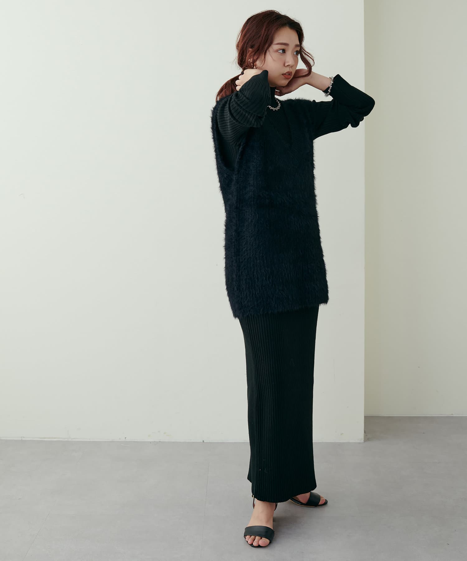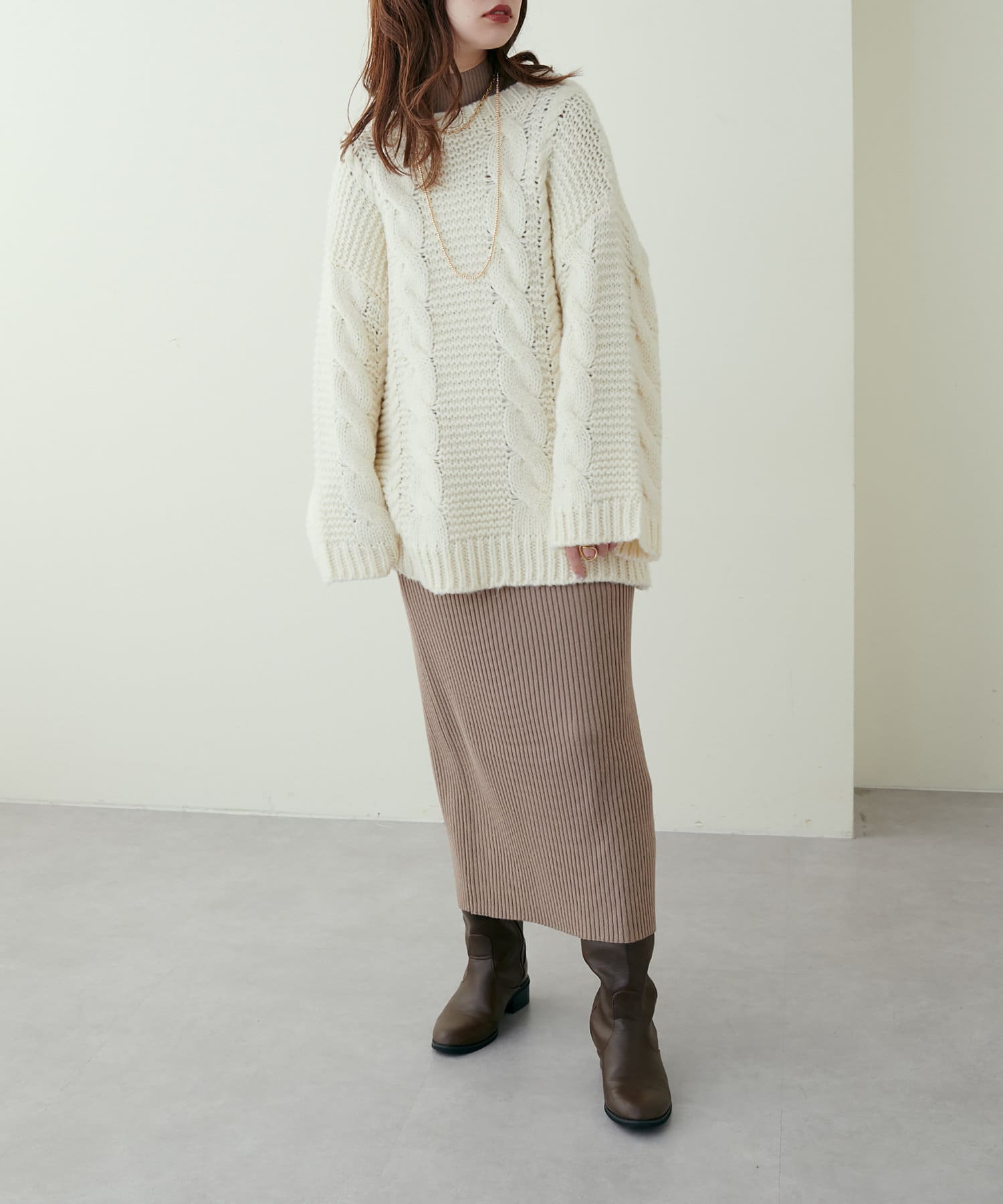 リブニットワンピは程良いサイズ感と丈感で幅広いお客様にマッチします。