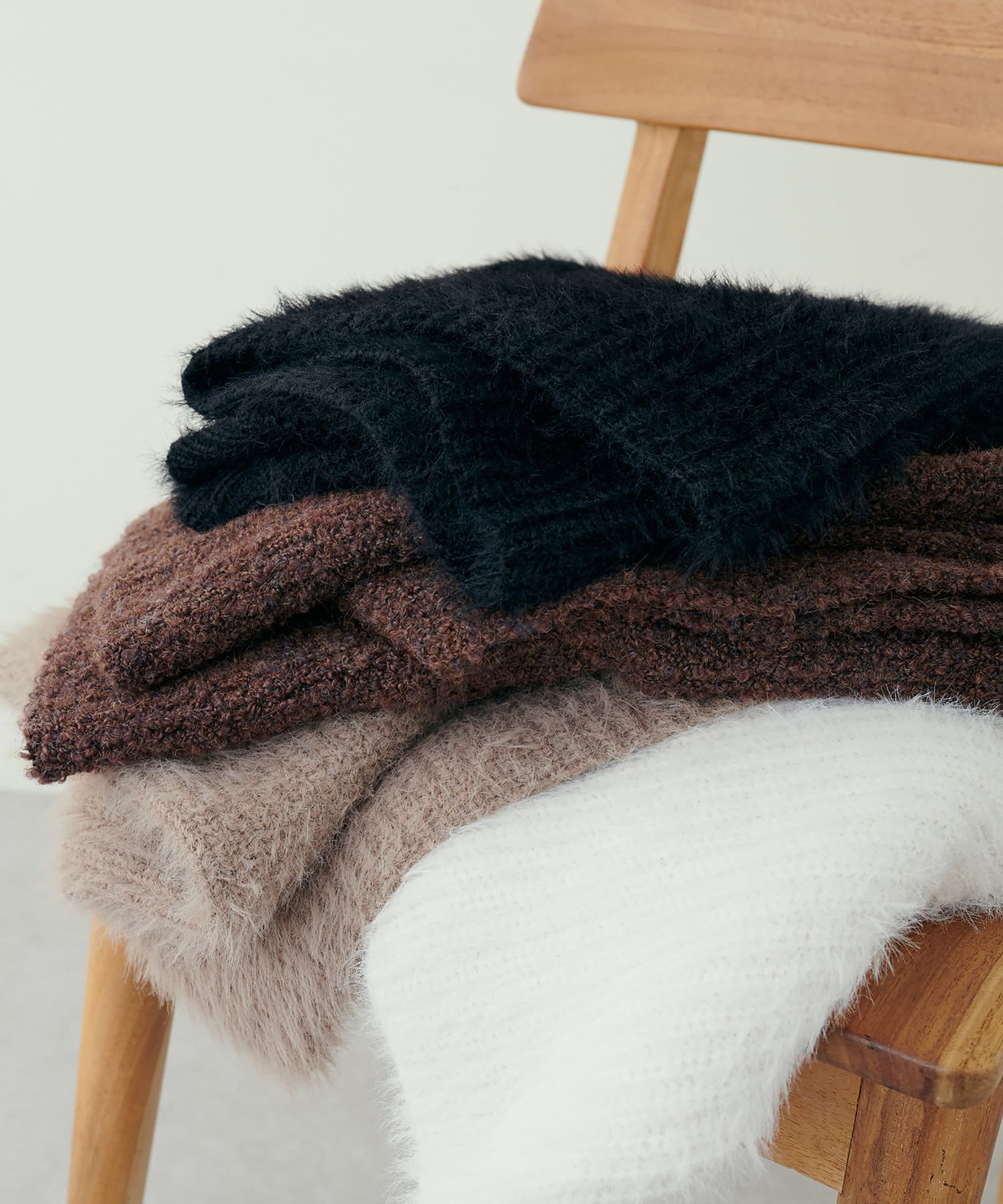 MIXヤーンを使用したブクークレタイプをご用意。